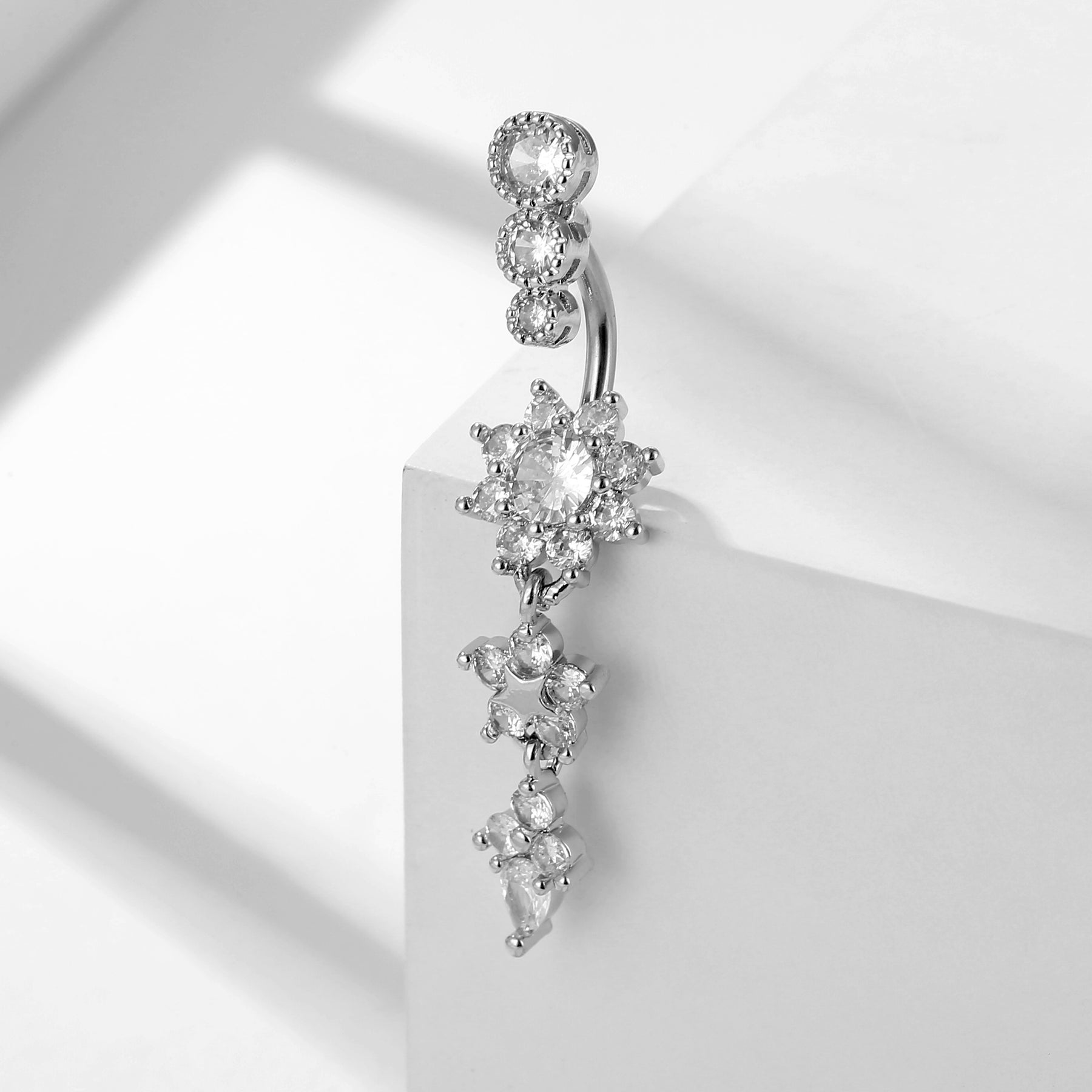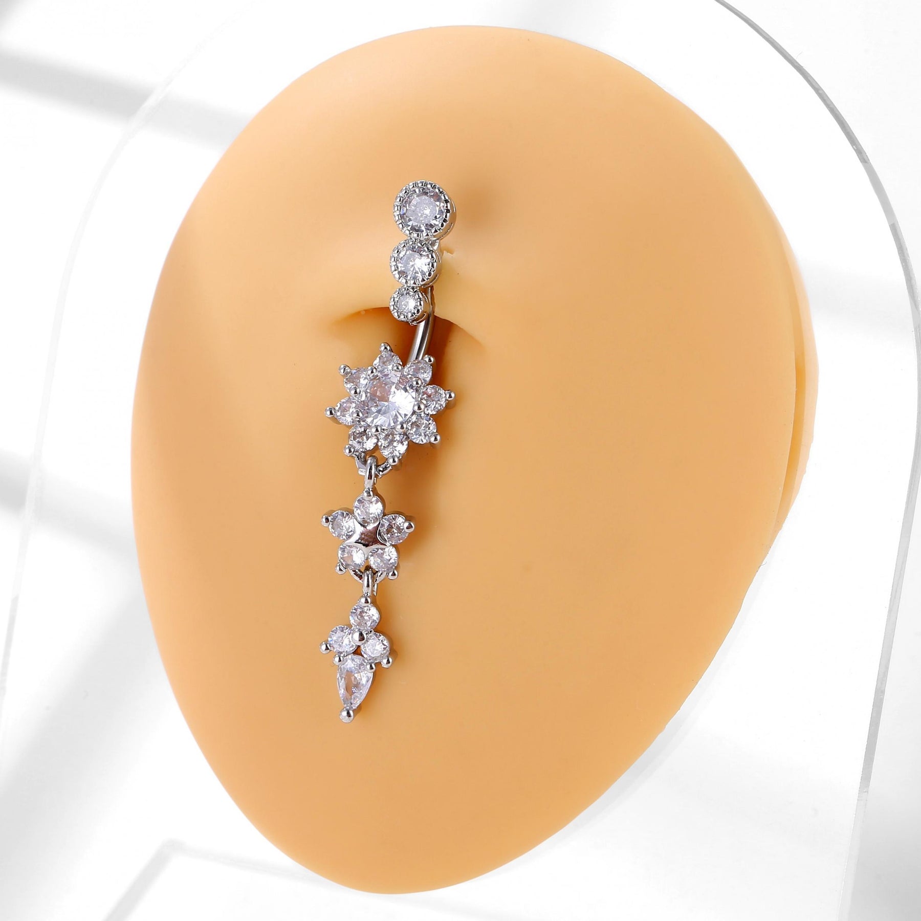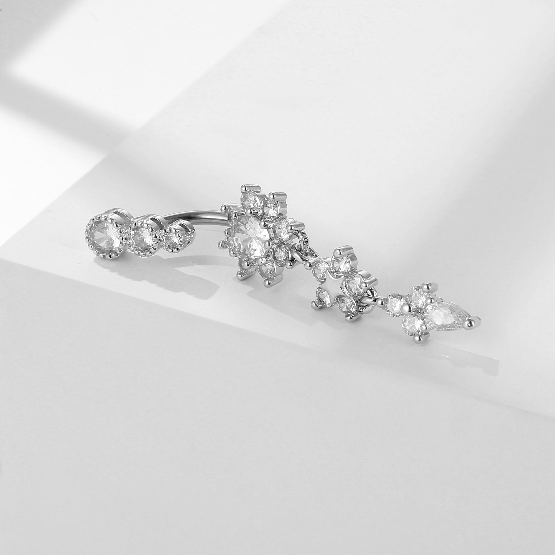 Flower Tassel Pendant Dangle Belly Button Ring Zircon Inlay