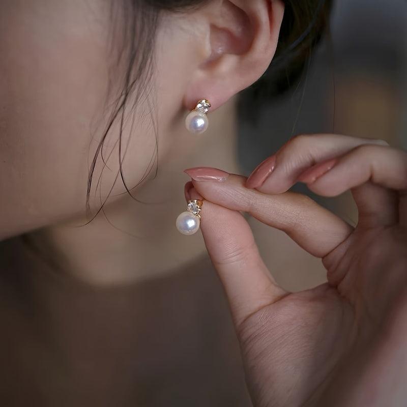 Add a touch of elegance to your look with these freshwater pearl stud earrings. The retro style design with 18K plated details makes them a perfect accessory for any occasion.
