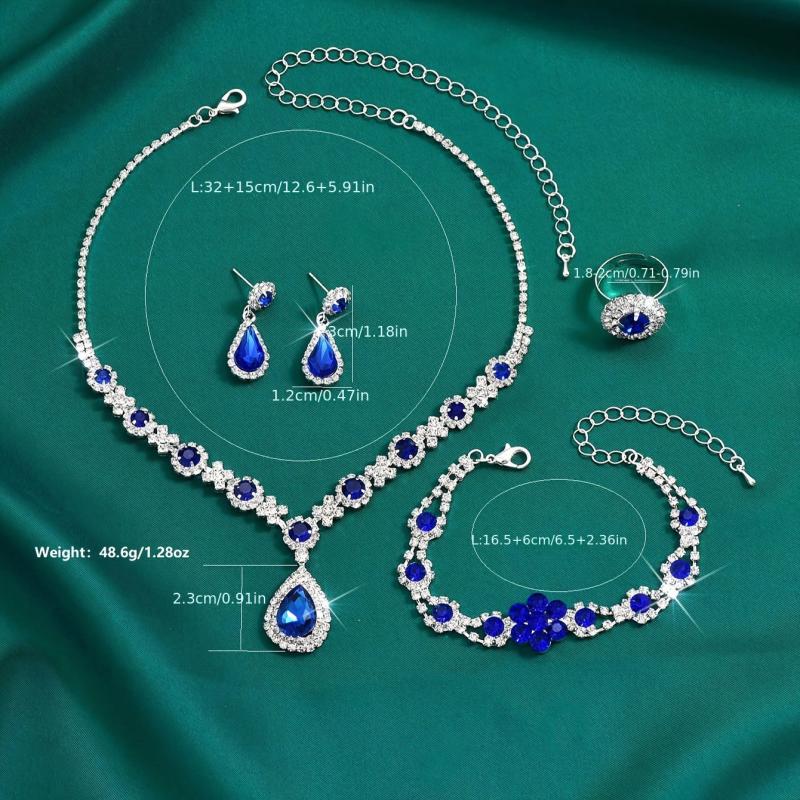This 4-piece set includes a necklace, earrings, bracelet, and ring. Perfect for weddings, parties, and more.