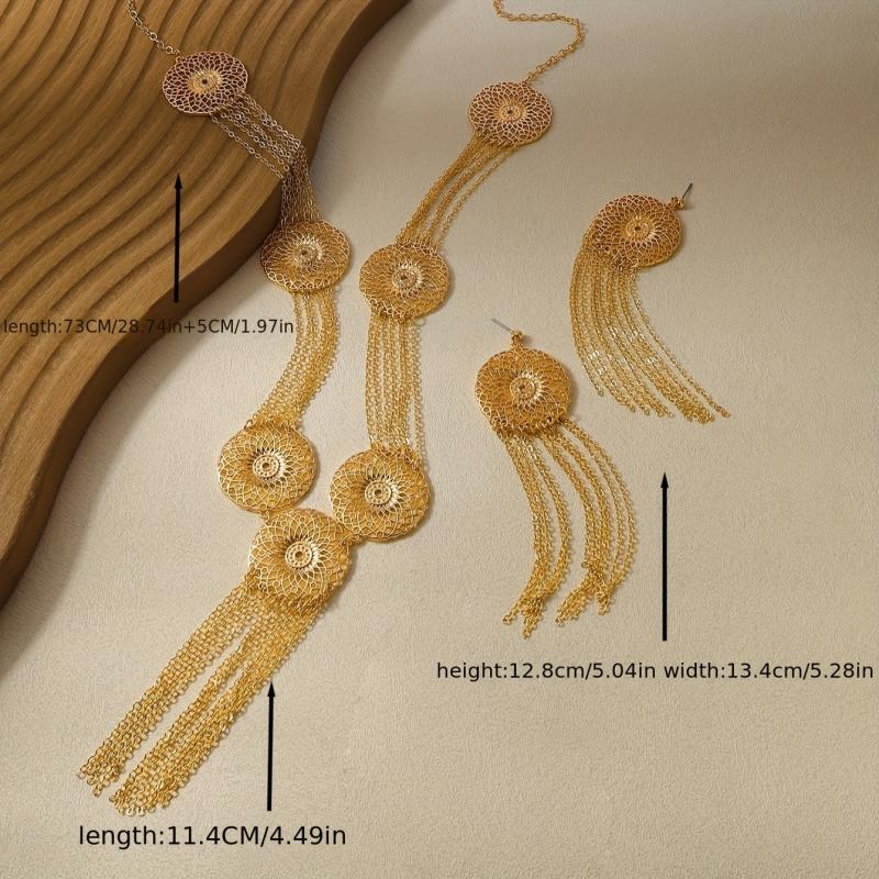 Geometric Circle Tassel Necklace Set Layered Disc Iron Crafted