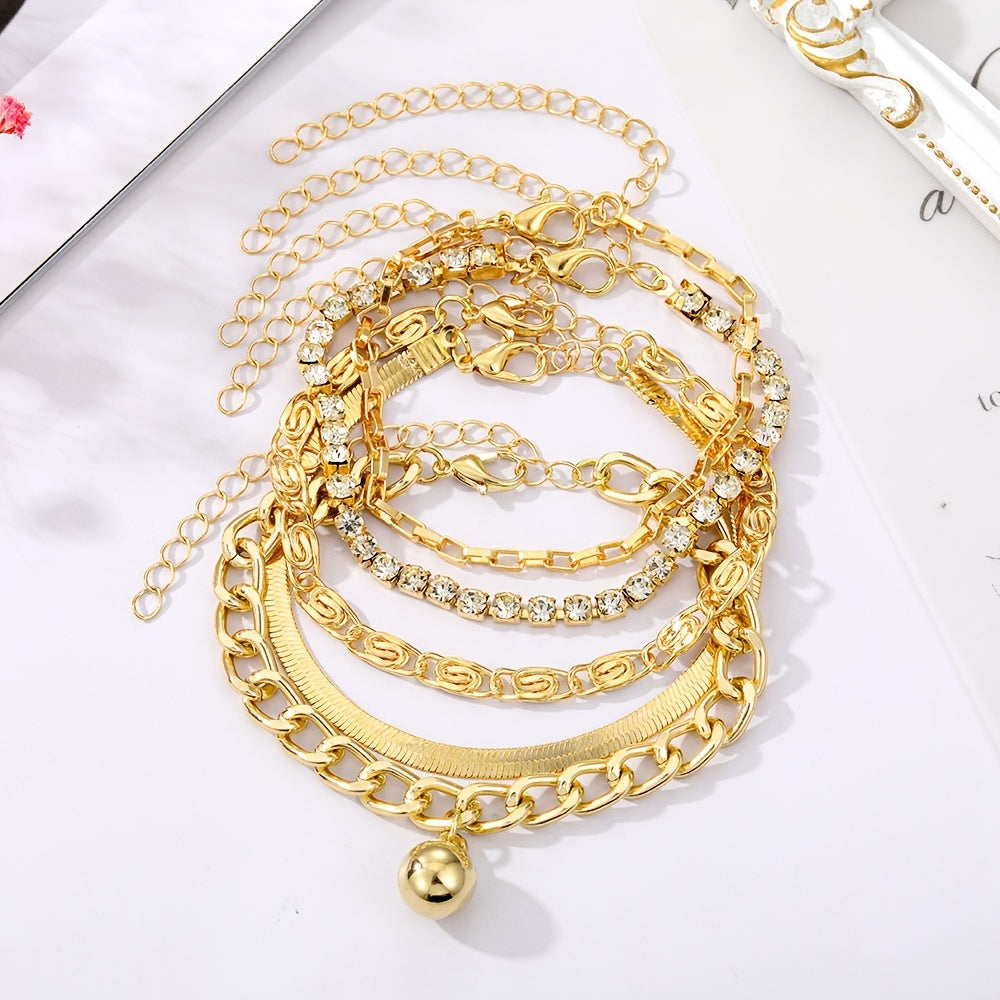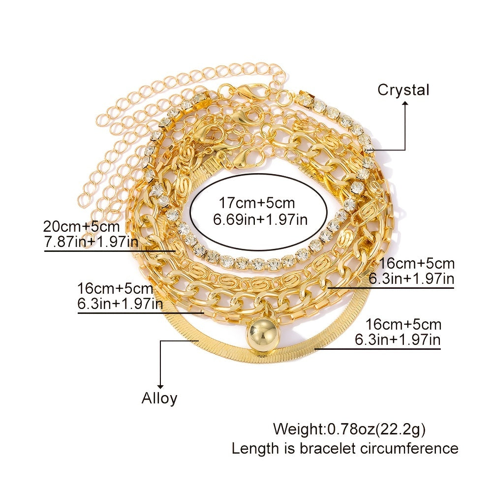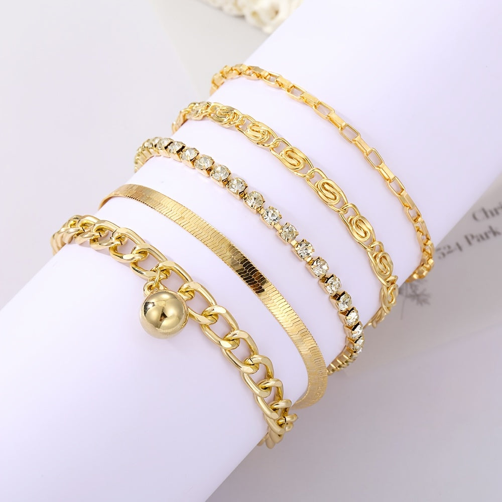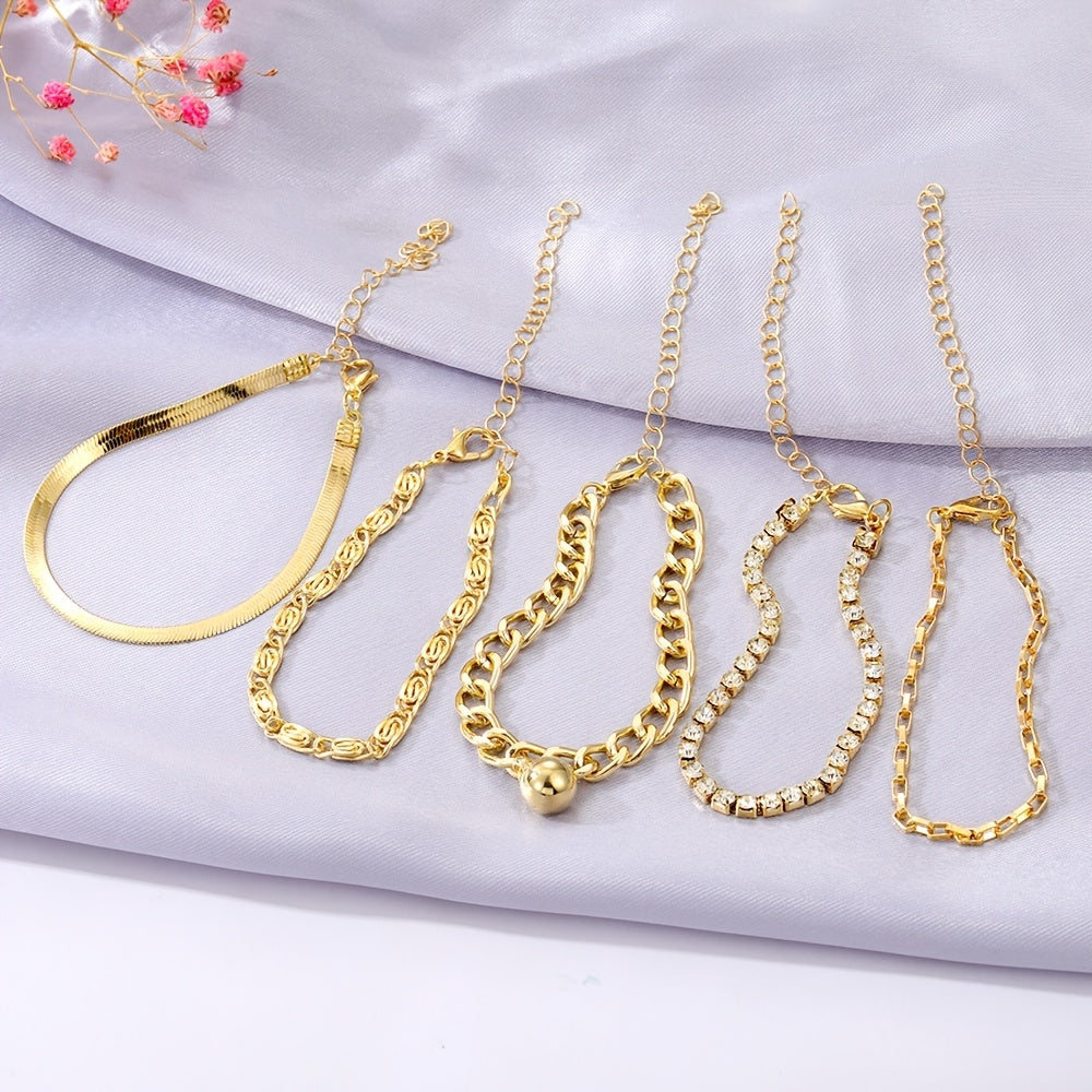 Elevate your style with this 5-piece adjustable zinc alloy hand chain set. Perfect for adding a touch of elegance to your outfit.