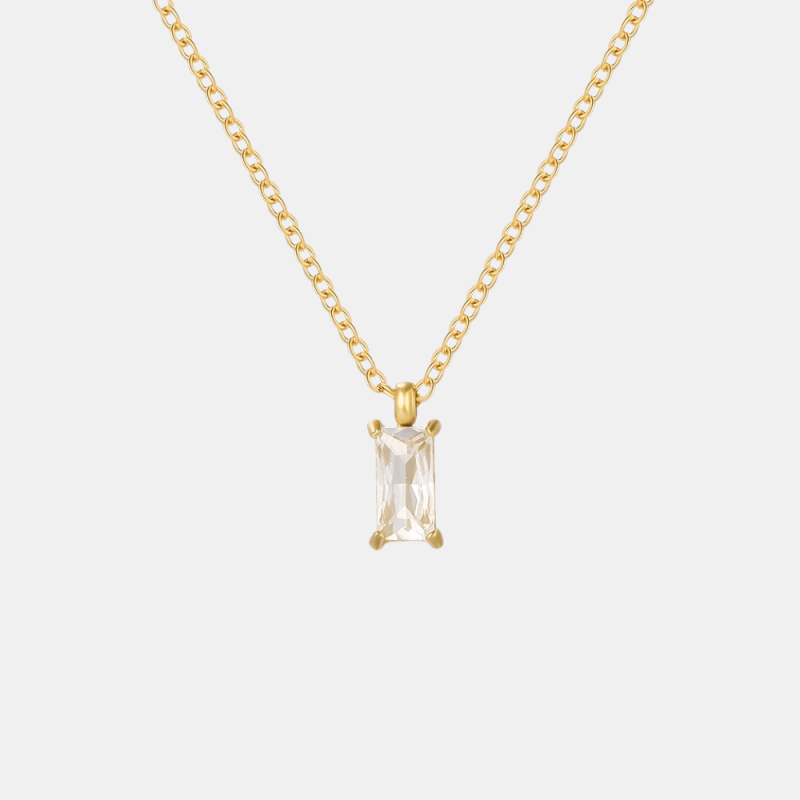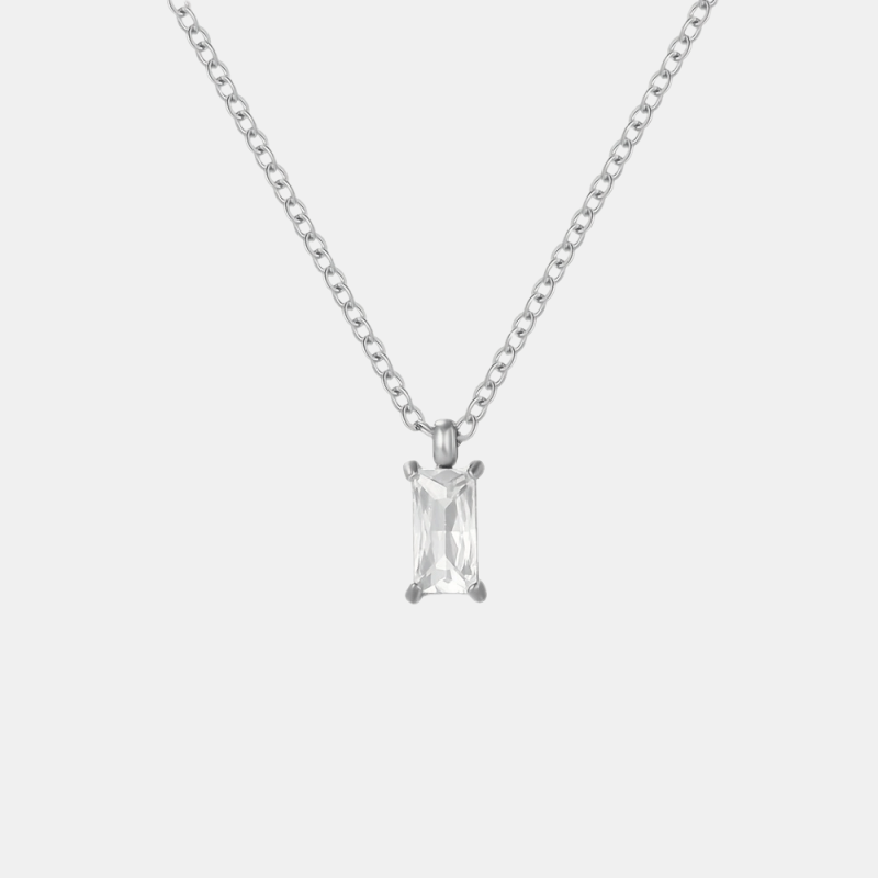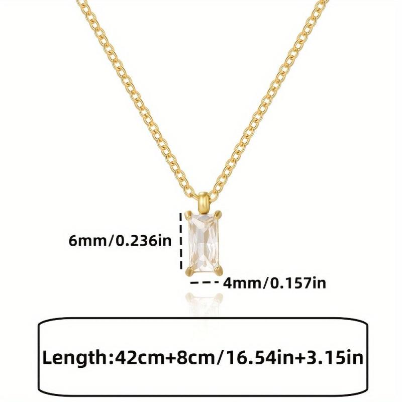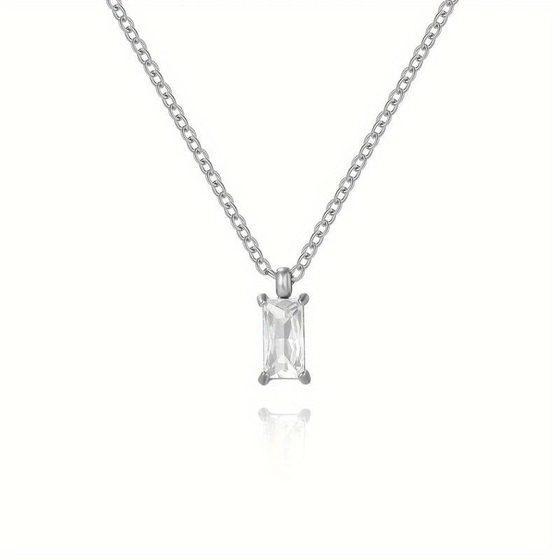 This elegant stainless steel necklace features a synthetic zirconia pendant in a versatile square design. Perfect for daily wear or as a romantic Valentine's Day gift.