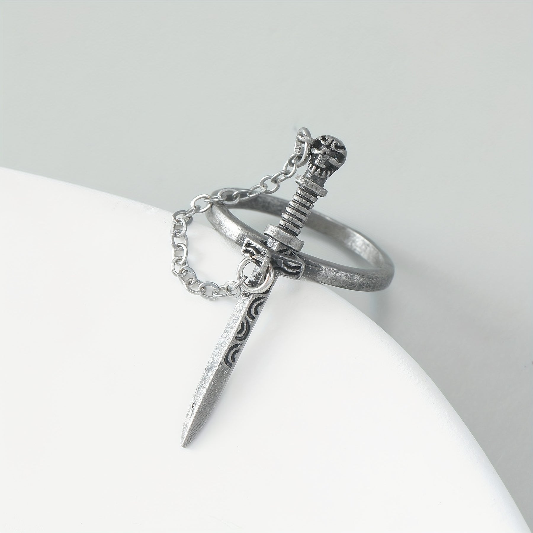 Gothic Style Cross Sword Ring Silver Plated Zinc Alloy