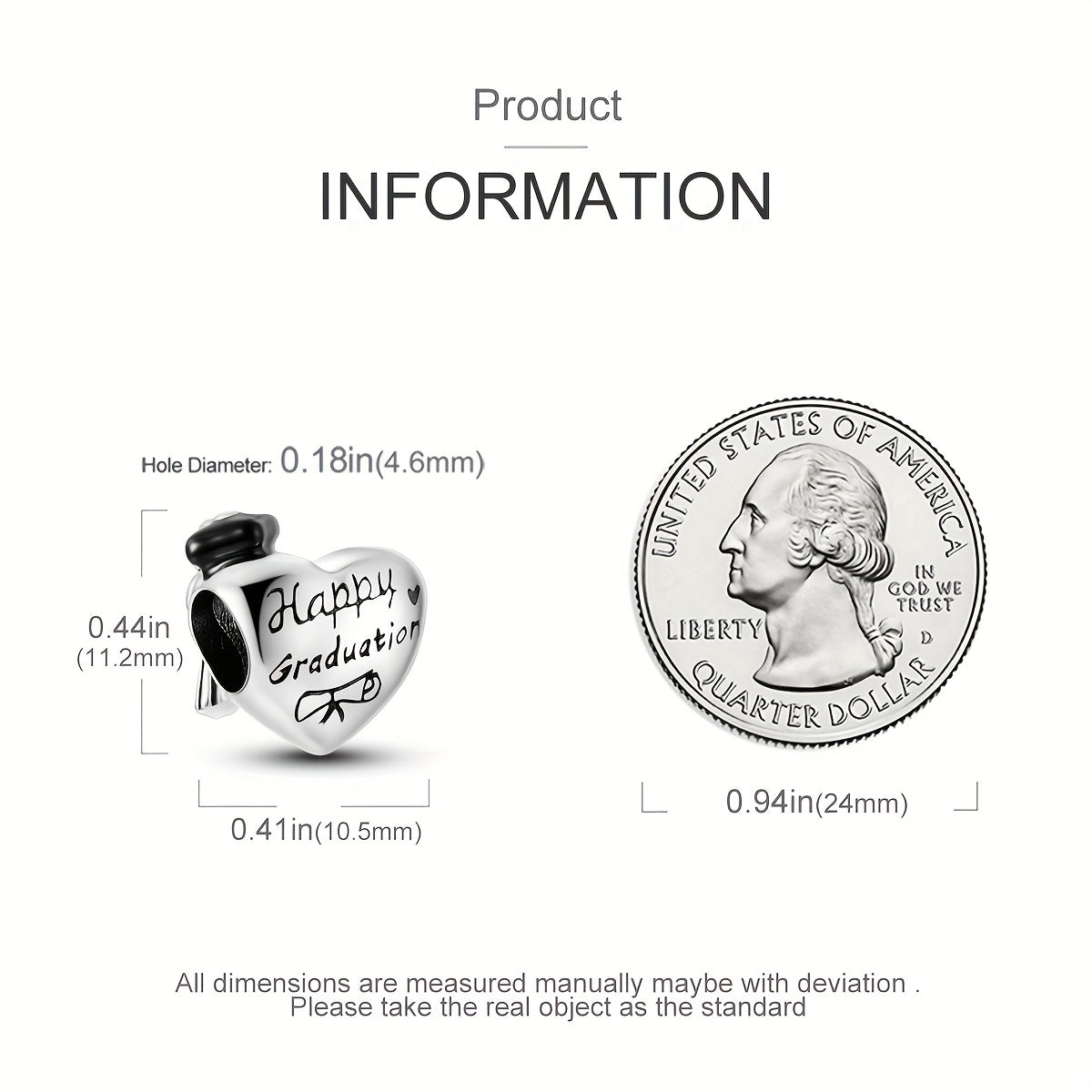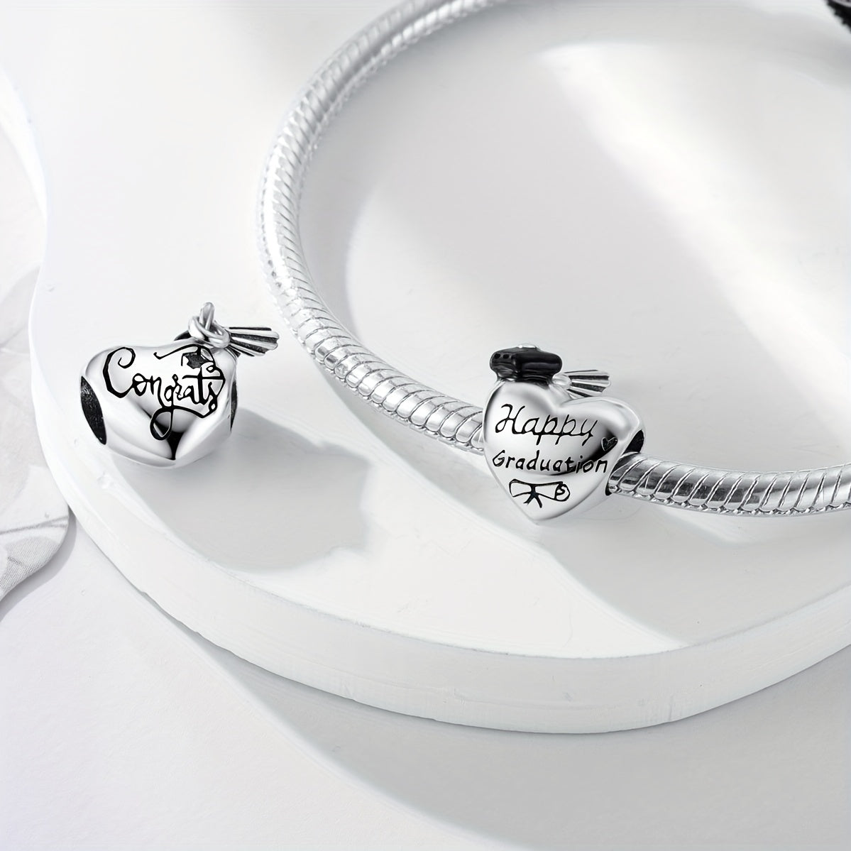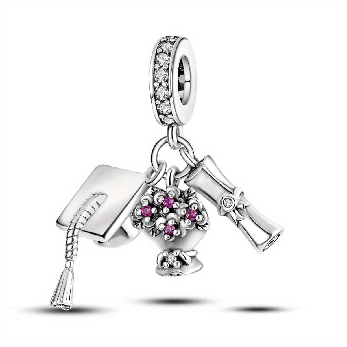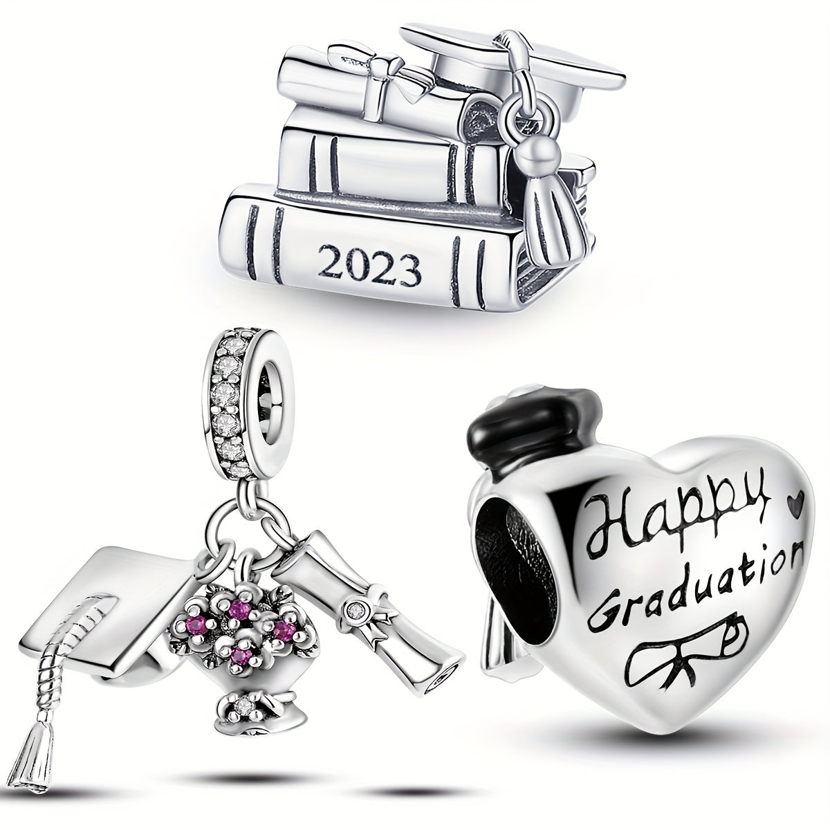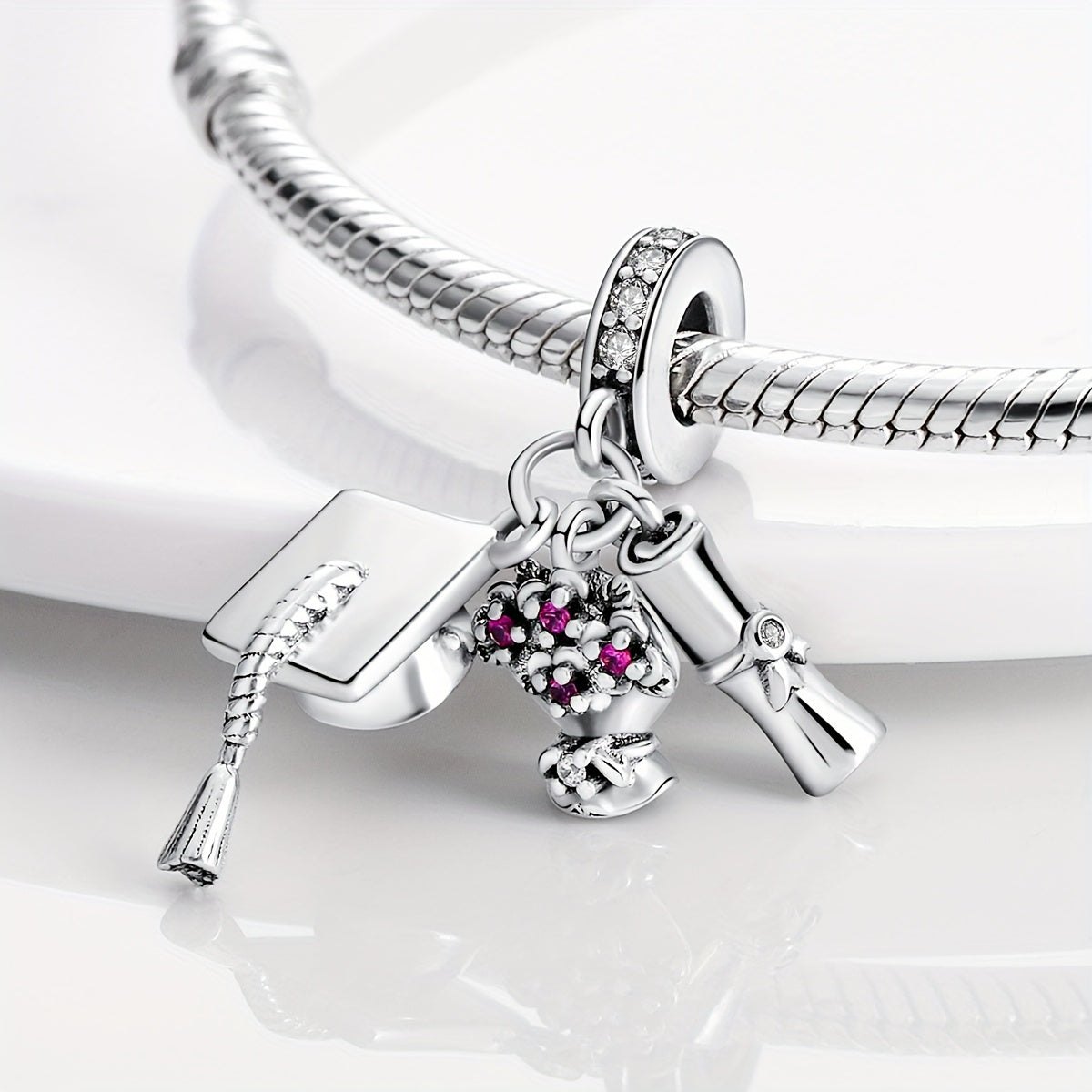 Celebrate your graduation ceremony with this silver plated charms bead that fits perfectly on bracelets. It's a great gift for any graduate!