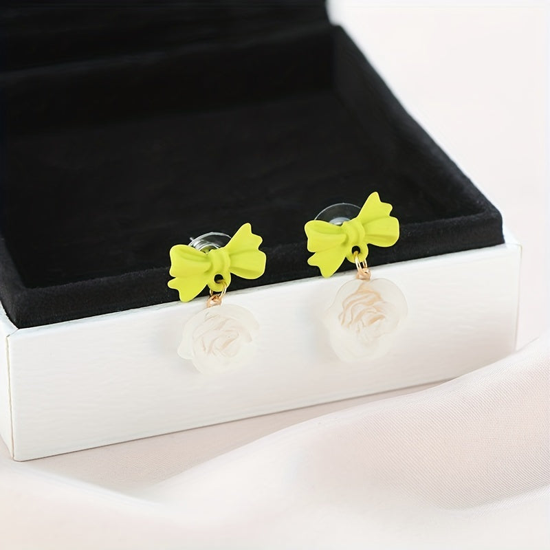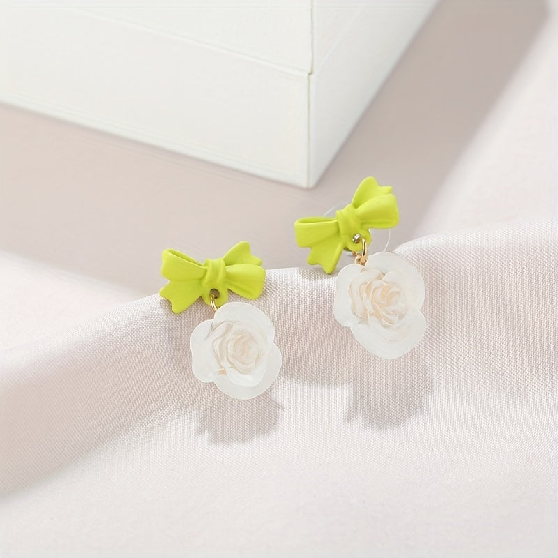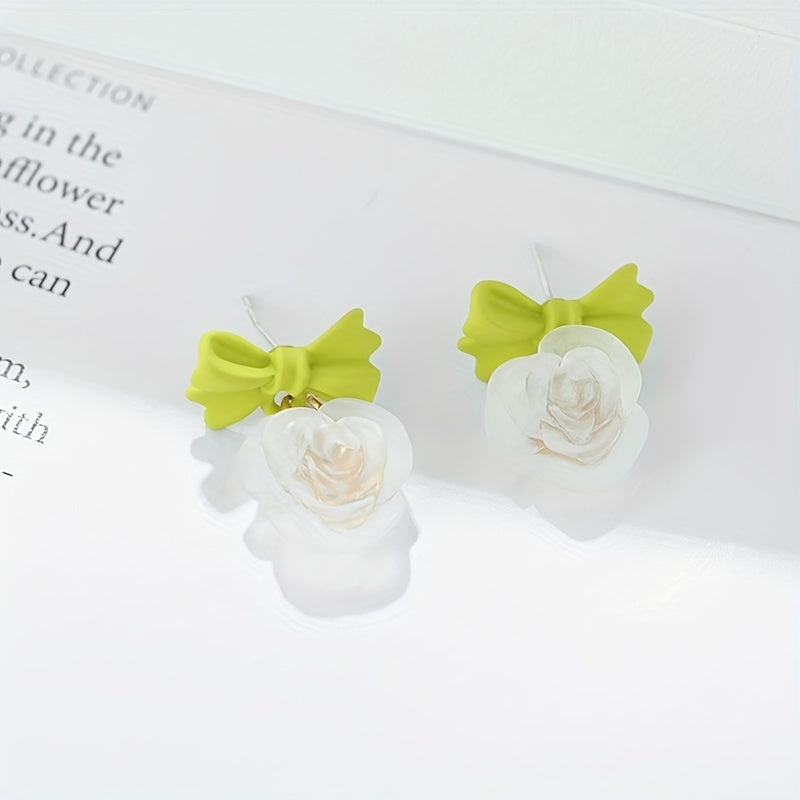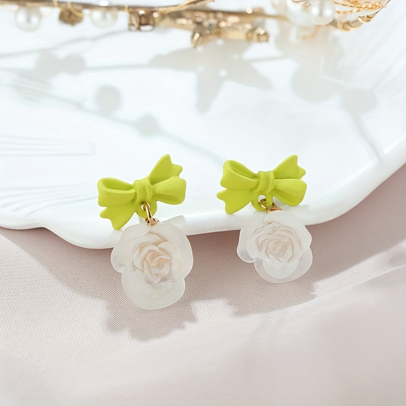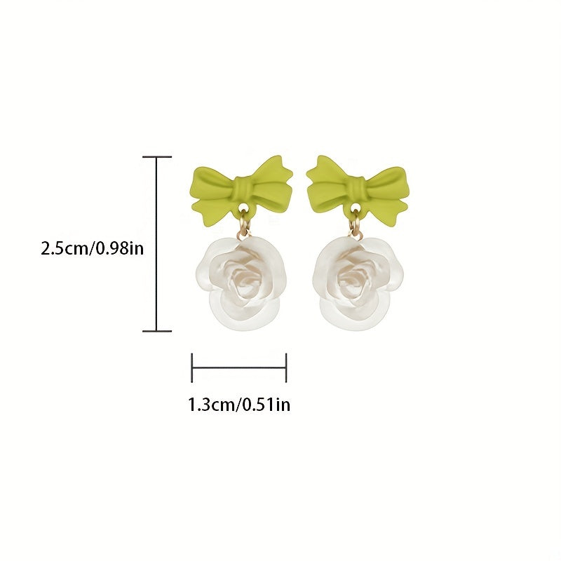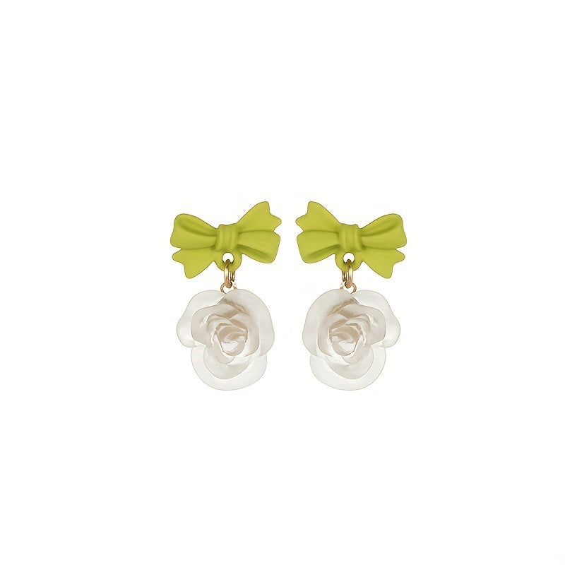 Green Bowknot & Camellia Dangle Earrings Sexy Style Zinc Alloy Jewelry