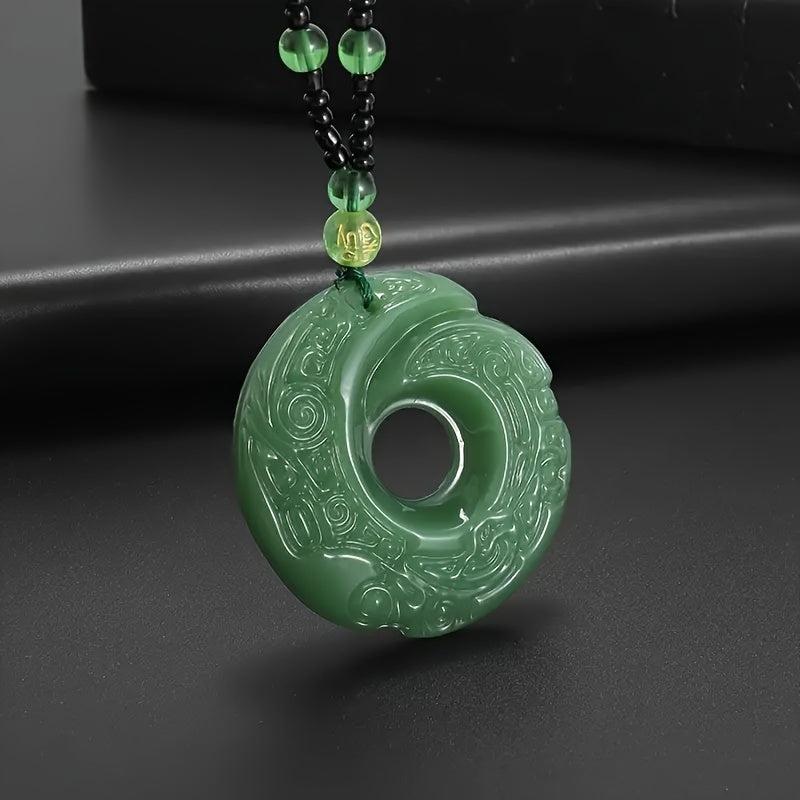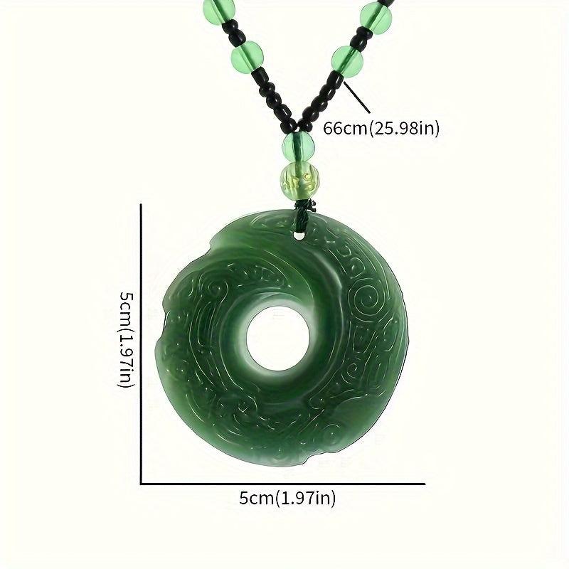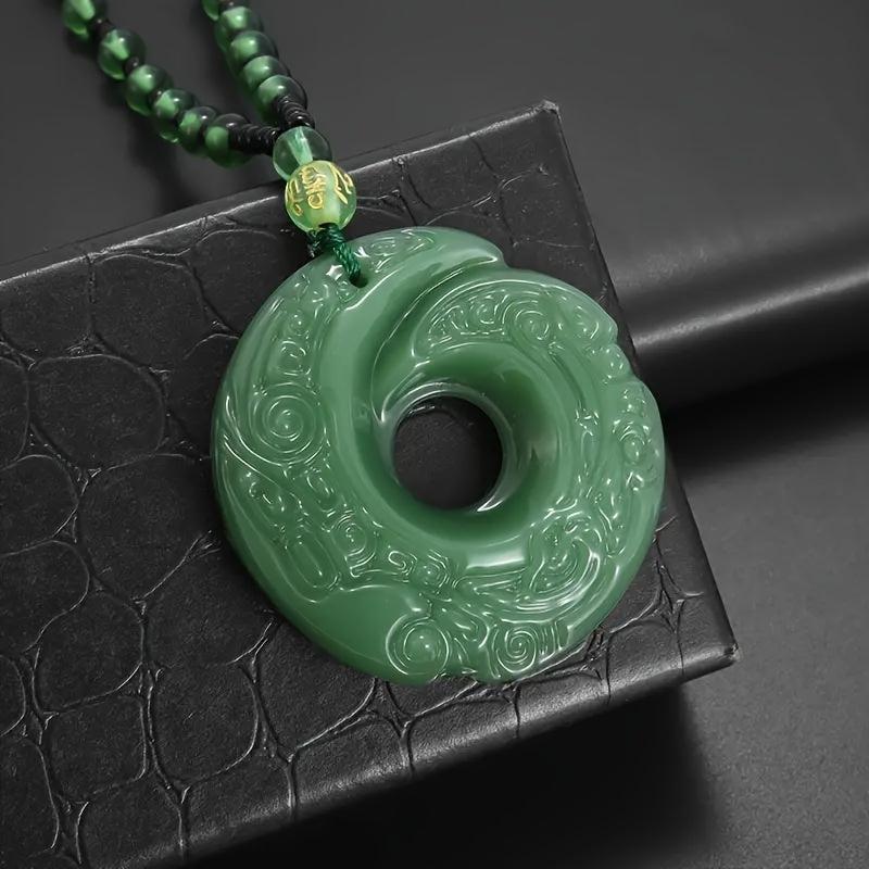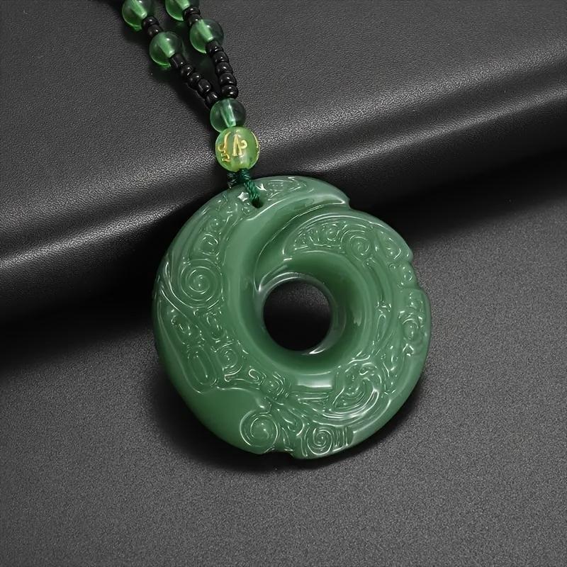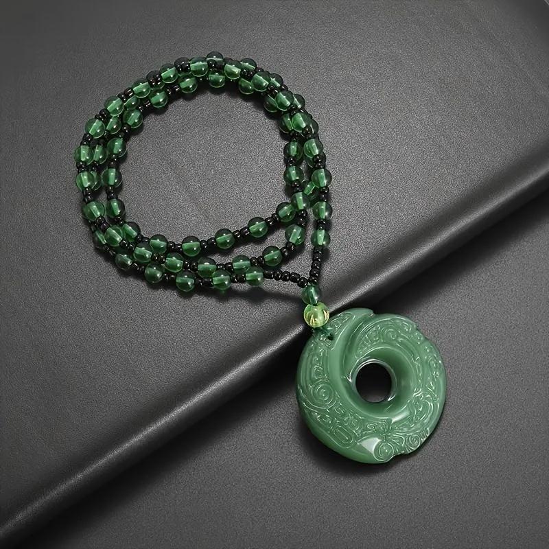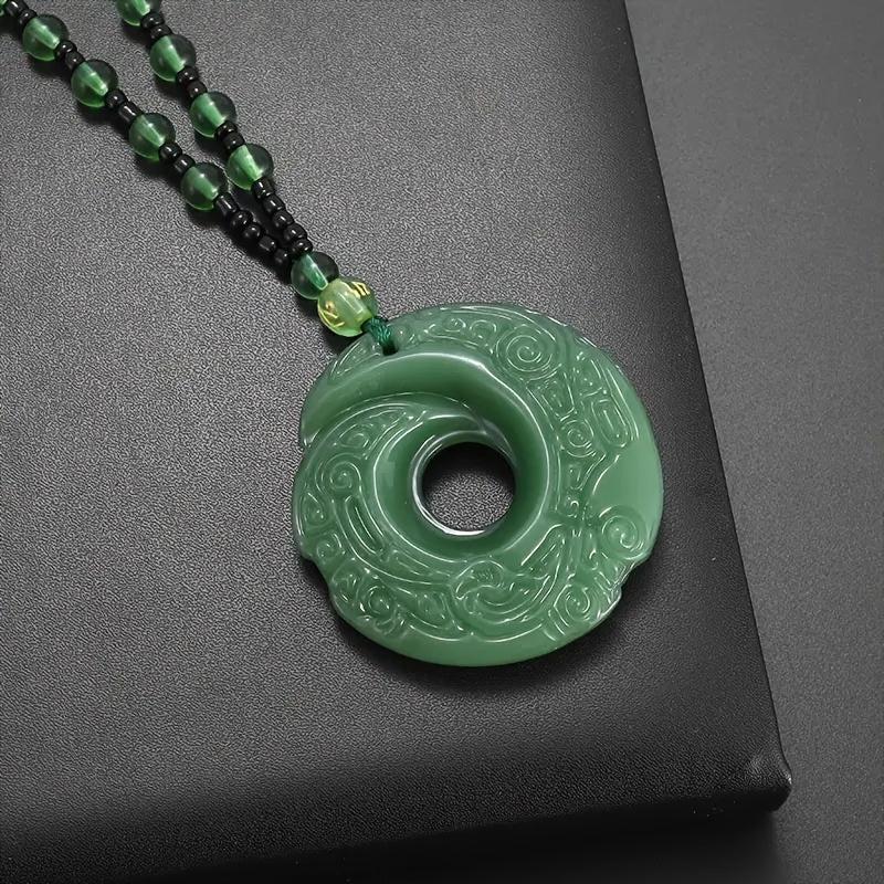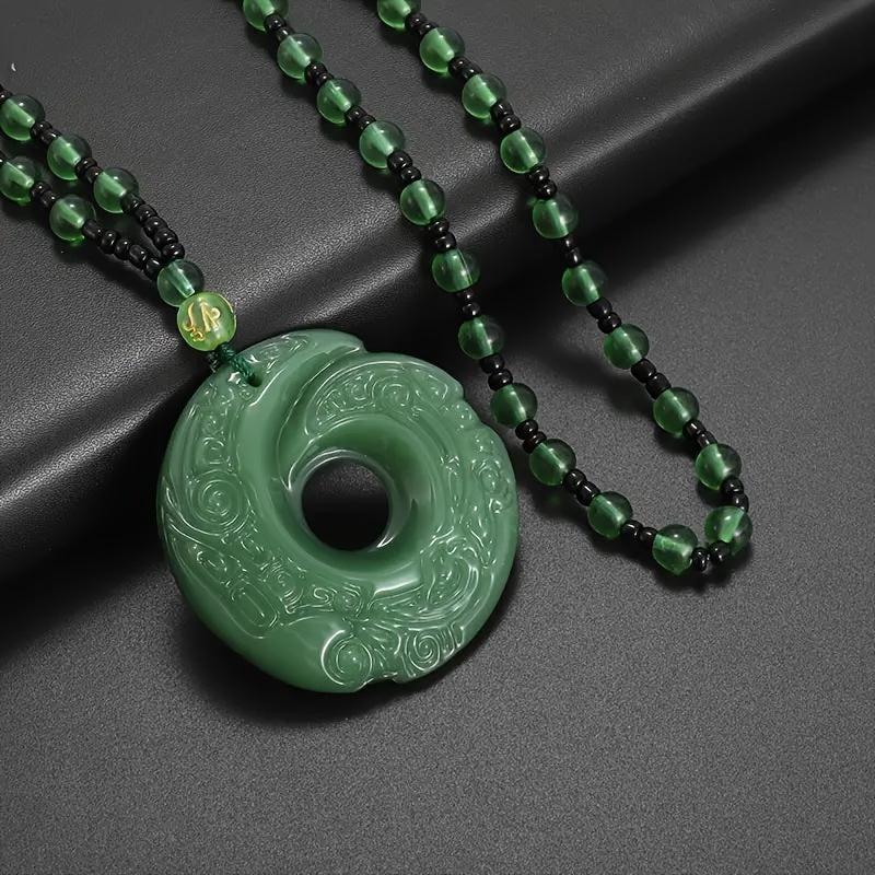 This pendant necklace features a green crescent moon design, safety buckle, and beaded chain. It is ideal for daily wear or party occasions. Makes a great gift!