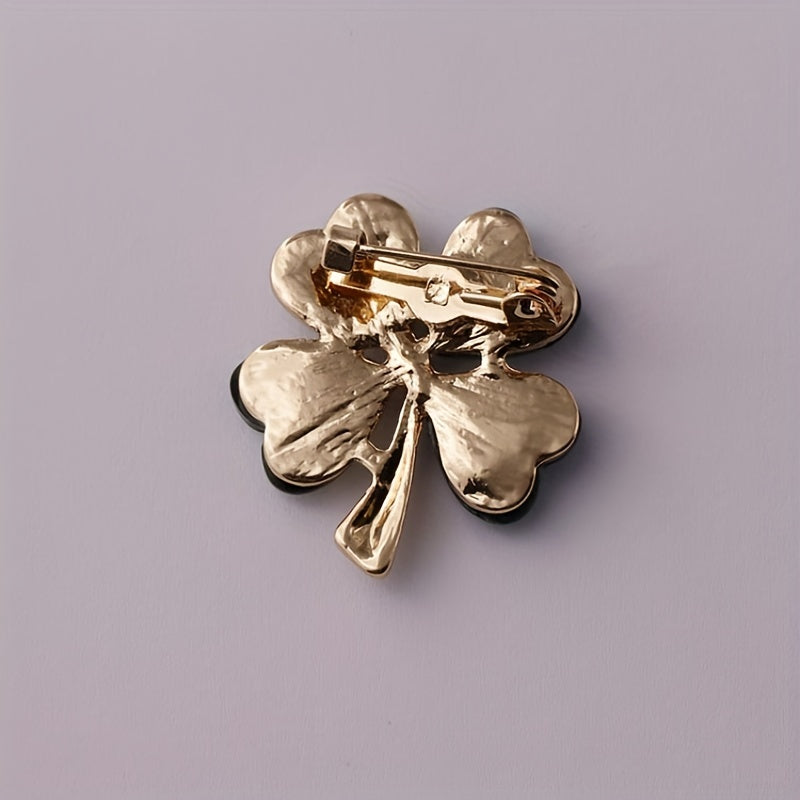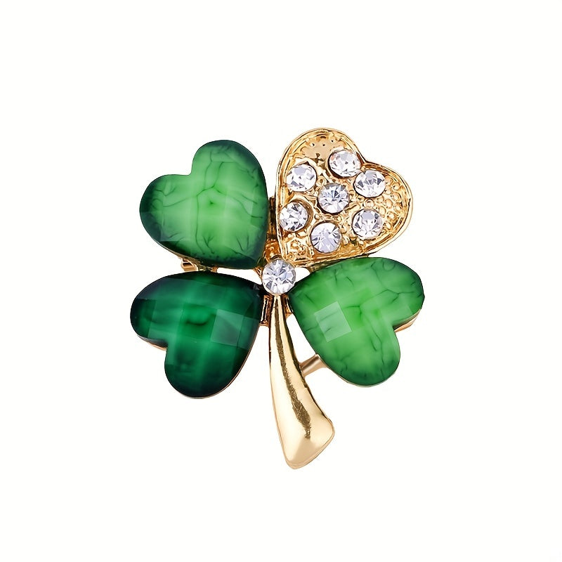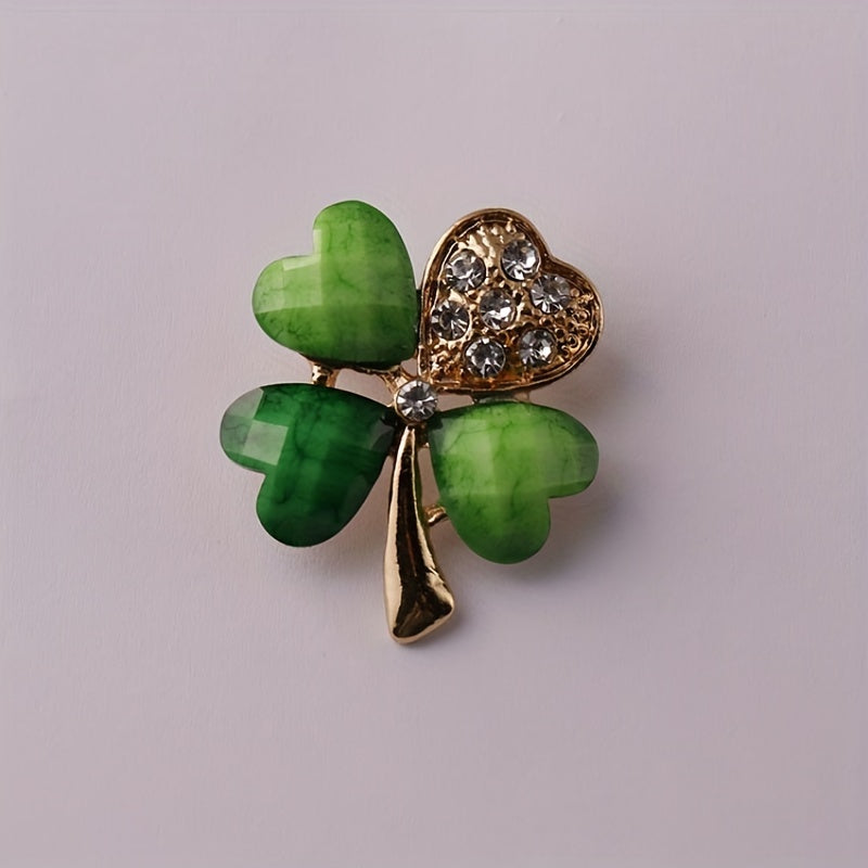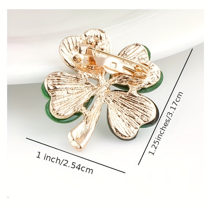 Add a touch of luck and elegance to your outfit with this stunning green four leaf clover shape alloy brooch pin inlaid with faux crystal. Perfect for any occasion!
