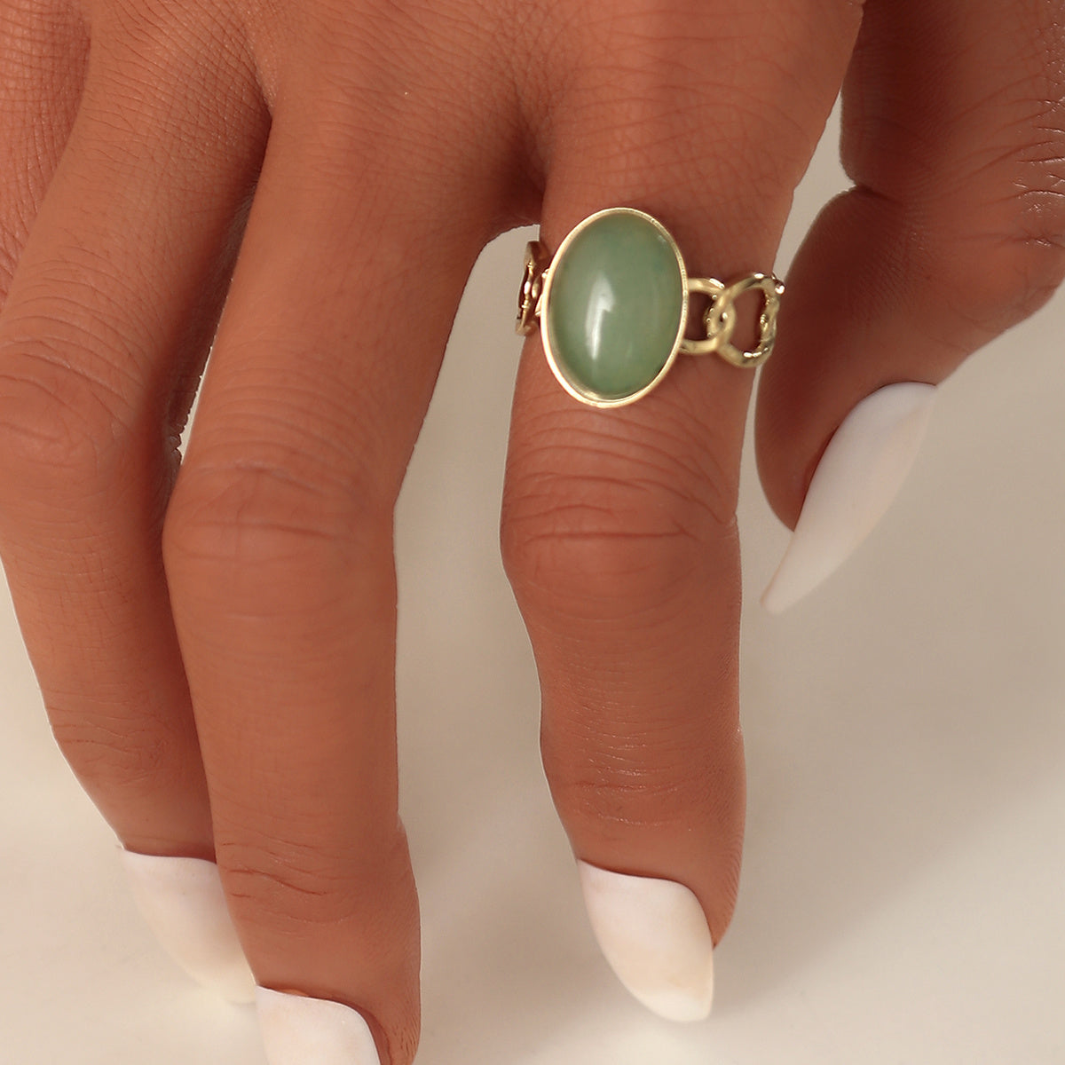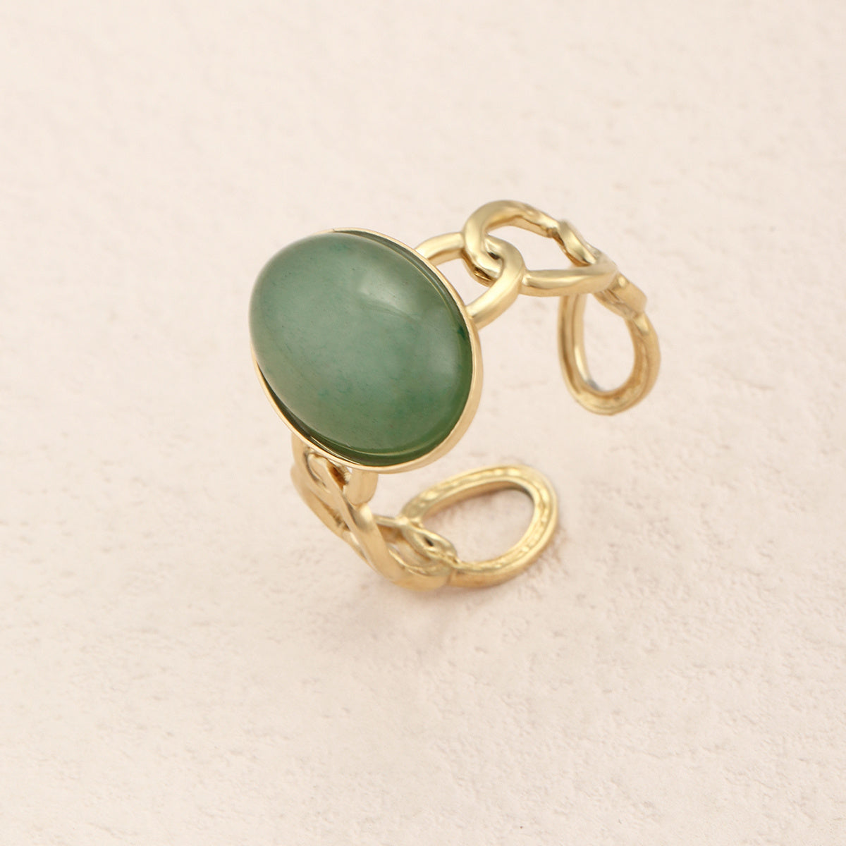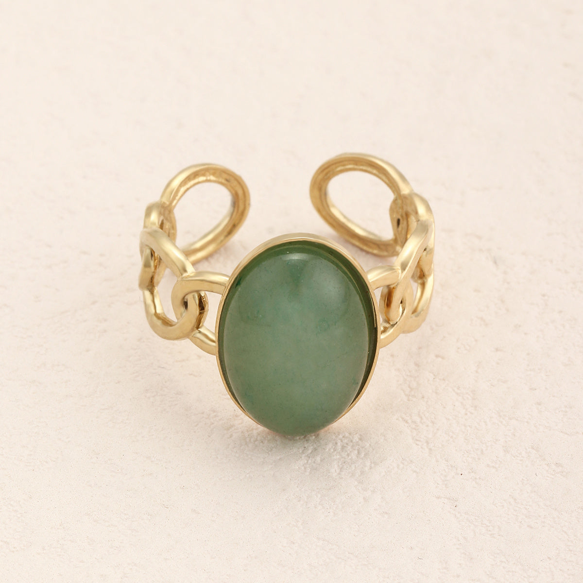 Green Gemstone Stainless Steel Cuff Ring - Emerald Jewelry Gift