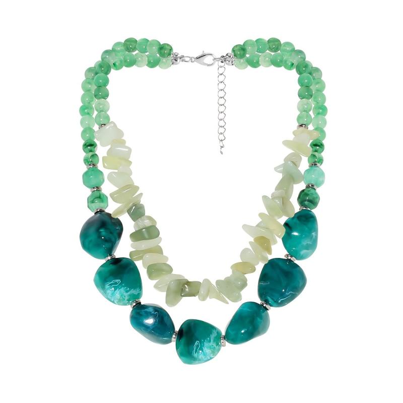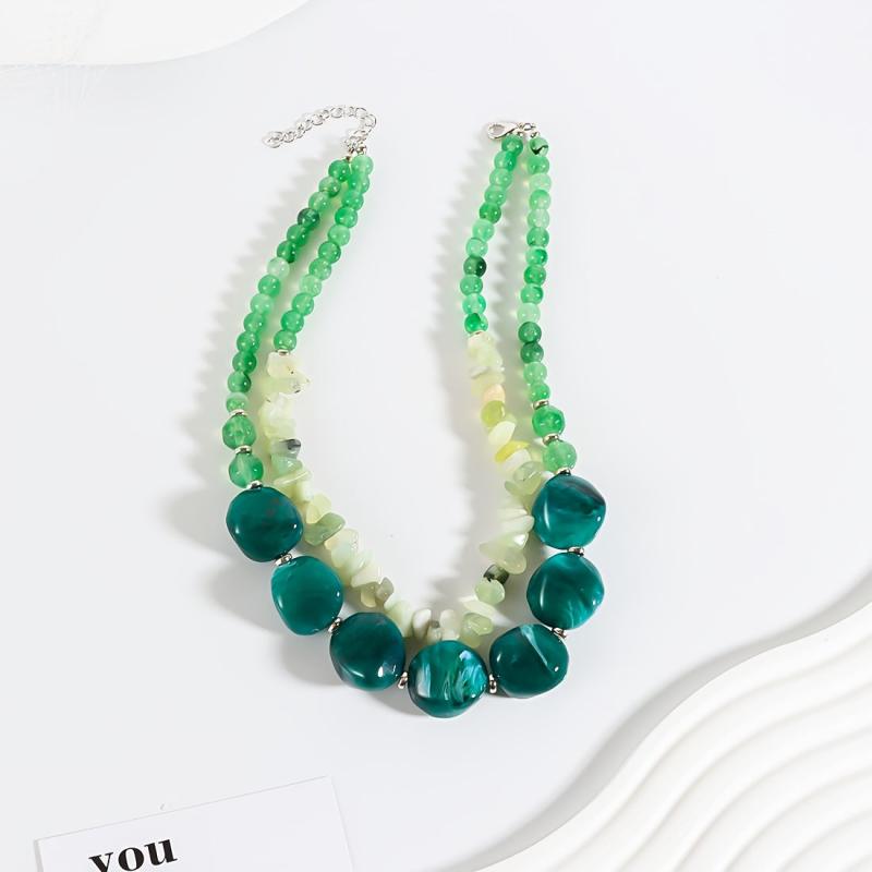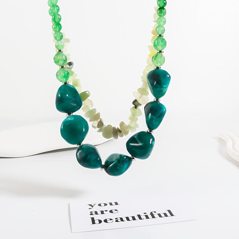 Elevate your look with this retro and exaggerated double layer necklace featuring irregular green resin beads. Perfect for vacations, parties, or everyday wear.