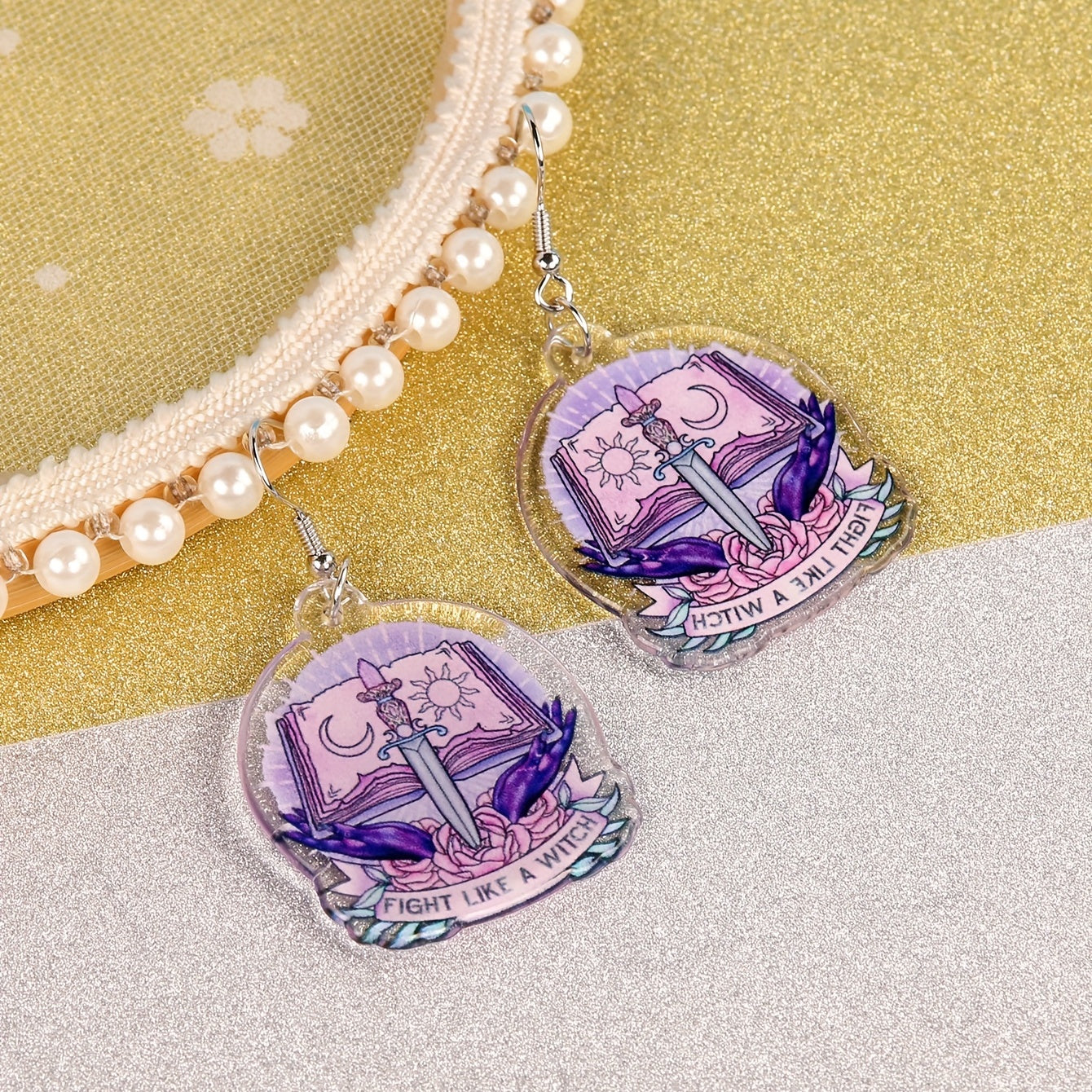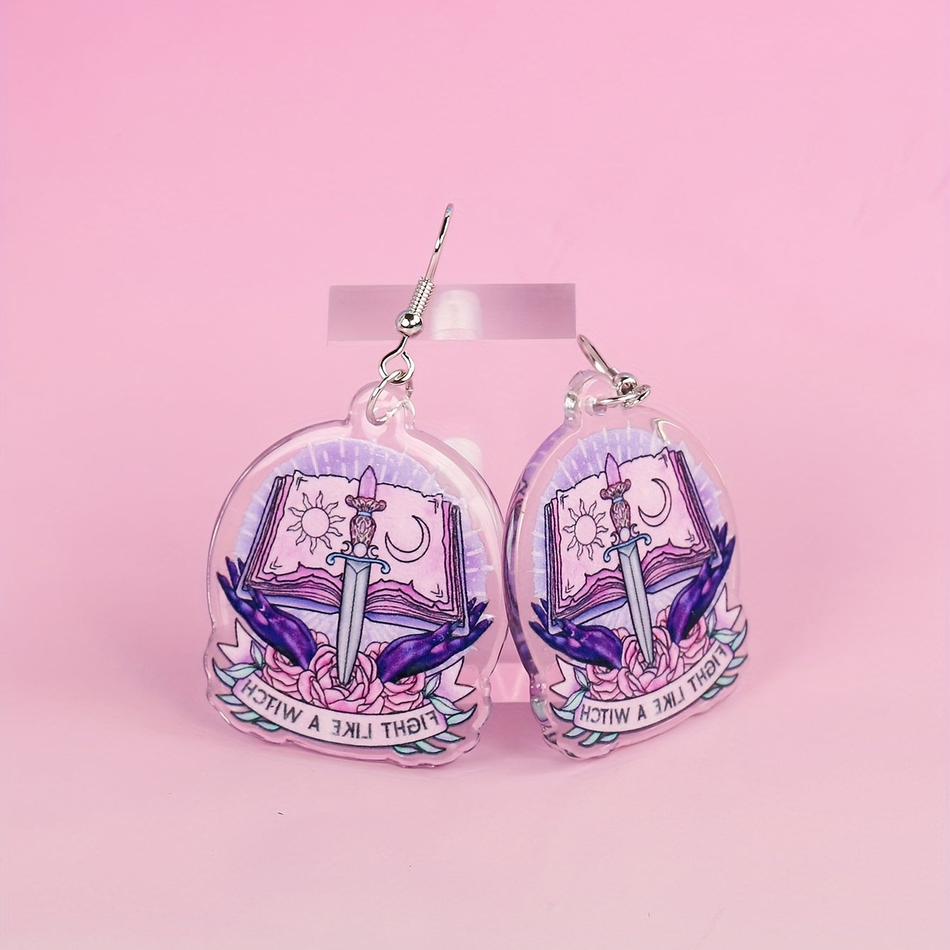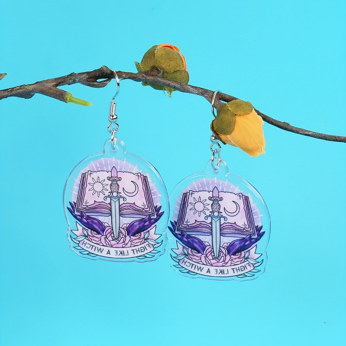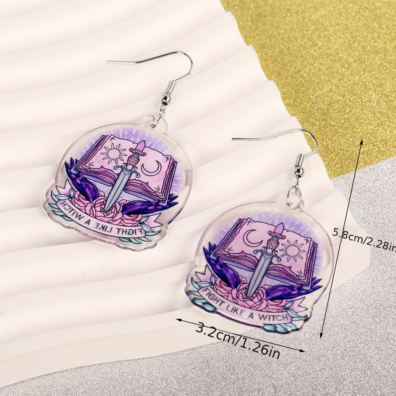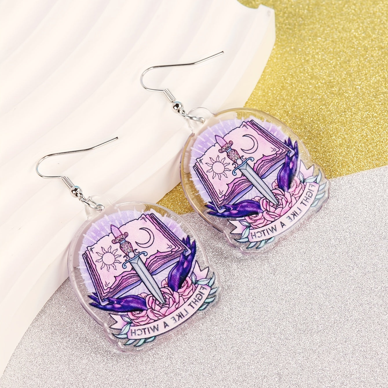 Halloween Evil Flower Sword Magic Book Pattern Dangle Earrings
