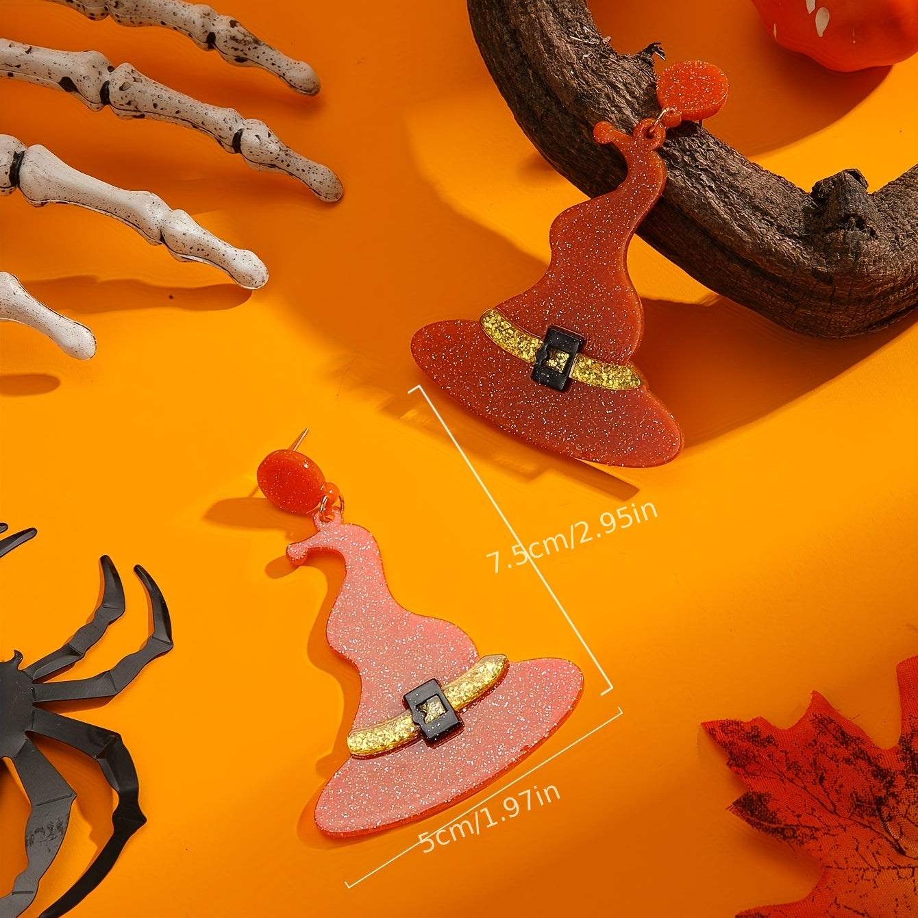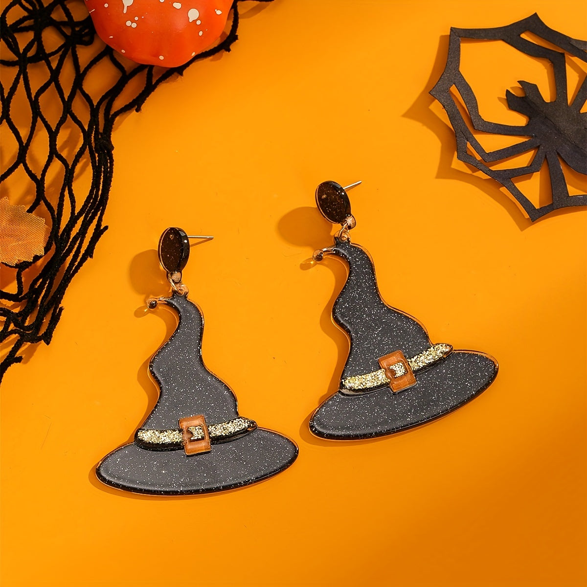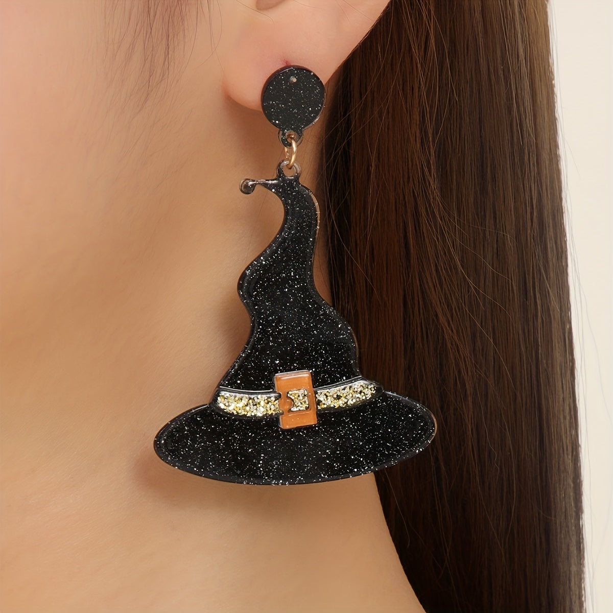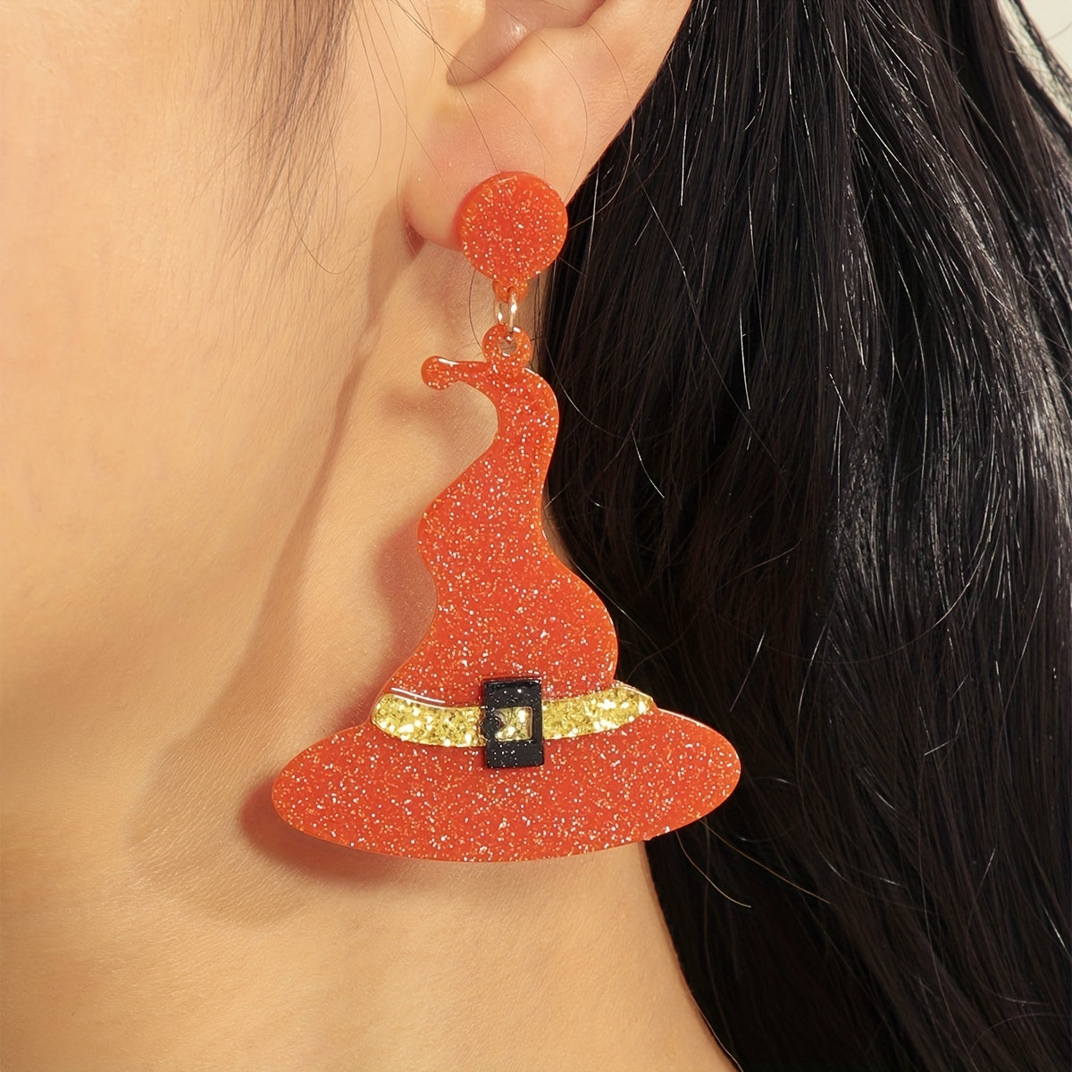 Complete your Halloween look with these classic witch's hat earrings. Made of orange resin, these earrings are a creative gift for any female.
