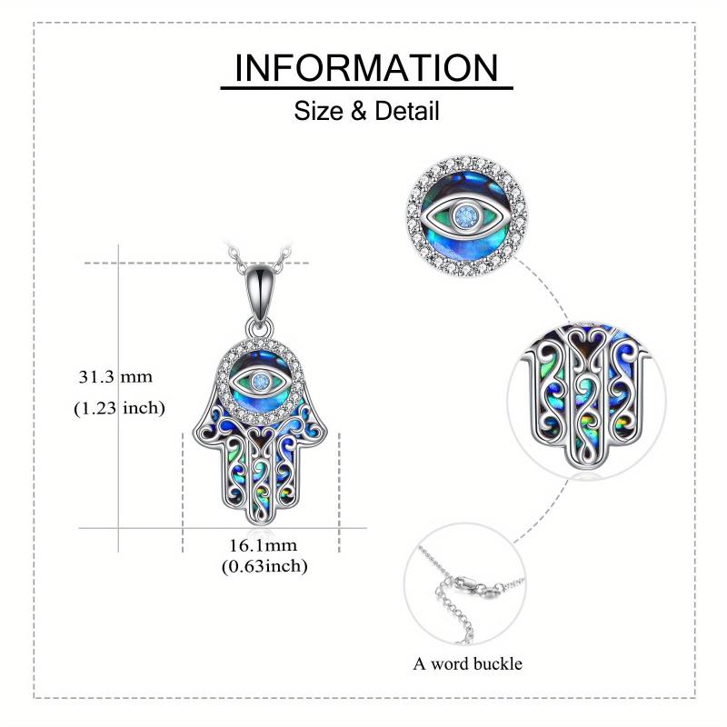 This stunning Hamsa Hand necklace is crafted from sterling silver and features an Evil Eye Fatima pendant. It makes a meaningful gift for women, symbolizing protection and good luck.