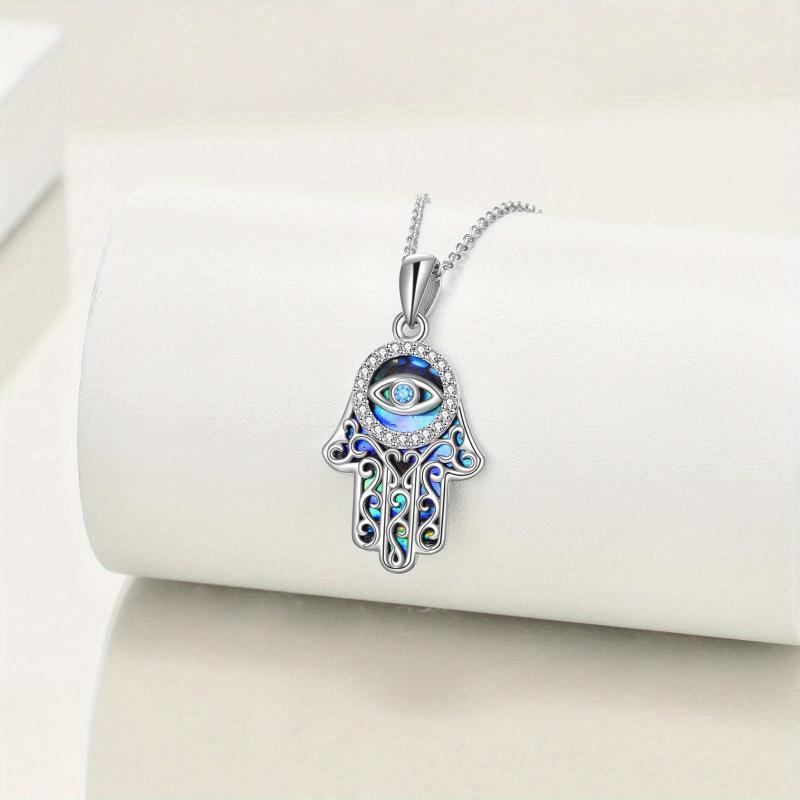Hamsa Hand Necklace Sterling Silver Evil Eye Pendant