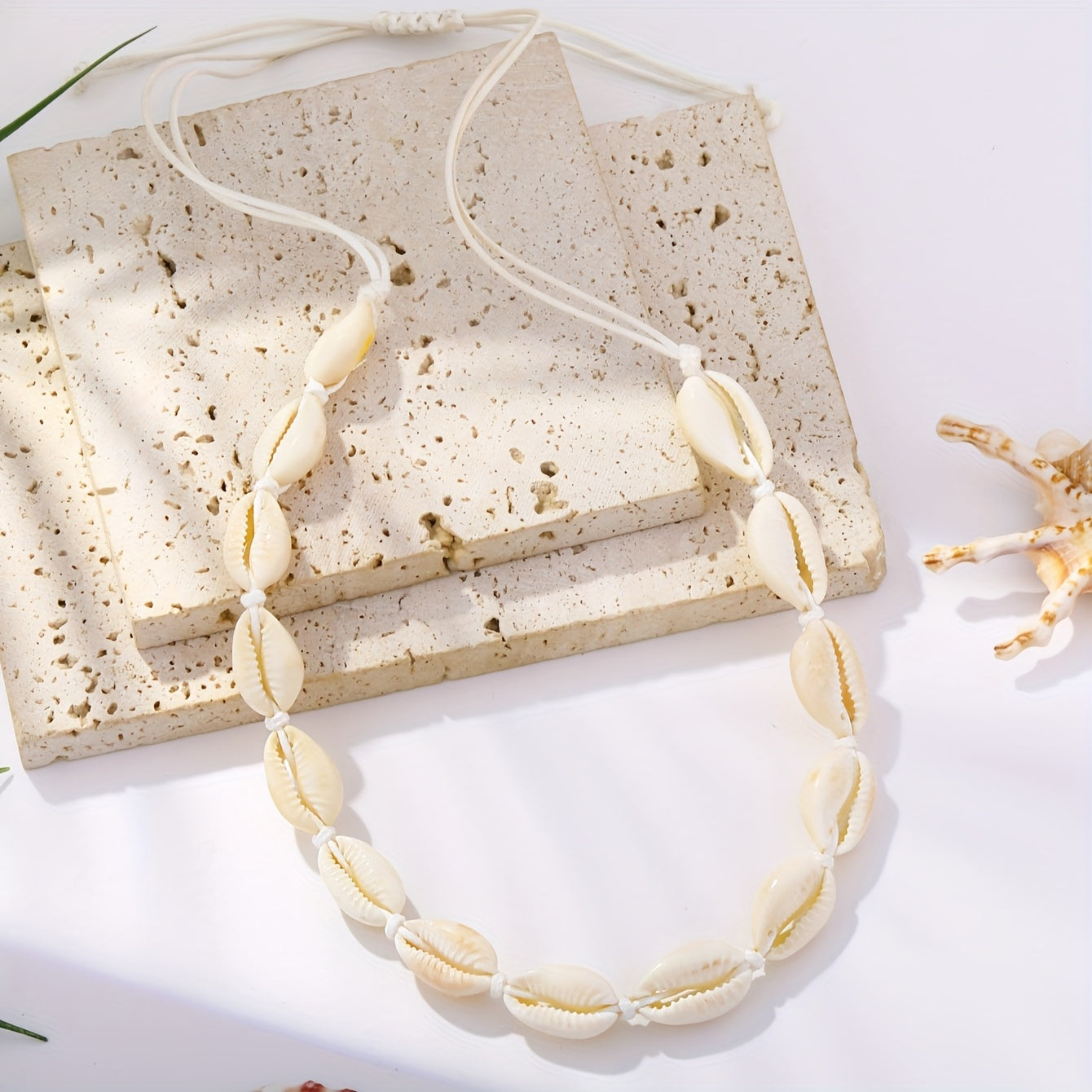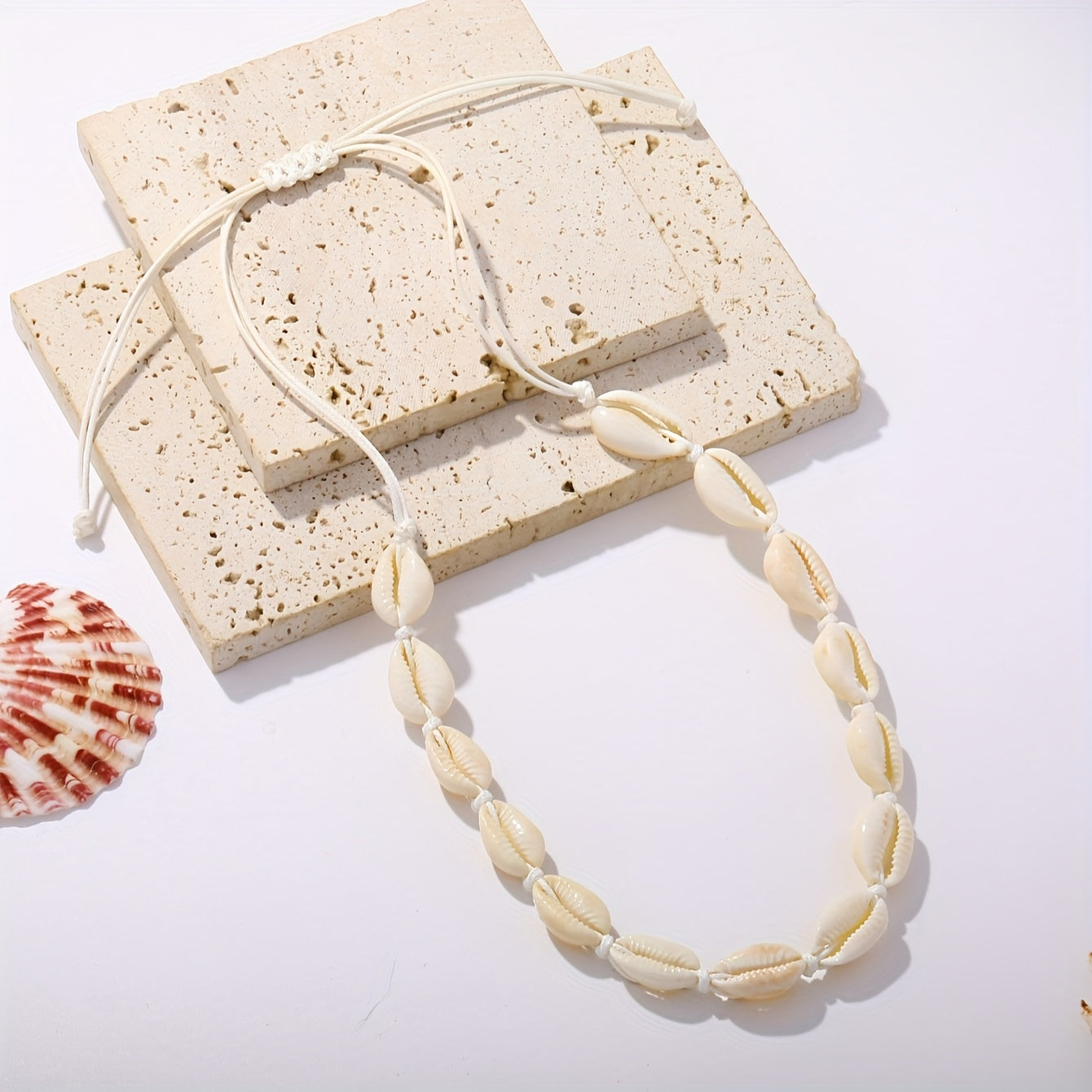 • Handwoven seashell necklace