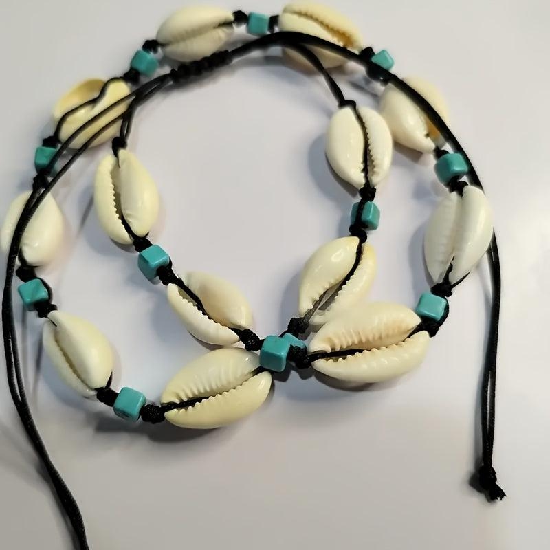 Hawaiian Style Beach Necklace Shell & Turquoise Beads Cord Unisex Casual Jewelry