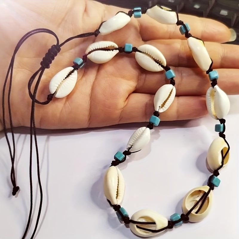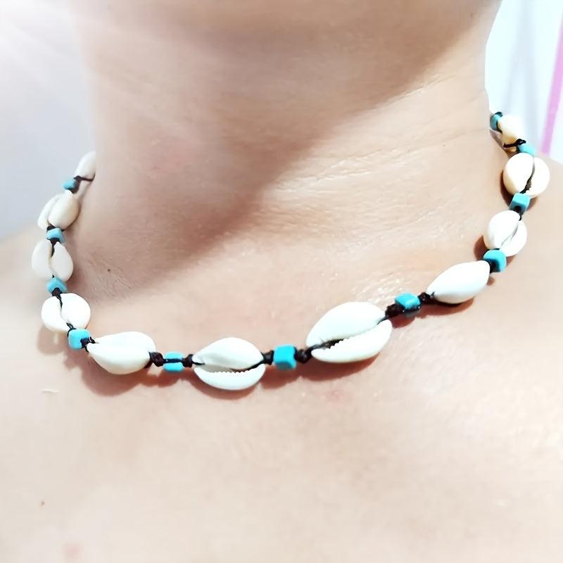 Embrace the ocean vibes with this Hawaiian style beach necklace featuring natural shell and turquoise beads on a durable cord. Perfect for both women and men, this casual jewelry piece is inspired by the sea and ideal for all seasons.