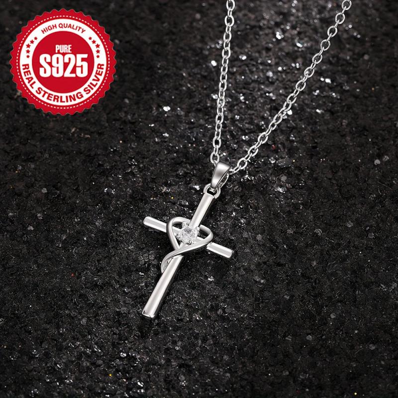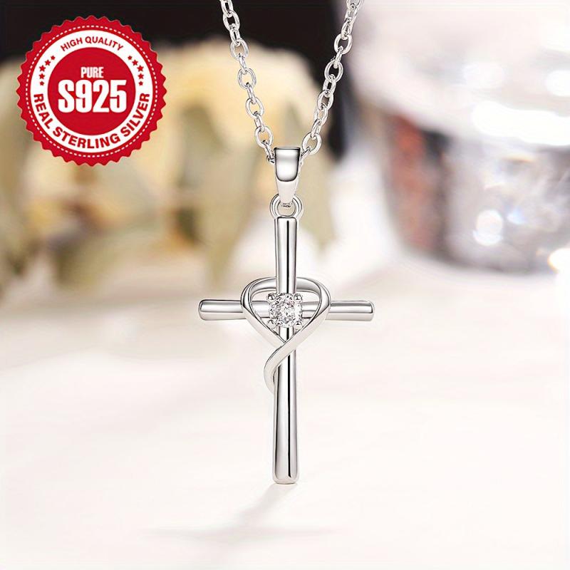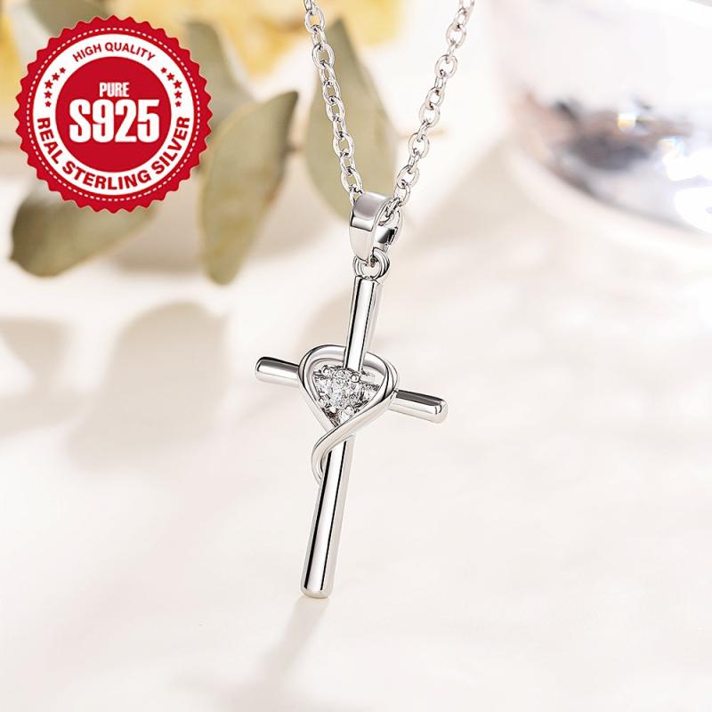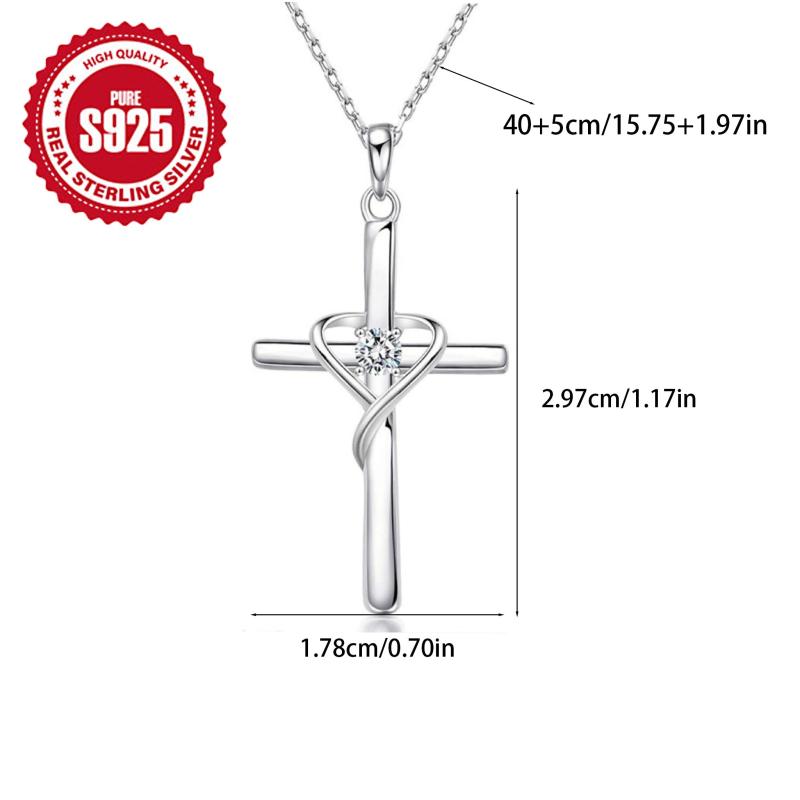 This heart cross necklace is a stylish accessory suitable for casual attire. It makes a great Christmas or anniversary gift. Hypoallergenic material ensures comfortable wear. Weighs 2.6g.