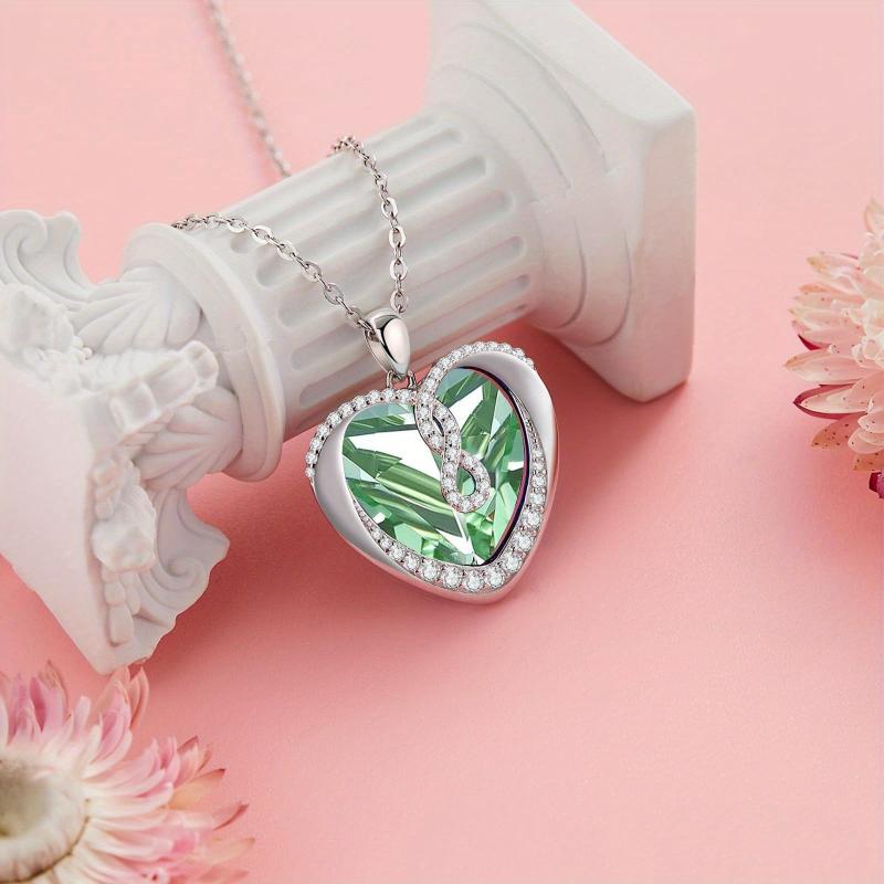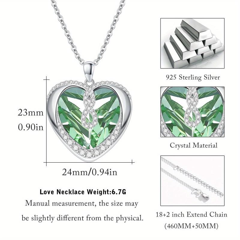 This stunning heart-shaped necklace features an infinity chain with a heart-shaped pendant made of 925 sterling silver and artificial crystal. It is a perfect gift for your girlfriend, mother, or any special woman in your life.