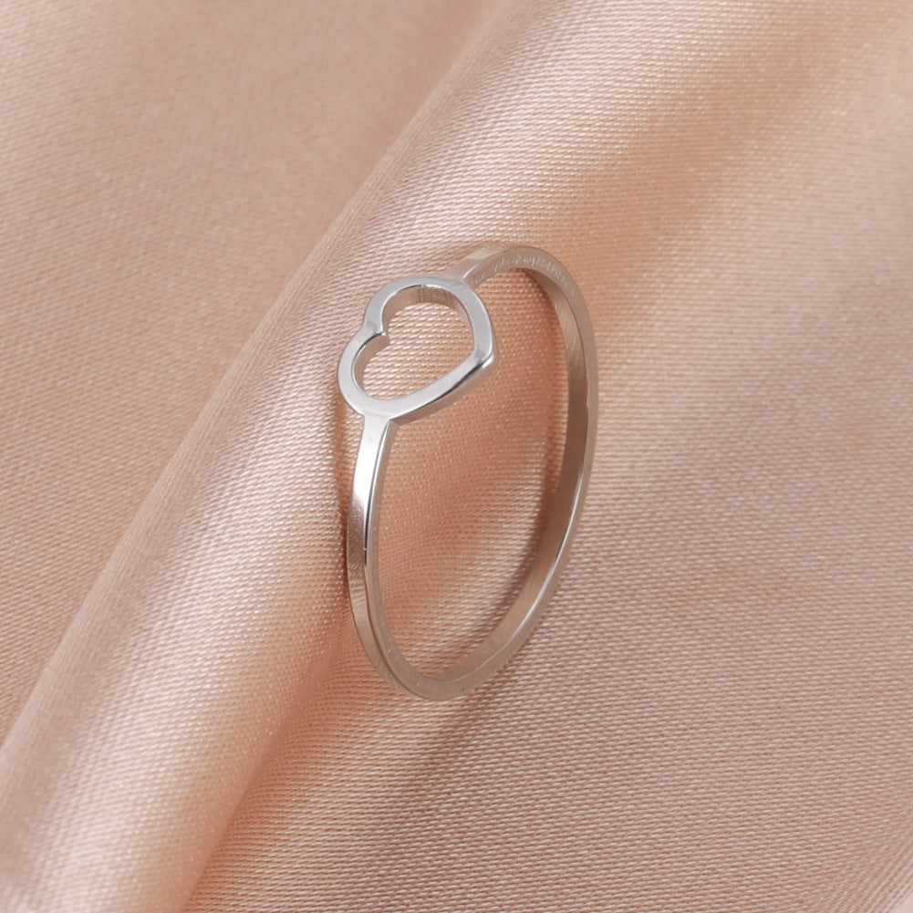This titanium steel heart ring features a silvery hollow heart shape design, perfect for daily decoration and party bar casual occasions.