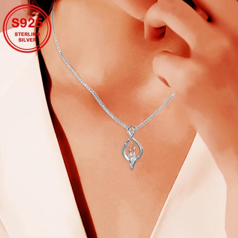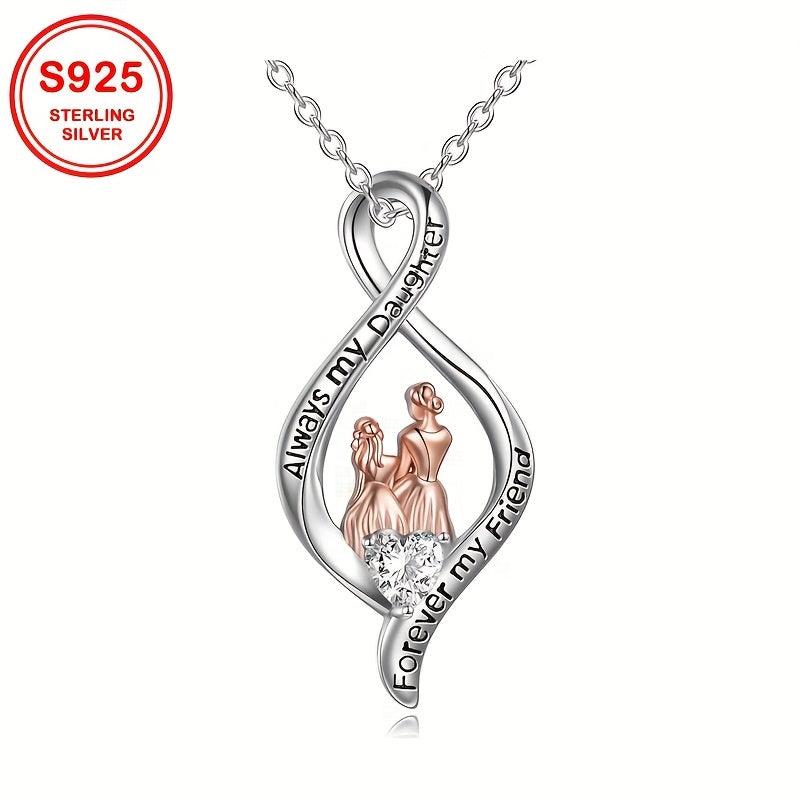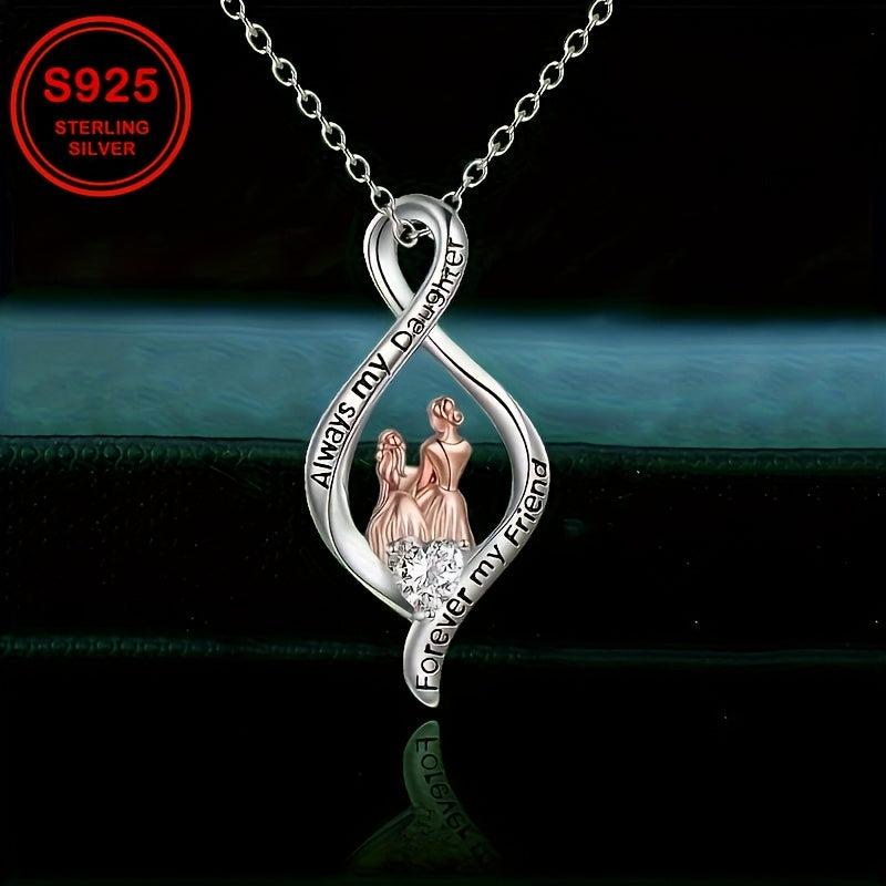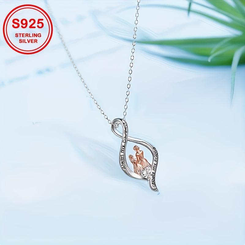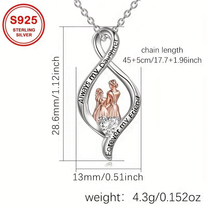Elegant and high-quality pendant necklace adorned with synthetic zirconia, perfect for mother-daughter duos. Made with S925 sterling silver, this 4.3g necklace is a precious gift for mothers.