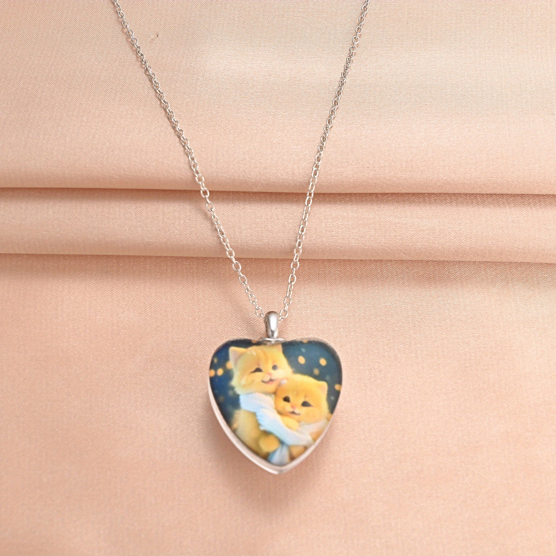 This exquisite necklace features a heart shaped crystal pendant with a delicate cat pattern design. Perfect for Christmas, banquets, weddings, and anniversaries.