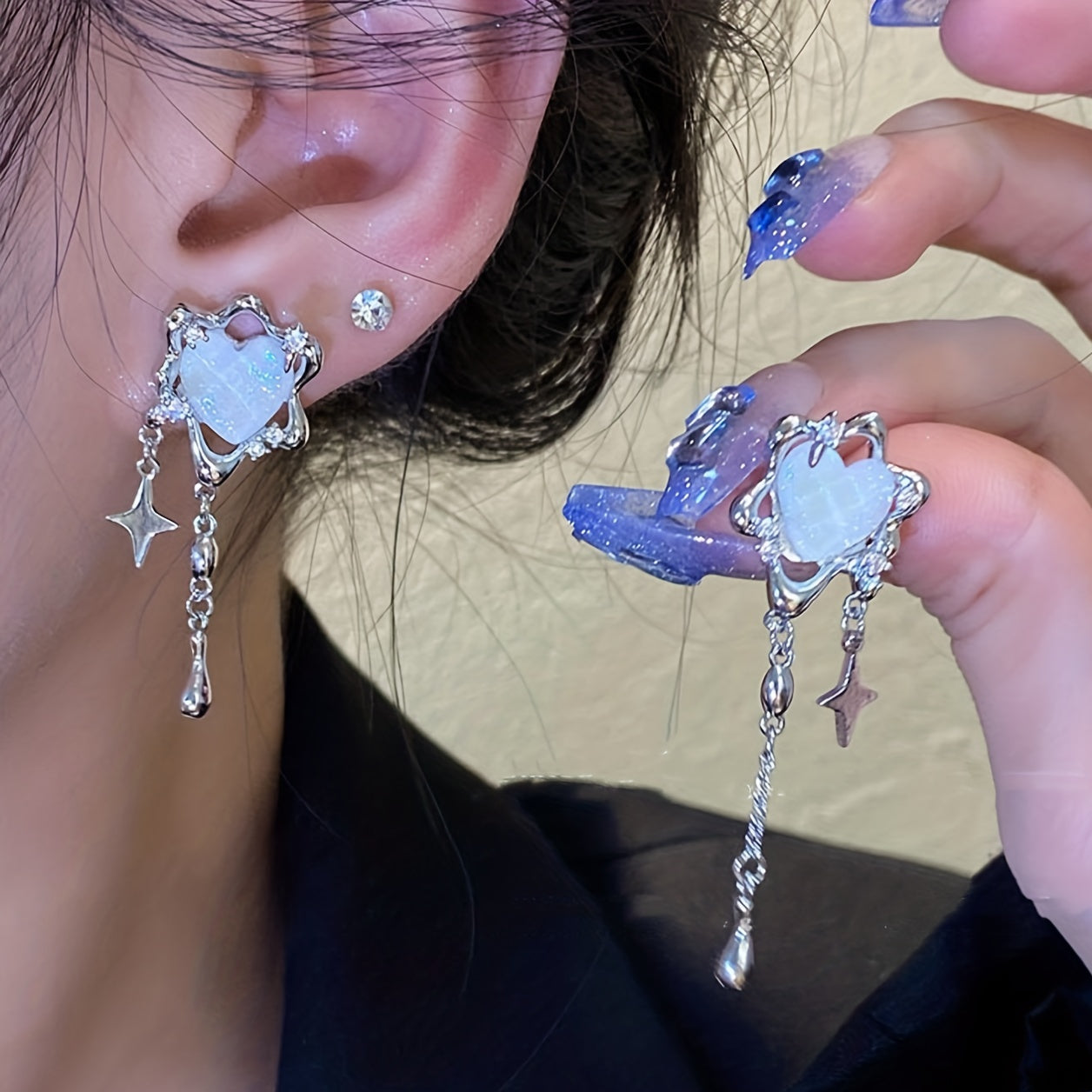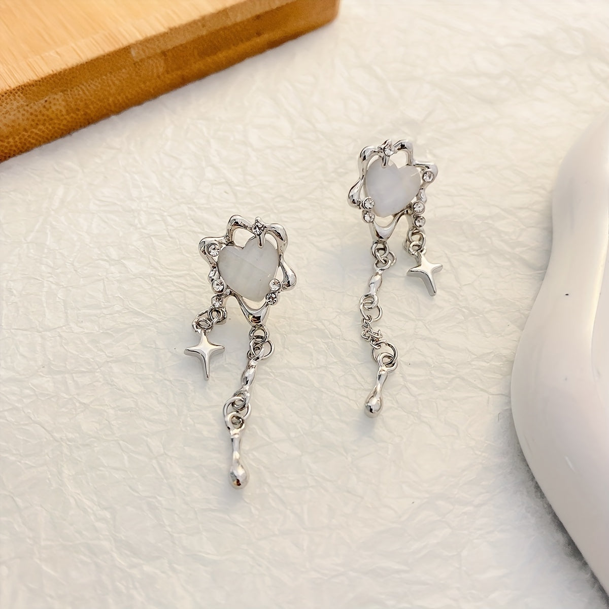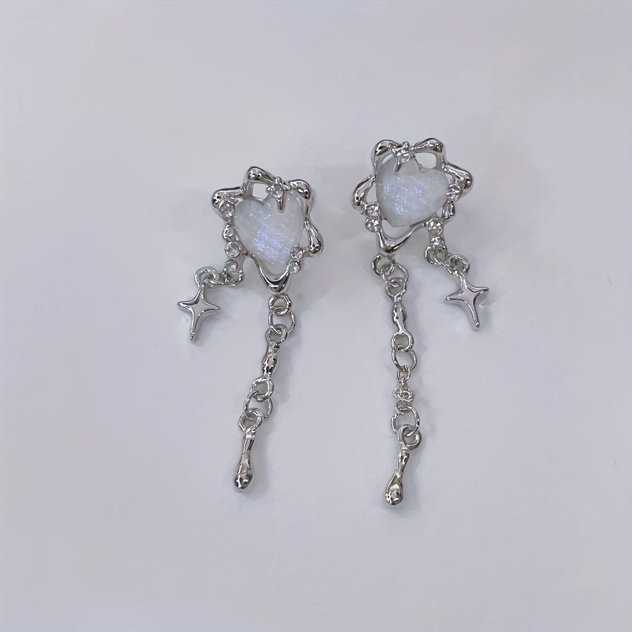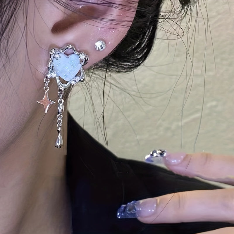 Add a touch of Y2K style to your daily look with these heart star chain dangle earrings, perfect for a casual yet fashionable vibe.