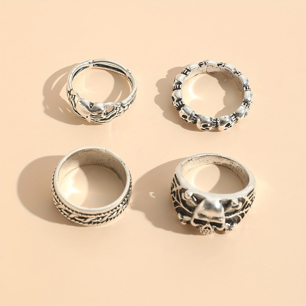Hip Hop Style Skull Finger Ring Set 4 Pcs