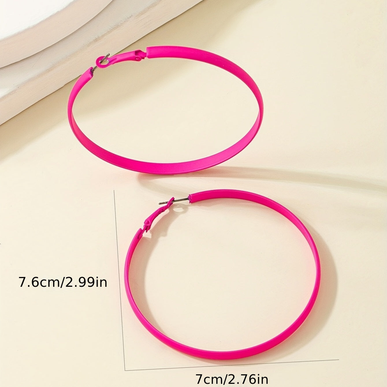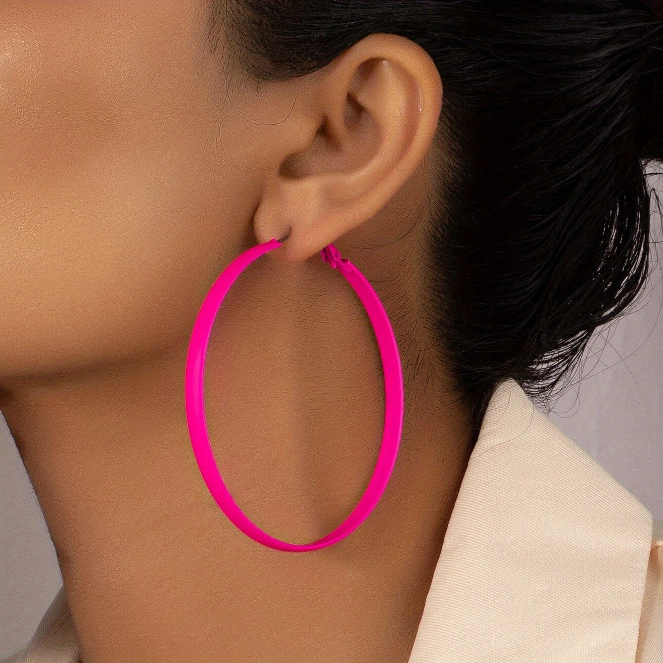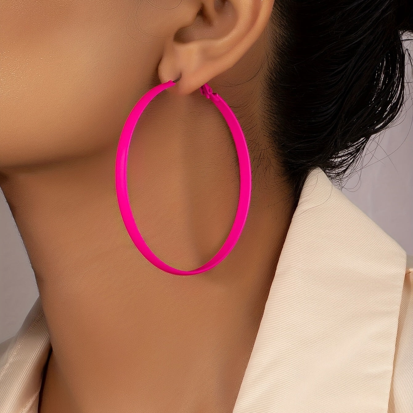 Hot Pink Exaggerated Hoop Earrings Alloy 18K Plated