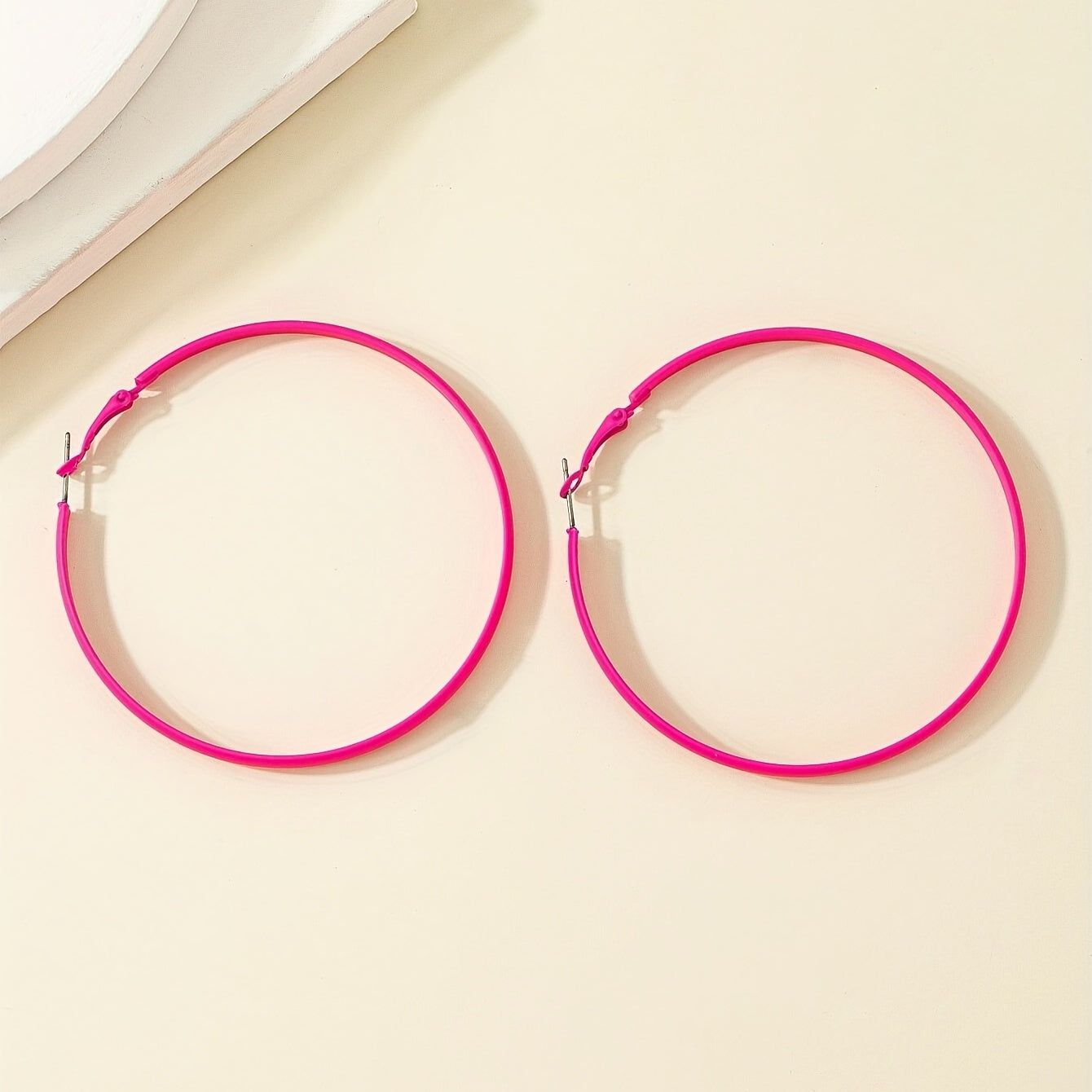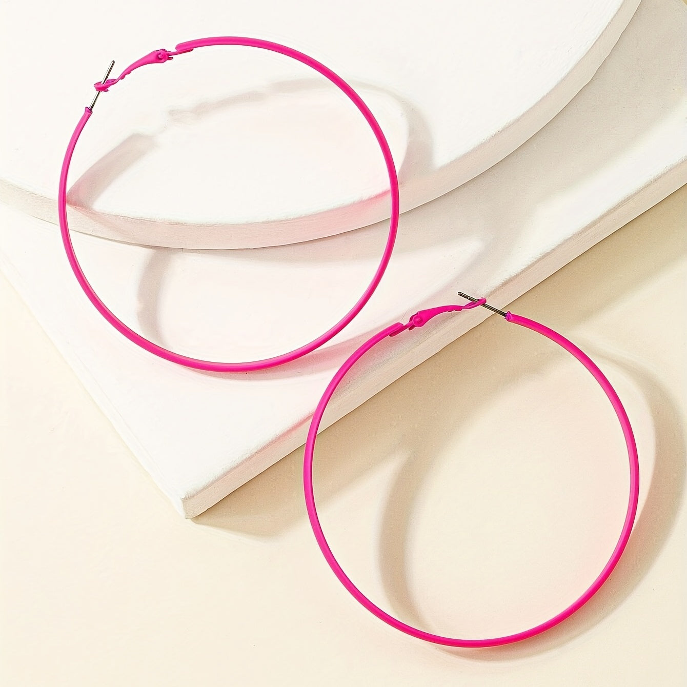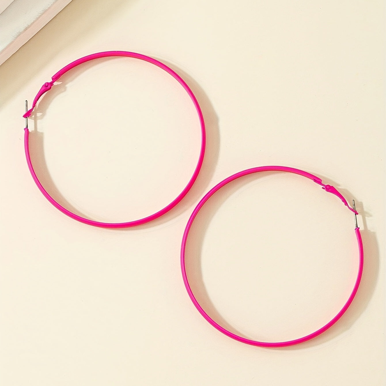 Hot Pink Exaggerated Hoop Earrings Alloy 18K Plated