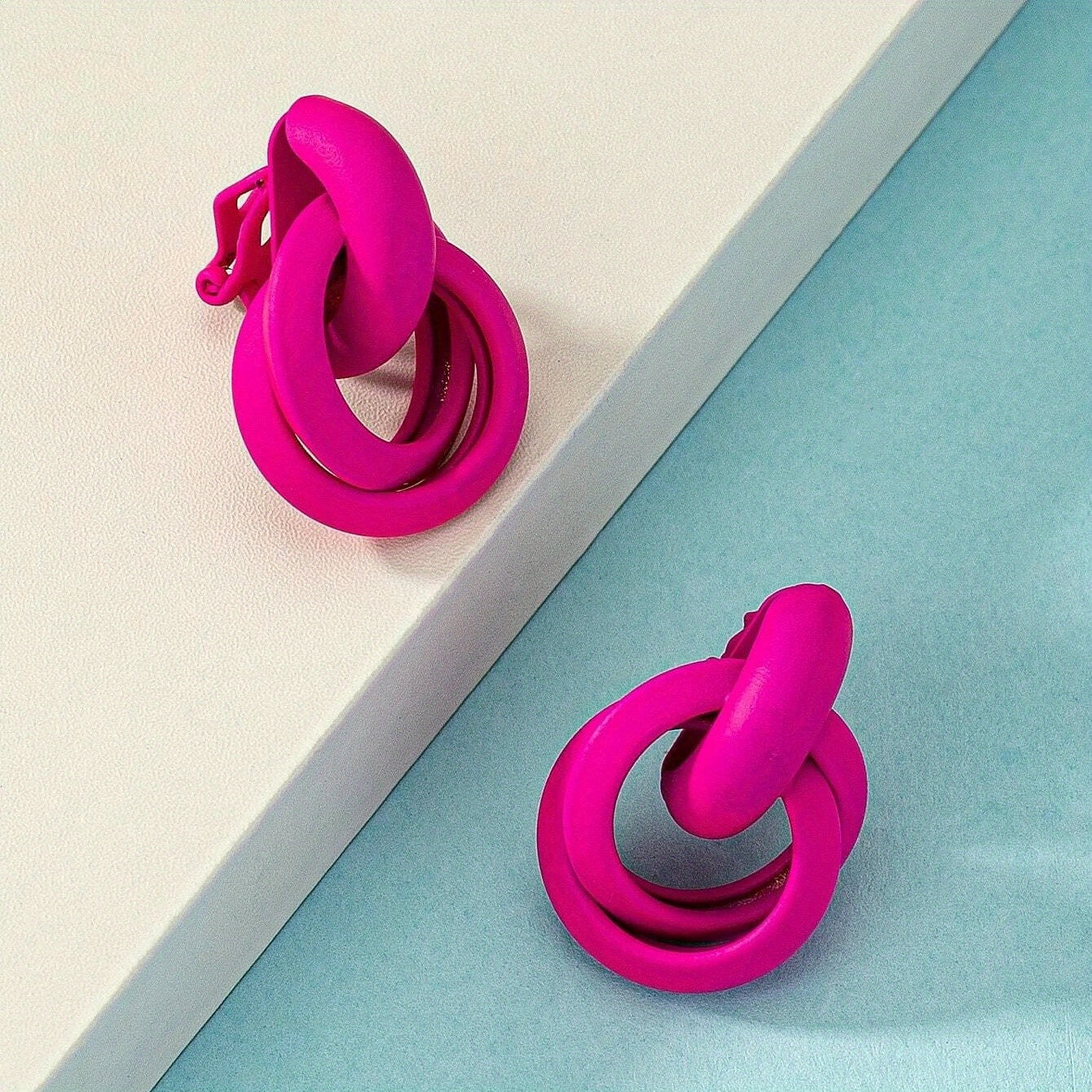 These stunning dangle earrings feature a hot pink, golden, and silvery color combination. Perfect for a sexy vocation style, these earrings are made of high-quality alloy with 18K plated finish. They make a great gift for females.