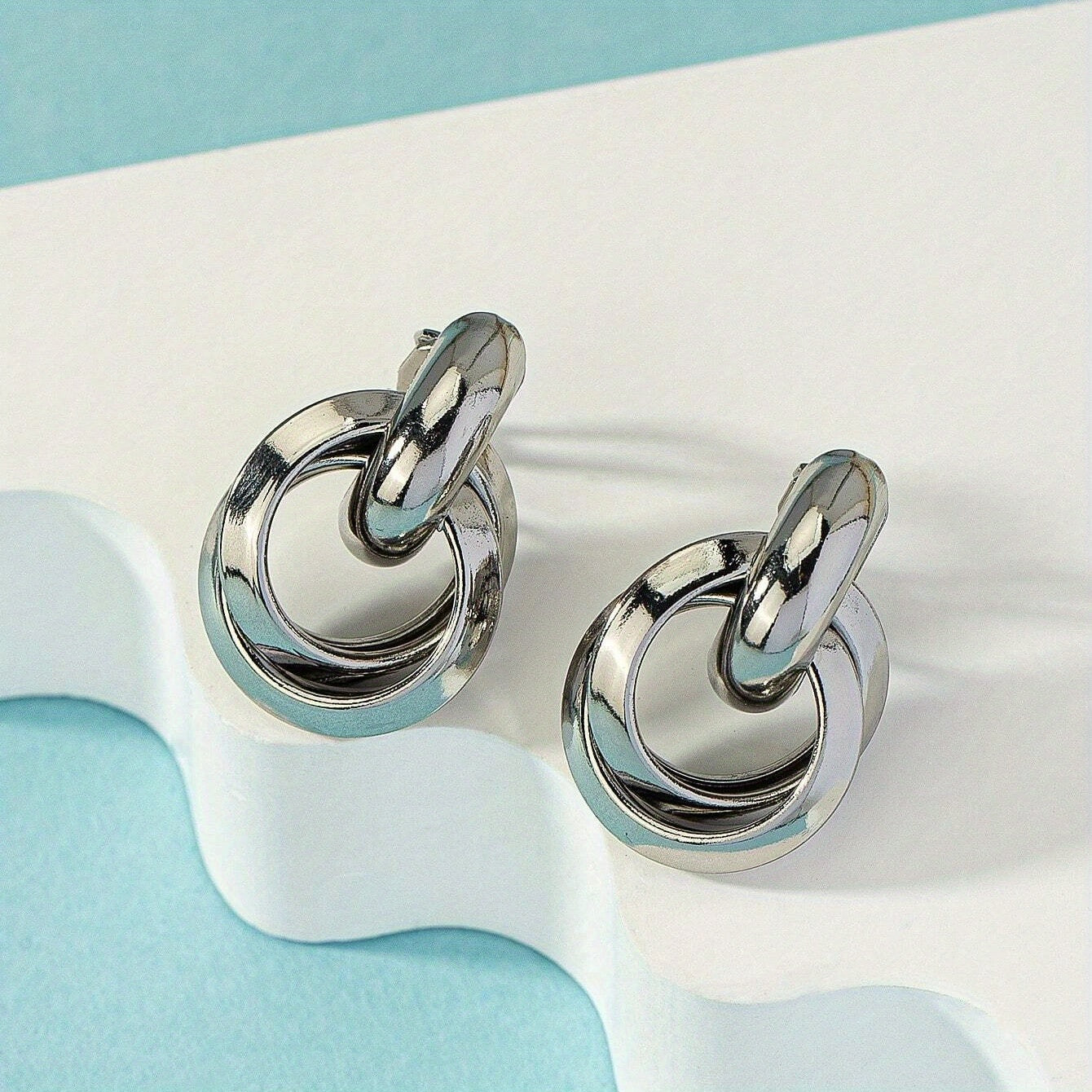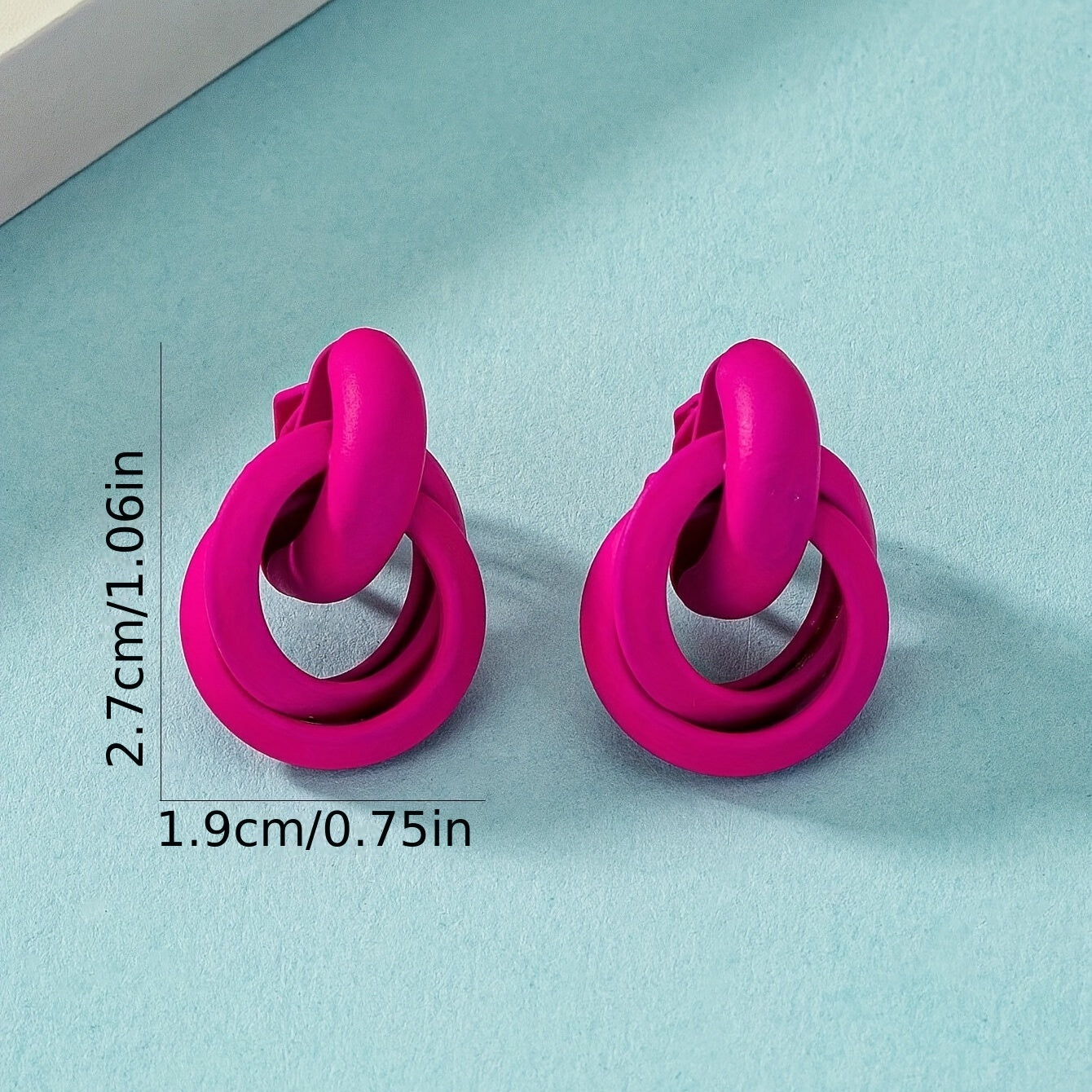 Hot Pink Golden Silvery Hollow Round Dangle Earrings Sexy Vocation Style