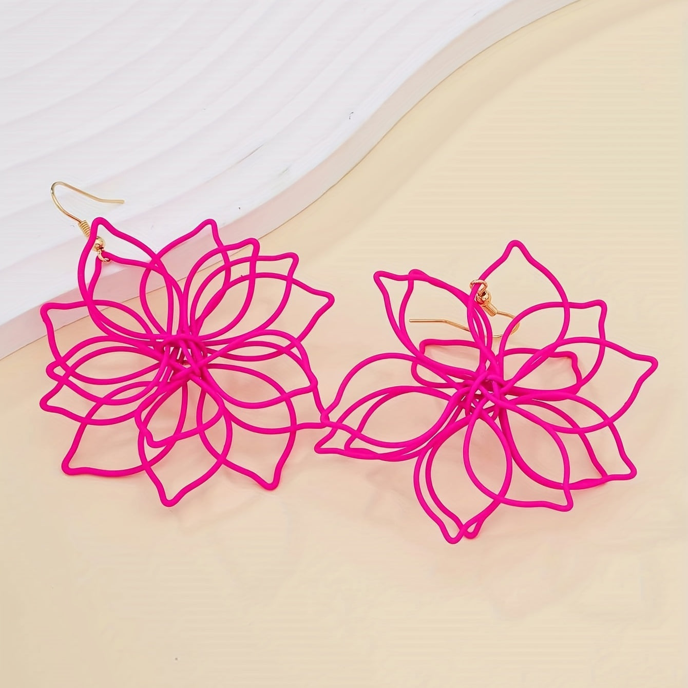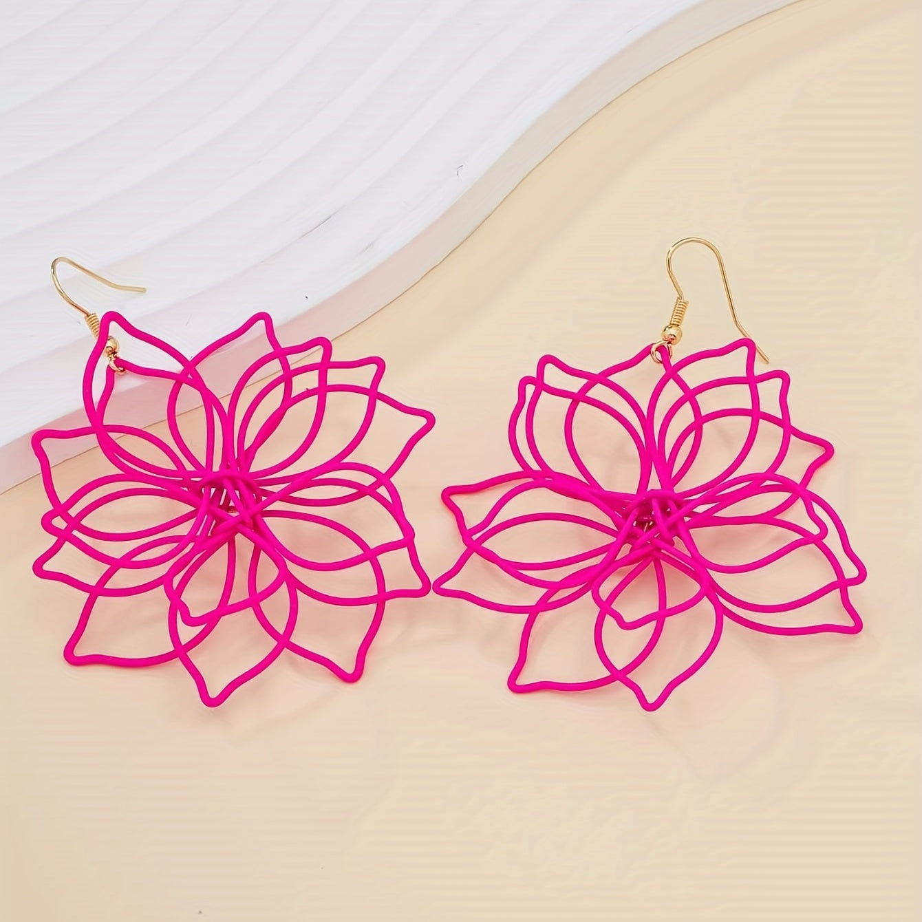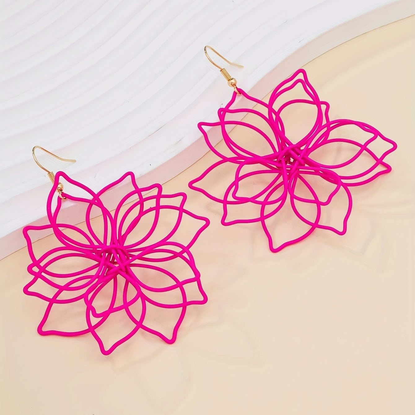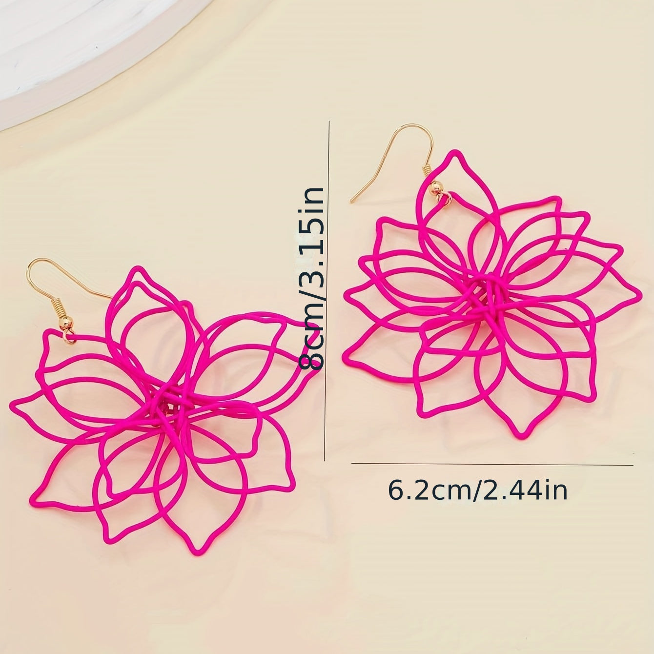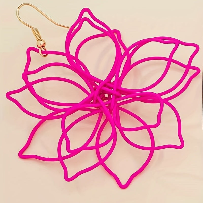 Add a pop of color to your look with these hot pink hollow flower dangle earrings. These earrings are perfect for any occasion and make a thoughtful gift for a special woman in your life.