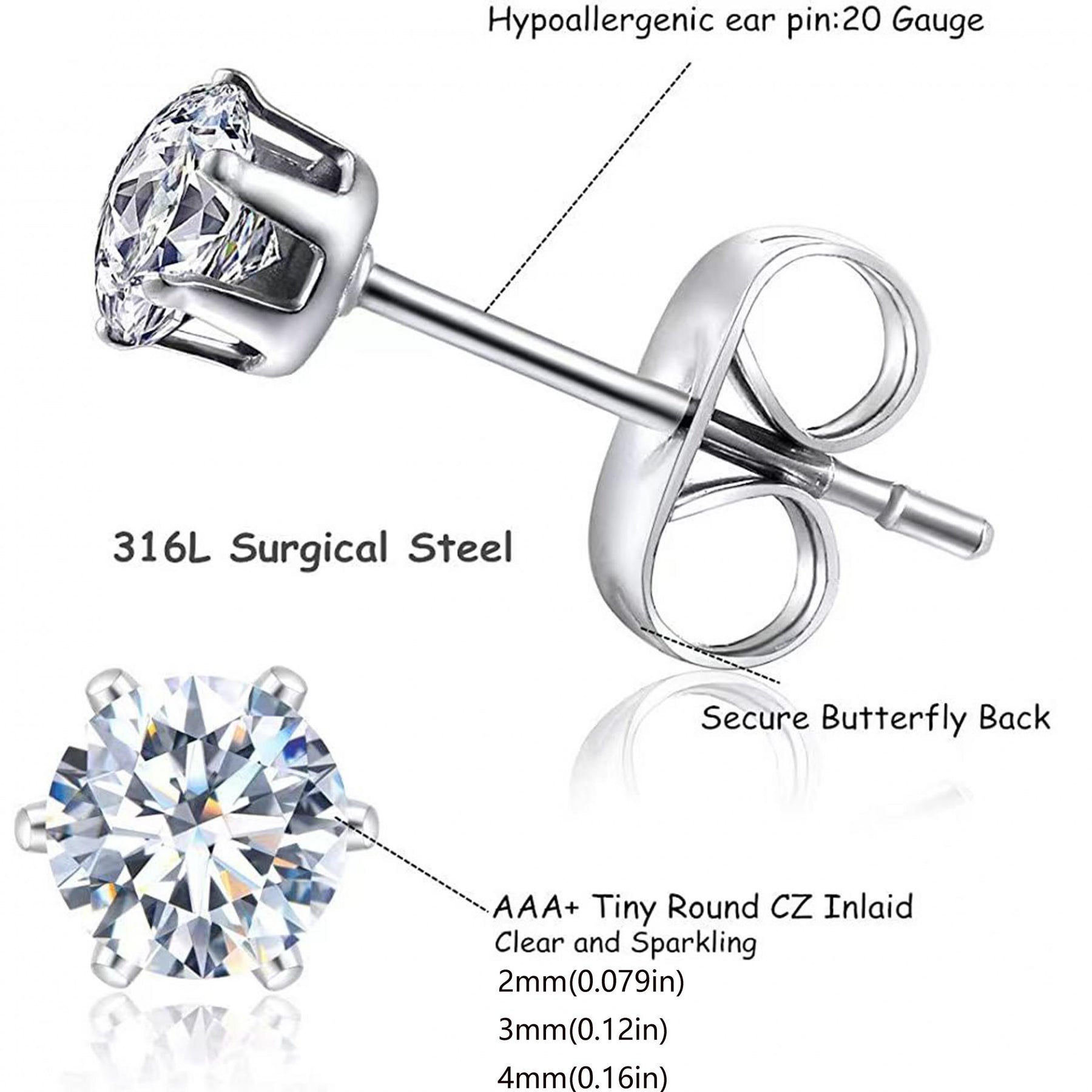Hypoallergenic Stainless Steel Zircon Stud Earrings