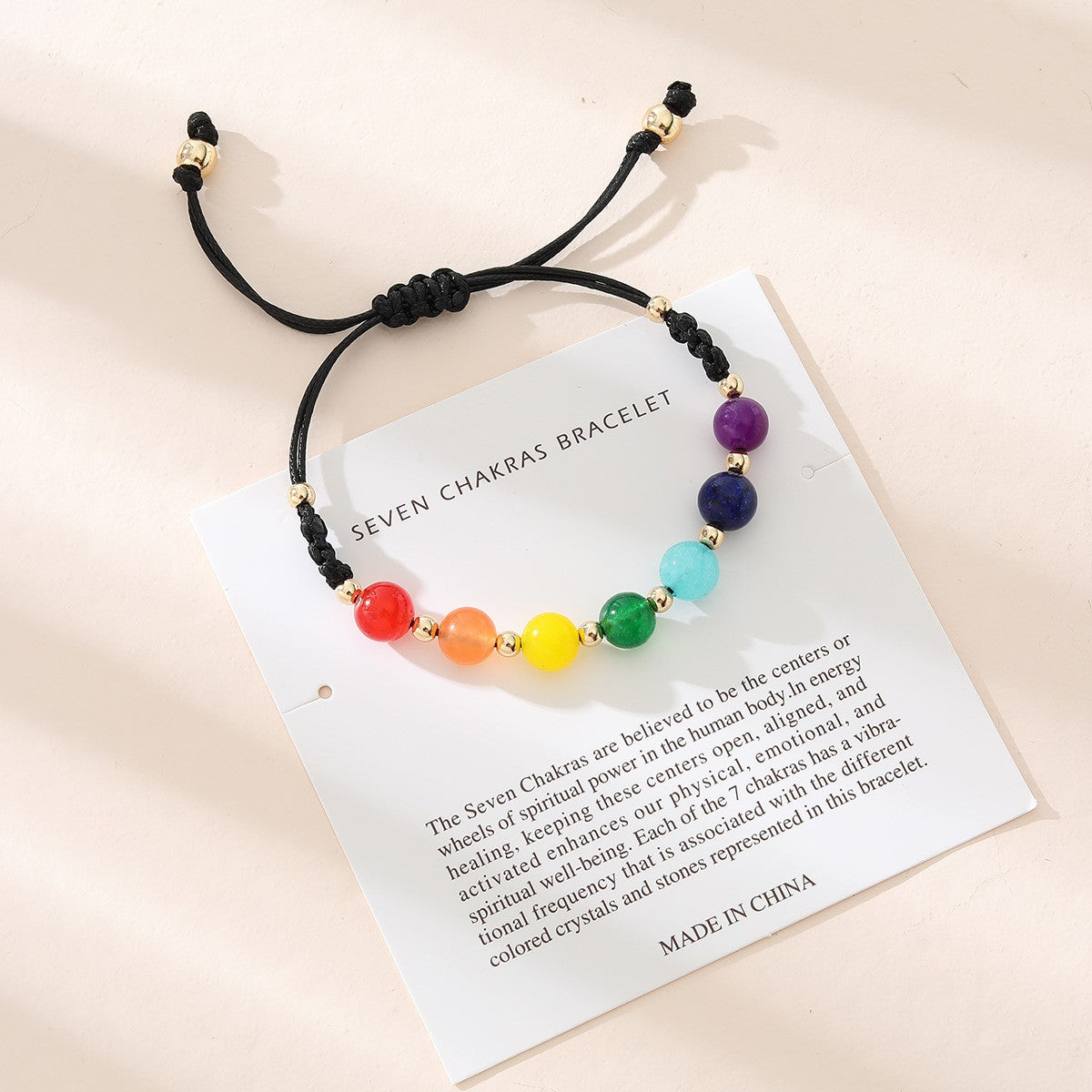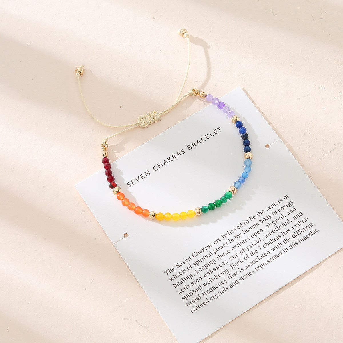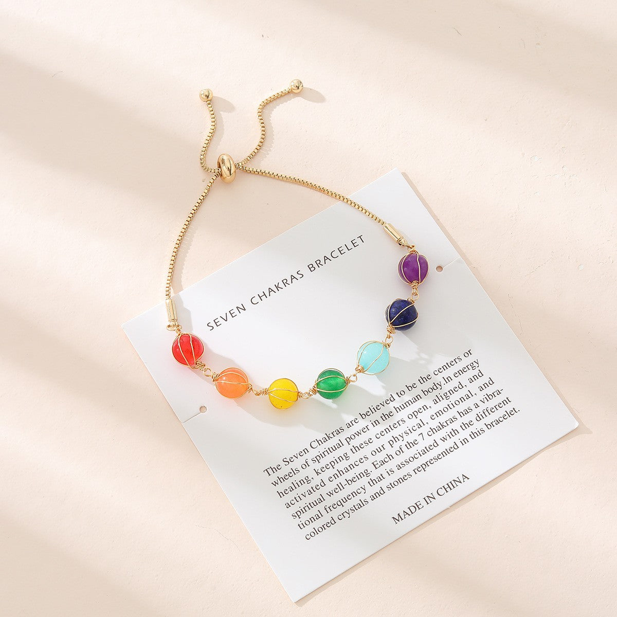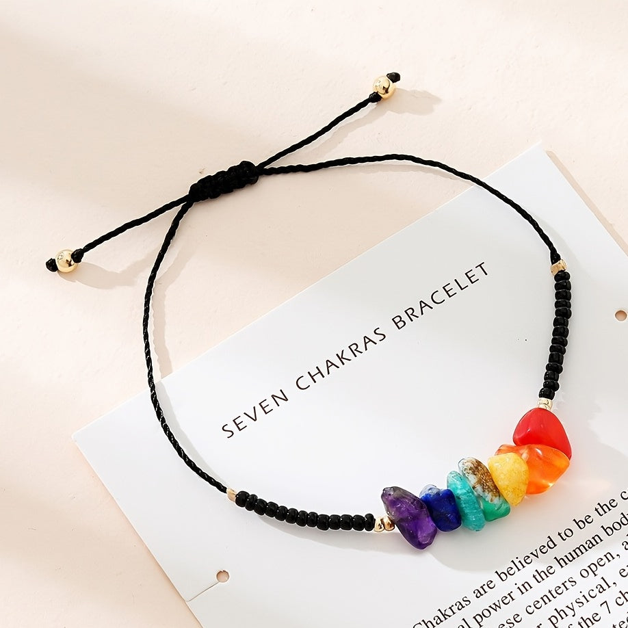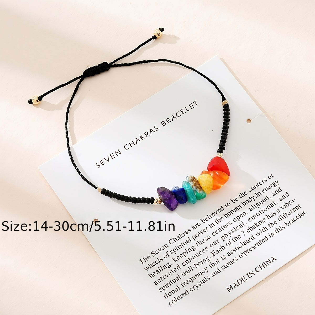This minimalist bracelet features irregular colorful crystal stones for a unique look. It is adjustable to fit most wrist sizes, making it a lucky and meaningful piece of jewelry.