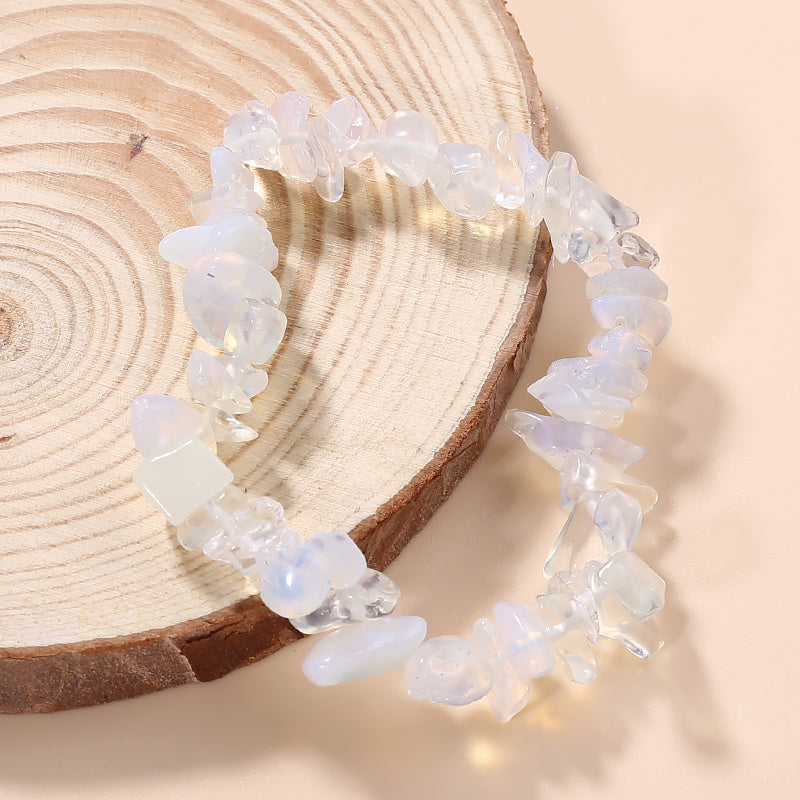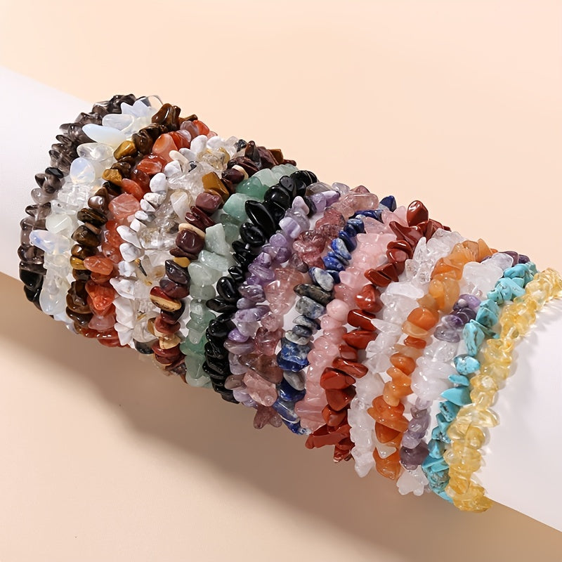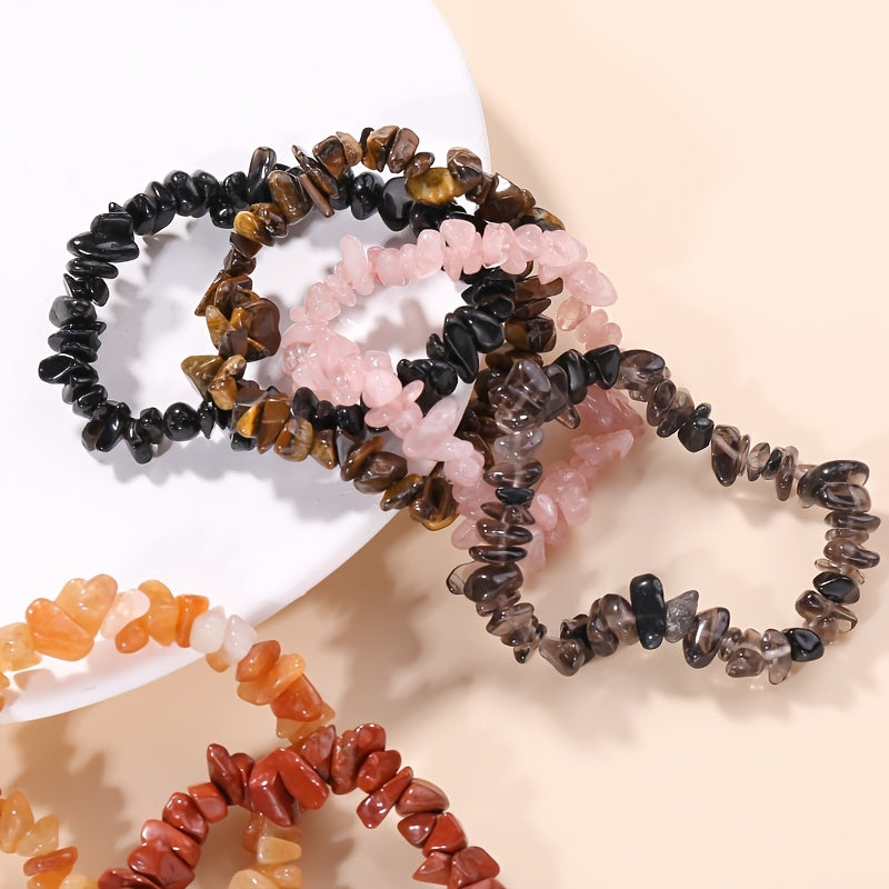 This beautiful bracelet features irregular natural stones on an elastic band, perfect for women and girls.