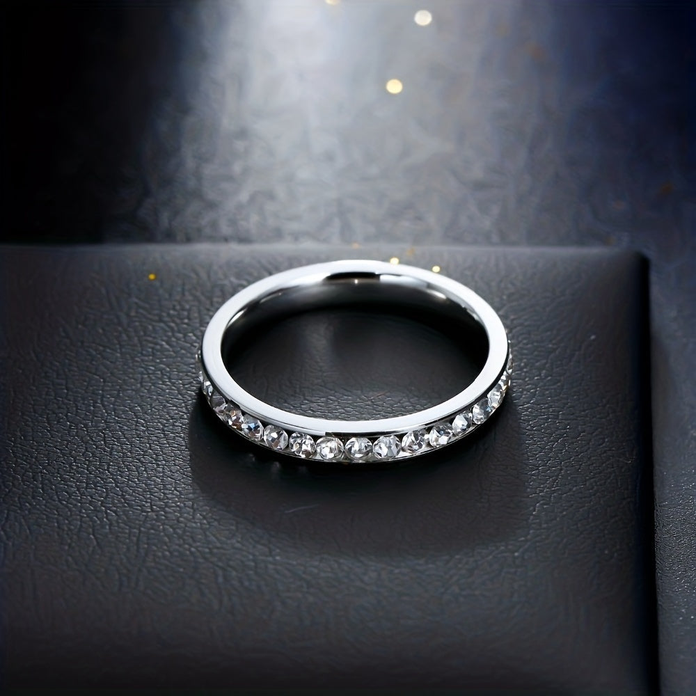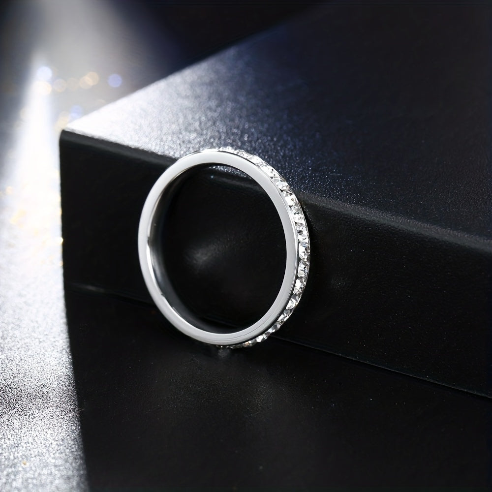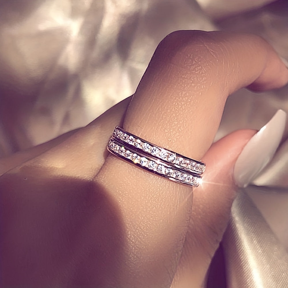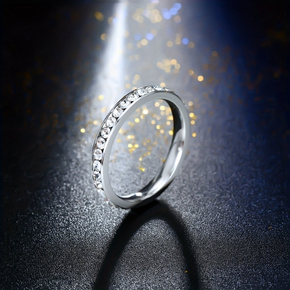 This Kpop shining ring features inlaid rhinestones, making it perfect for men and women. Ideal for engagement, wedding, and party wear.