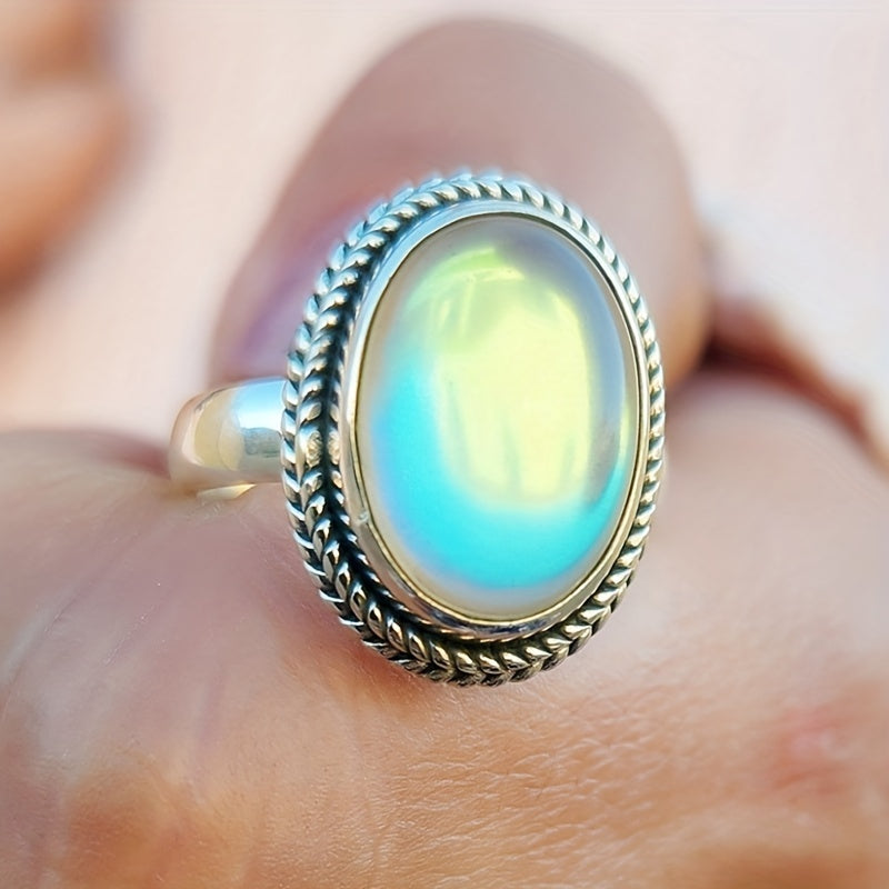 Add a touch of elegance to your summer outfits with this exaggerated ring featuring a large moonstone. Perfect for a dainty birthday gift for her.