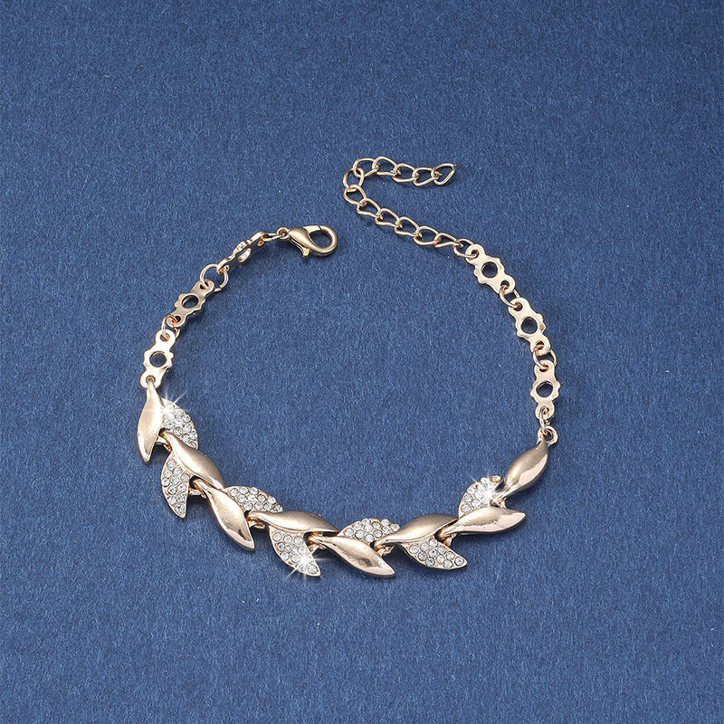 Leaf Shape Bangle Bracelet with Rhinestone Inlay