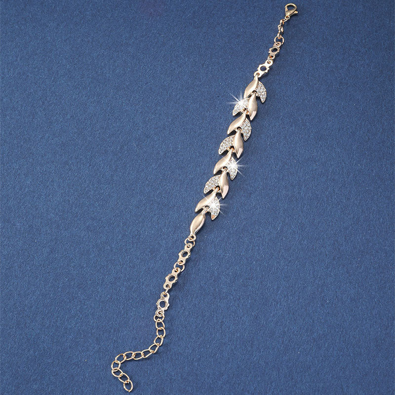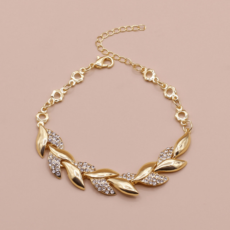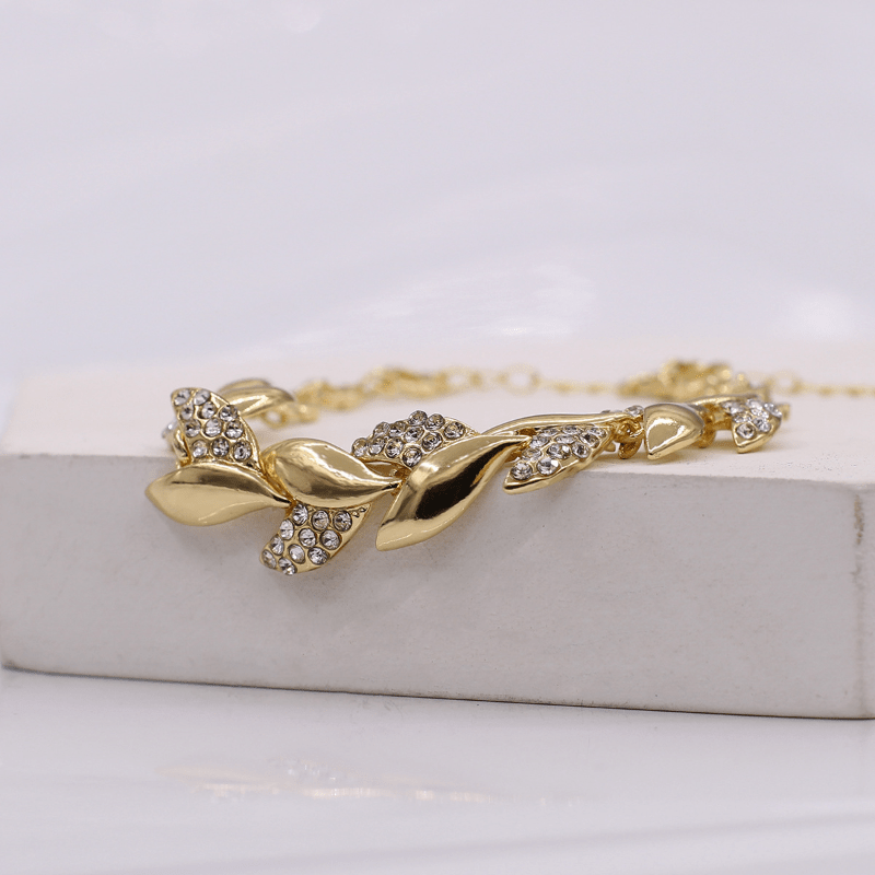 • Leaf shape bangle bracelet with rhinestone inlay