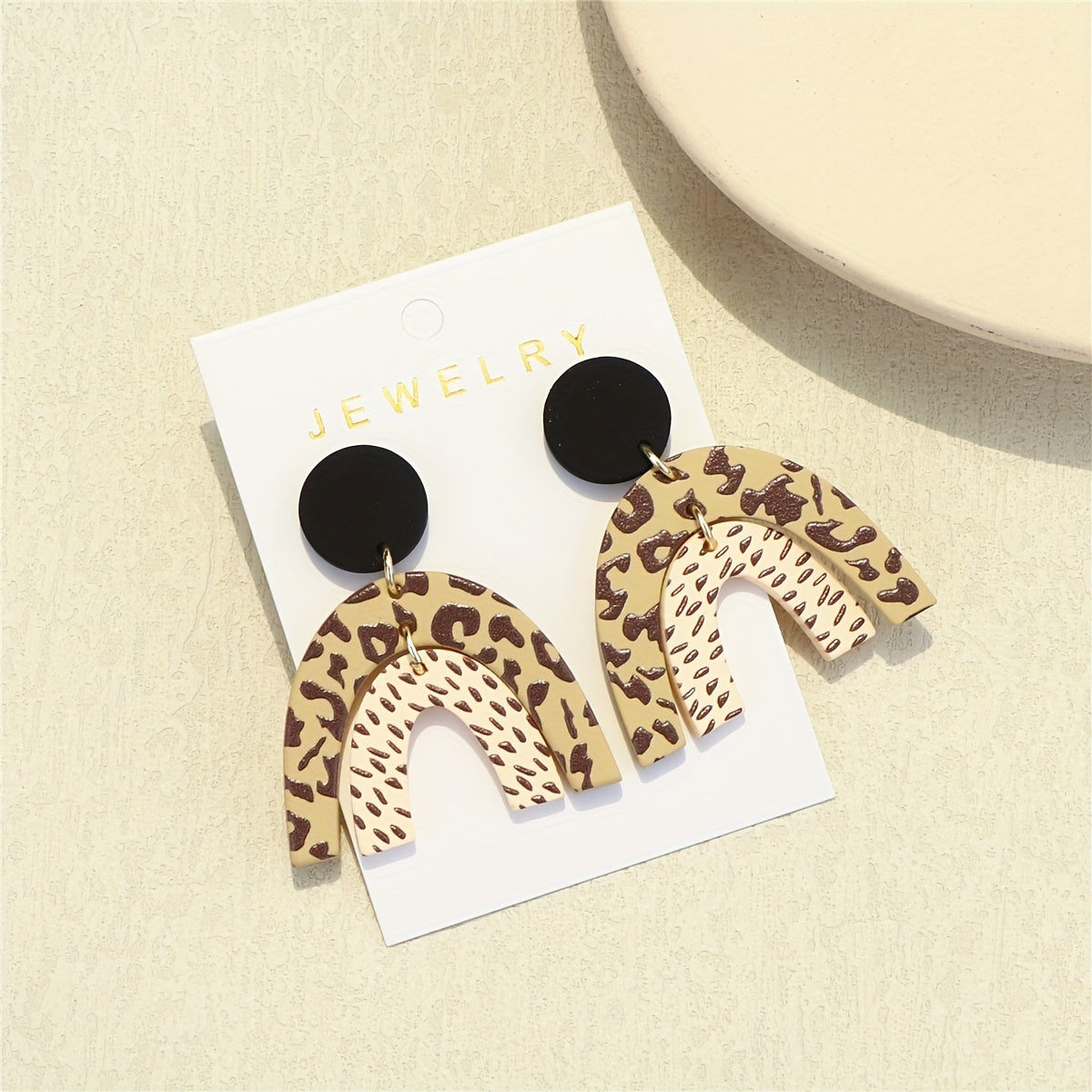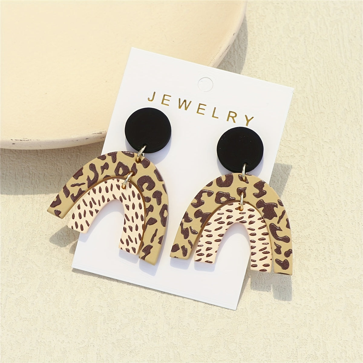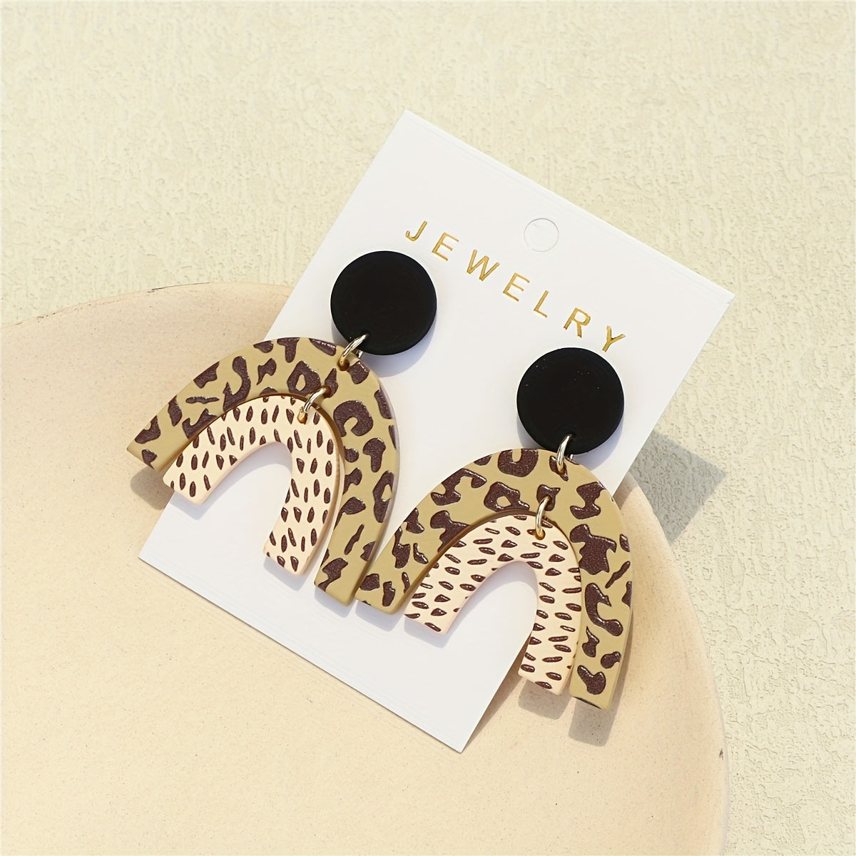 These U-shaped earrings feature a stylish leopard pattern design with a polymer clay texture. They are a delicate and unique accessory that makes a perfect gift for women.