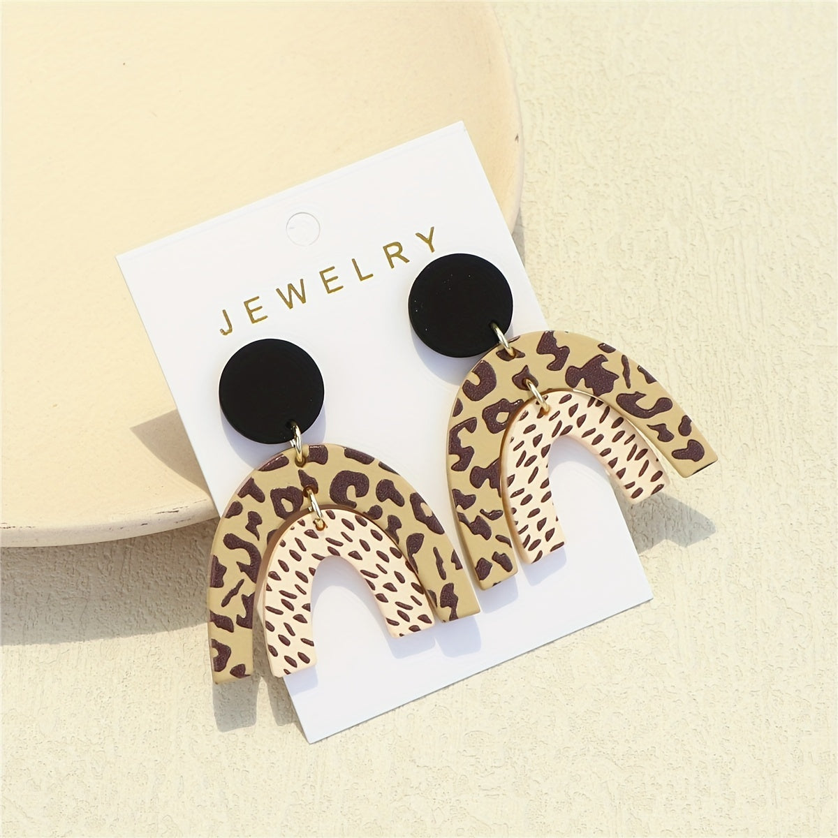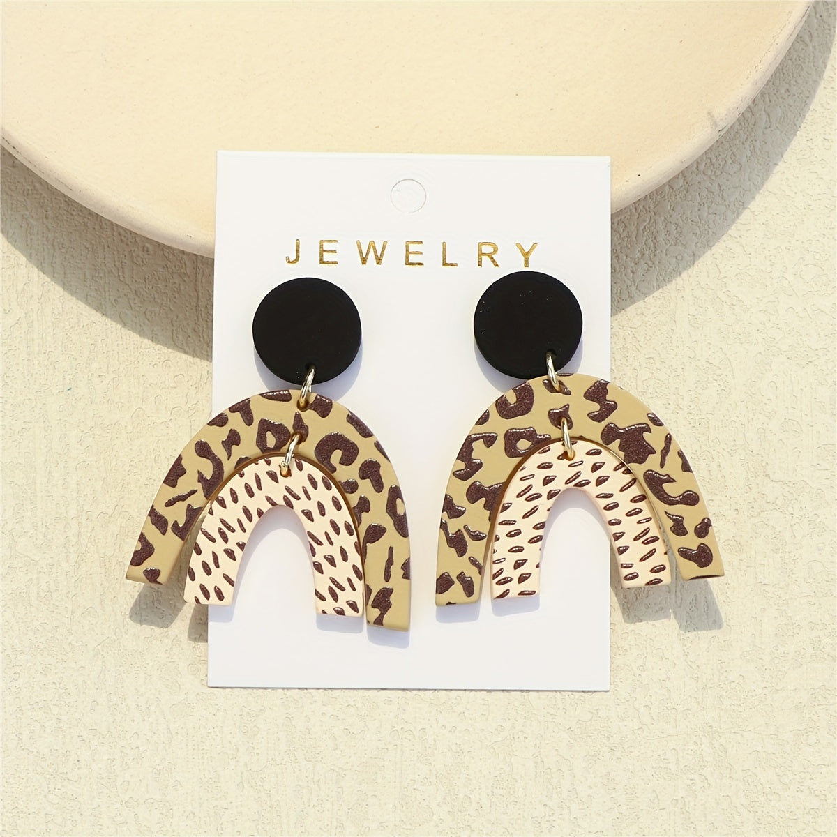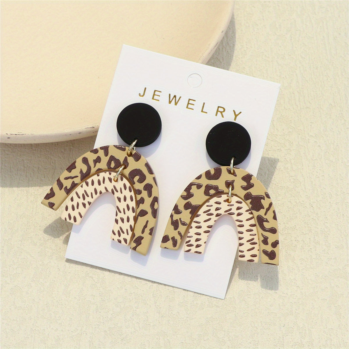 These U-shaped earrings feature a stylish leopard pattern design with a polymer clay texture. They are a delicate and unique accessory that makes a perfect gift for women.