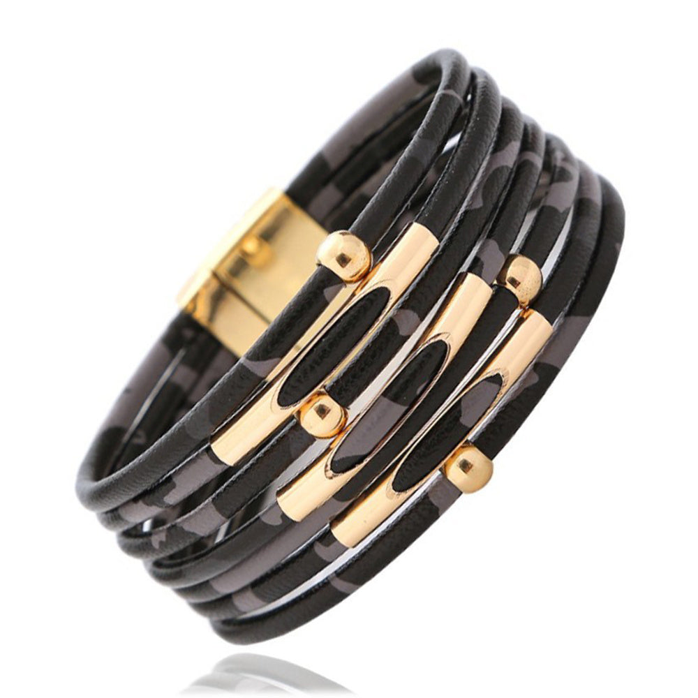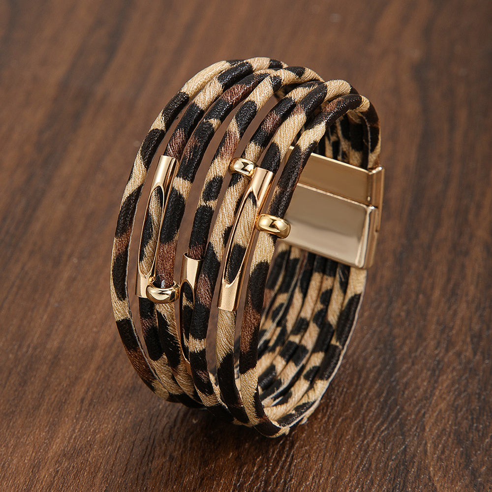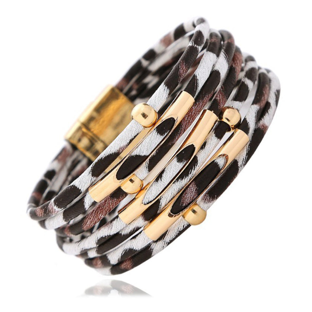 Add a touch of wild style to your outfit with this trendy leopard print magnetic leather bracelet designed for women.