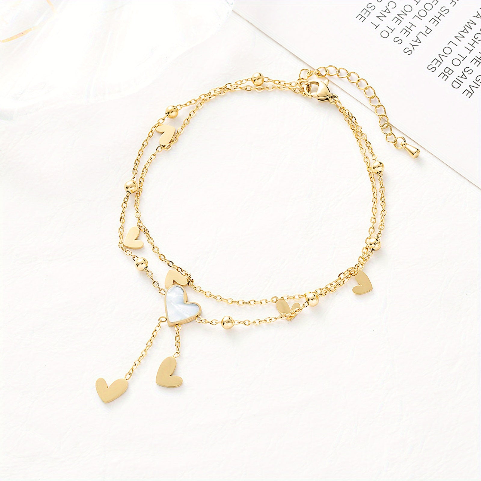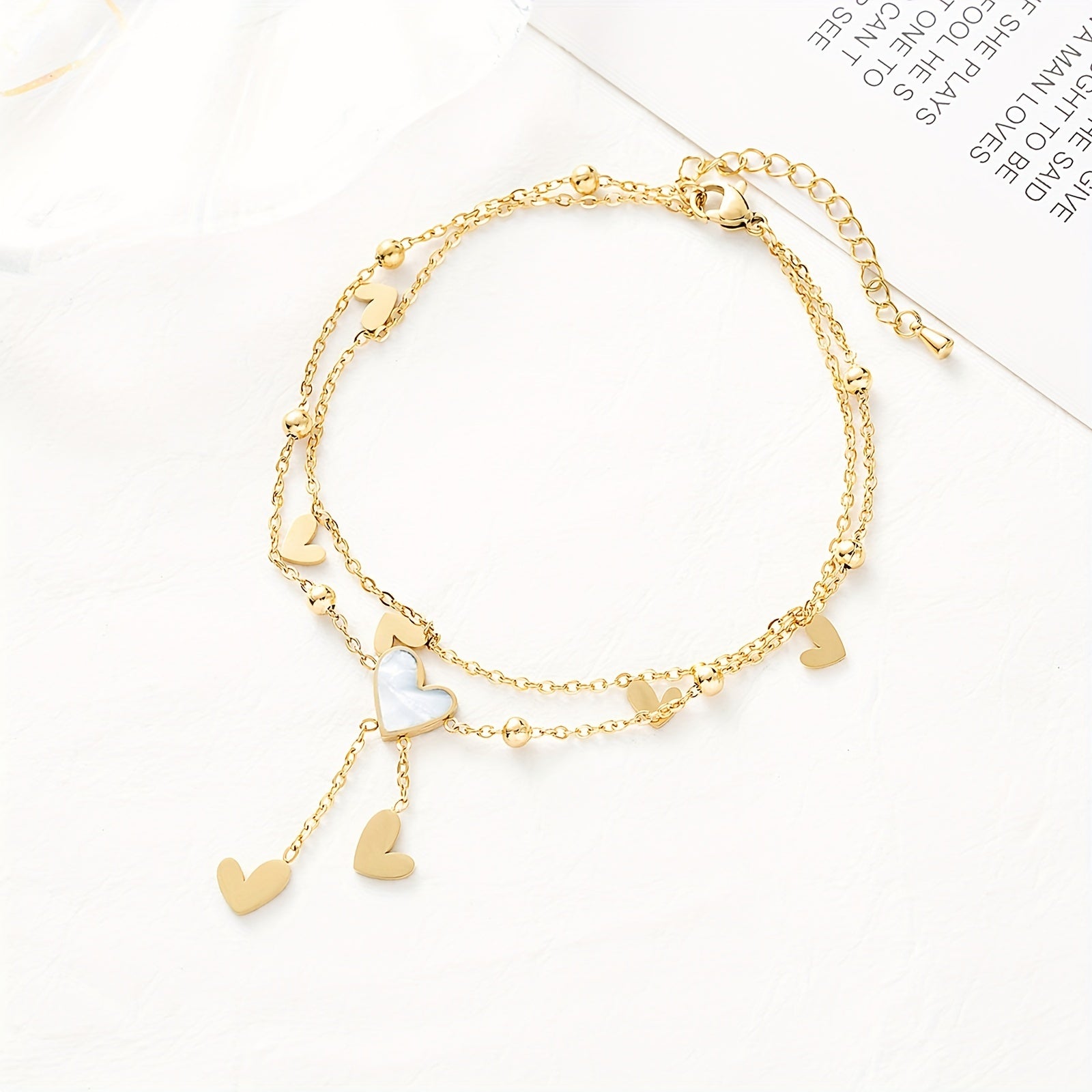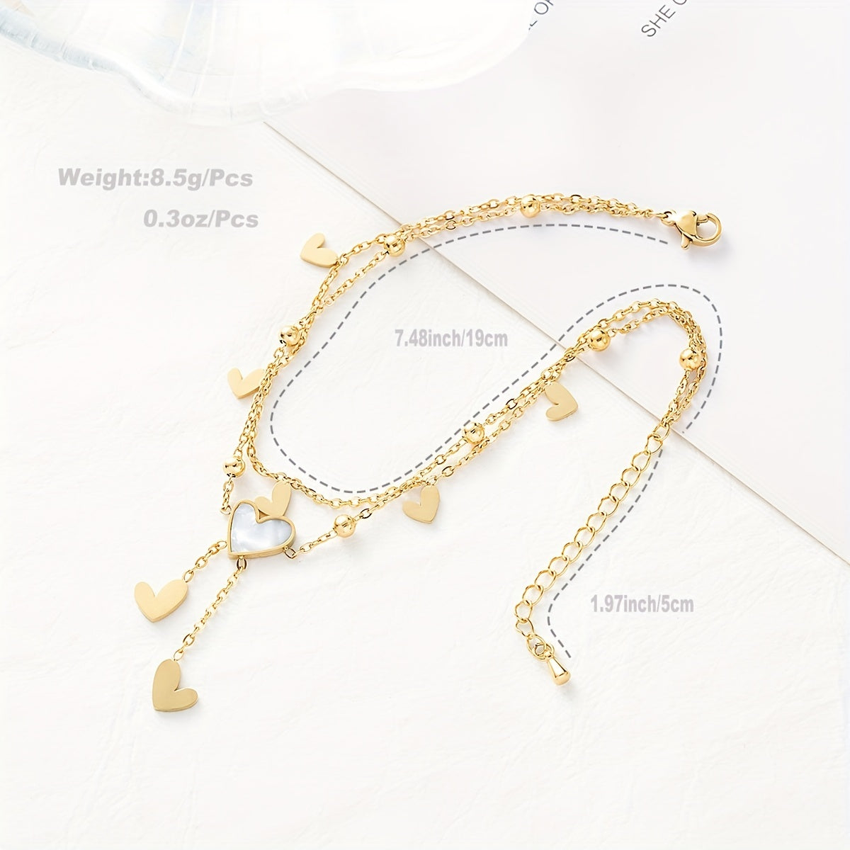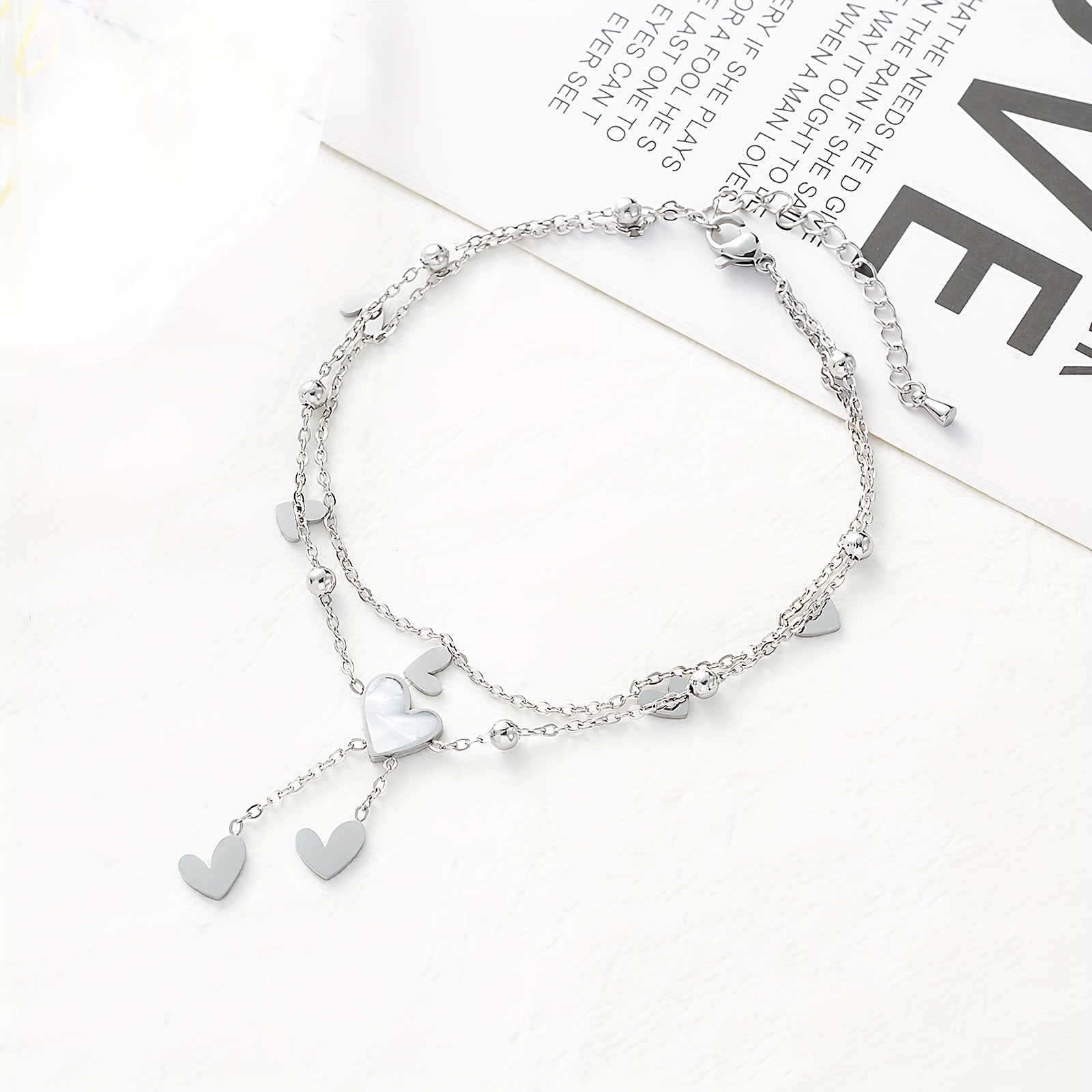 Love Heart Pendant Chain Anklet Sequin Love Pendant Layered Ankle Bracelet