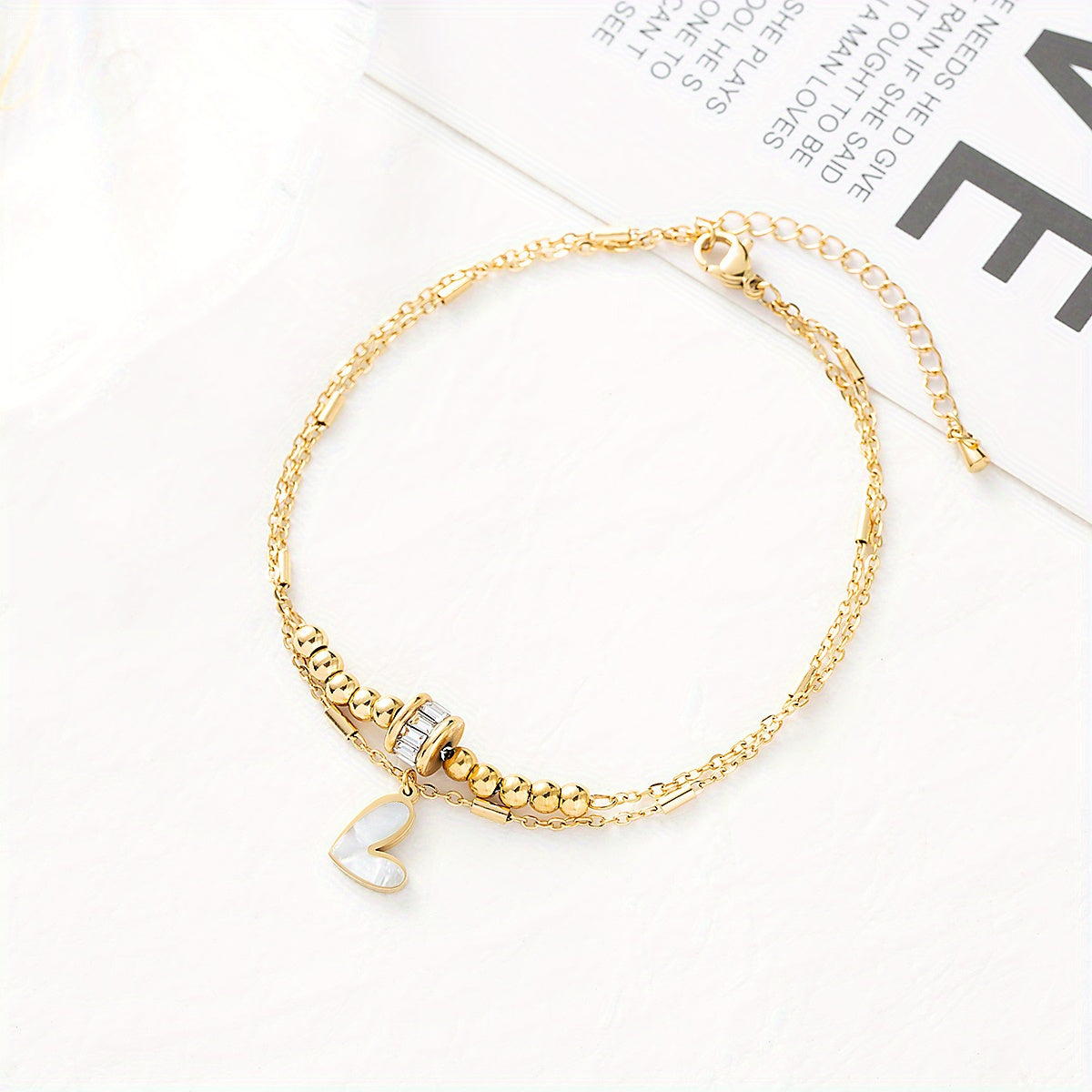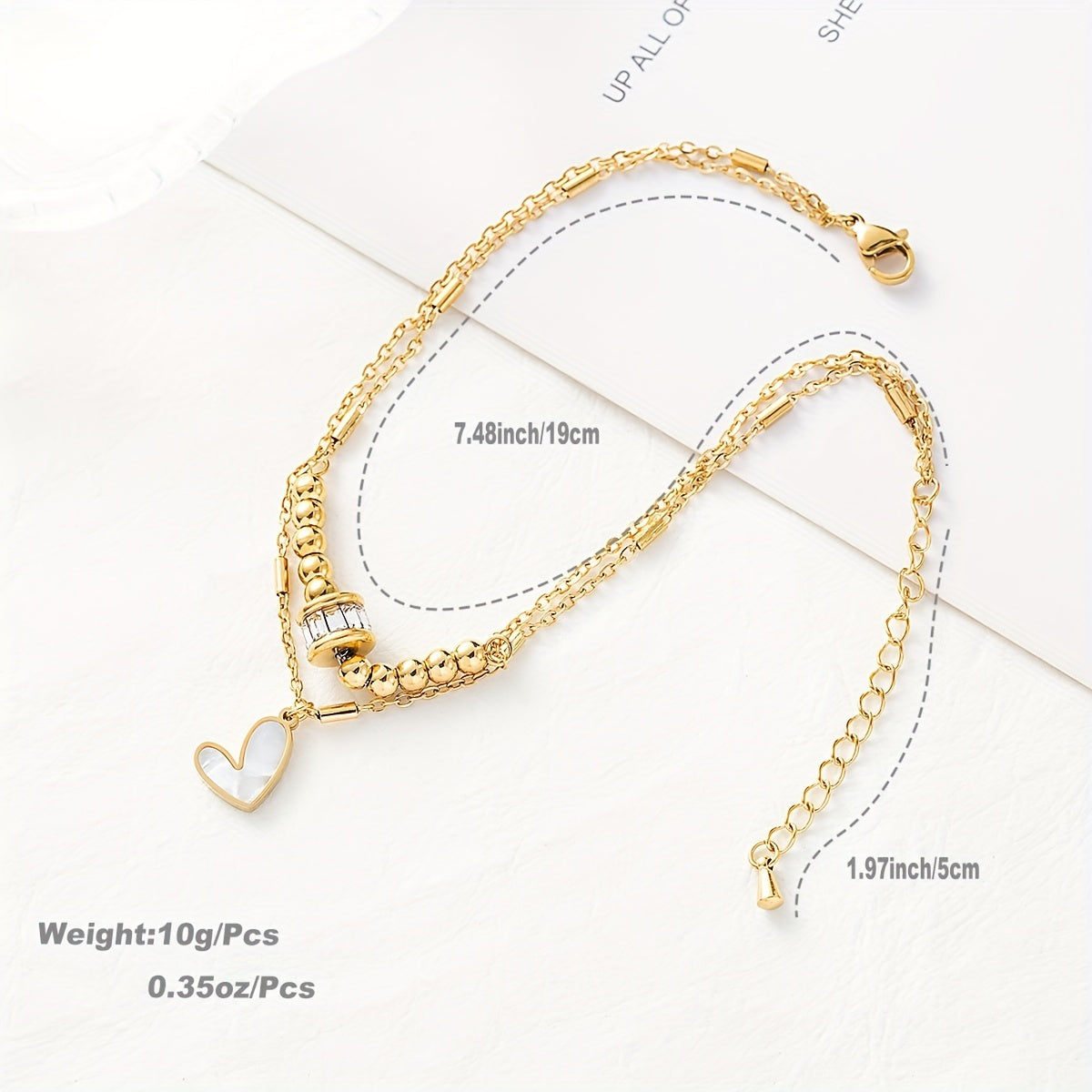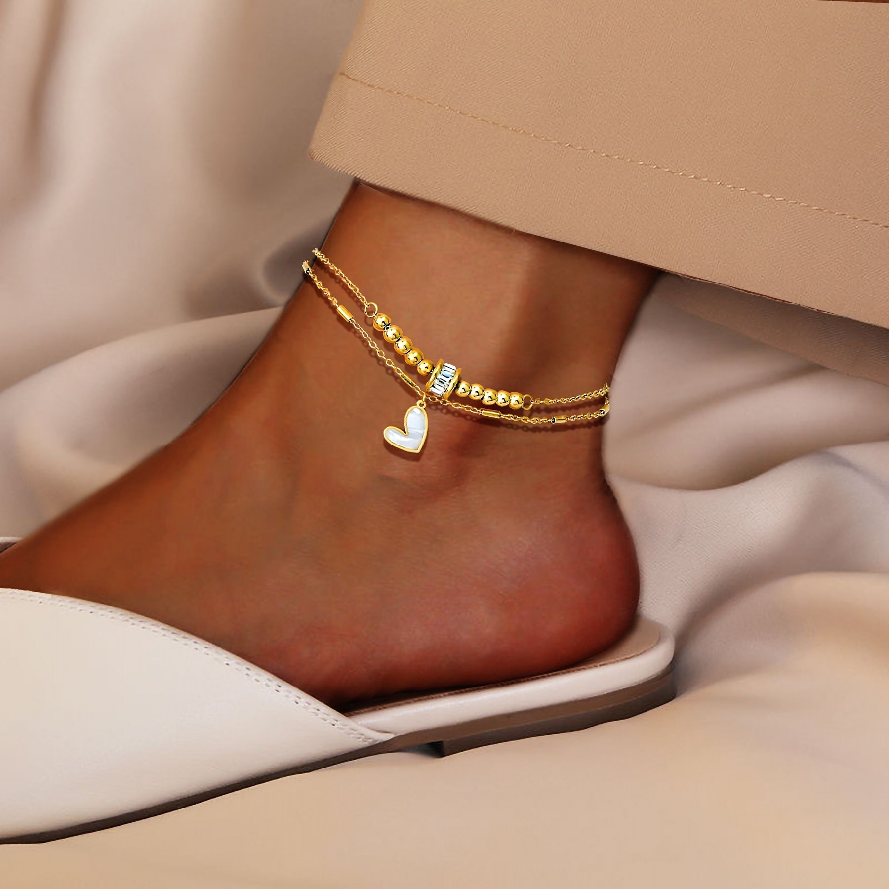This elegant anklet features a love heart pendant with a durable stainless steel chain. It is plated with 18K gold for a luxurious finish.