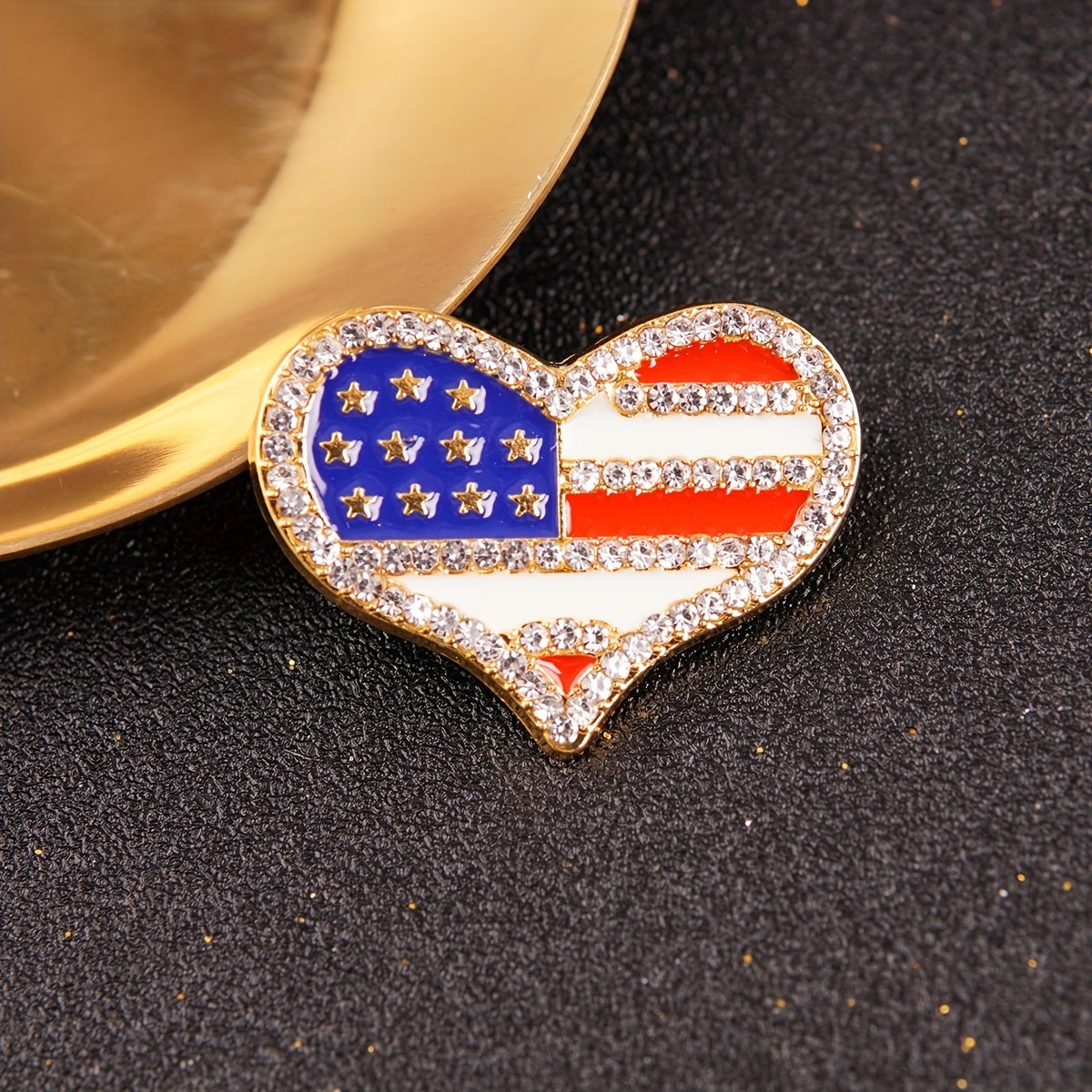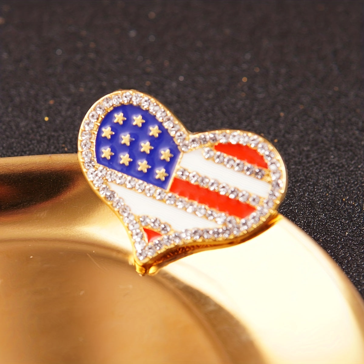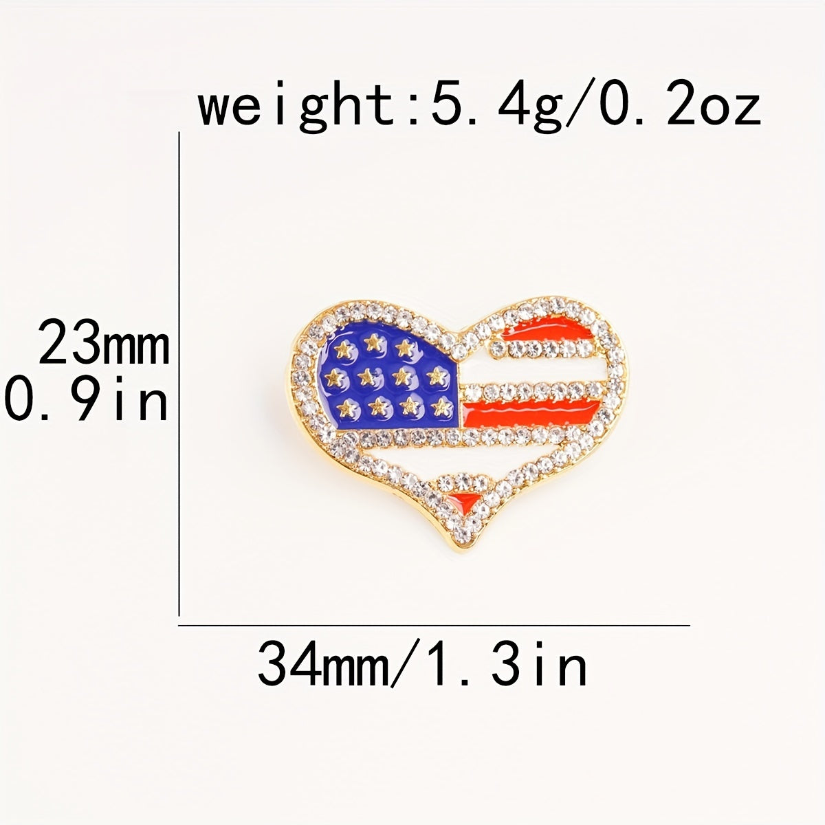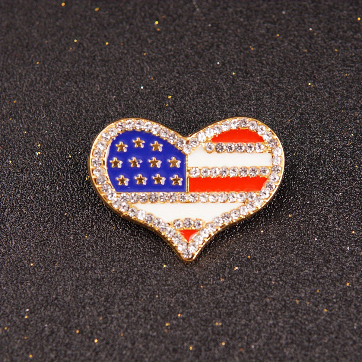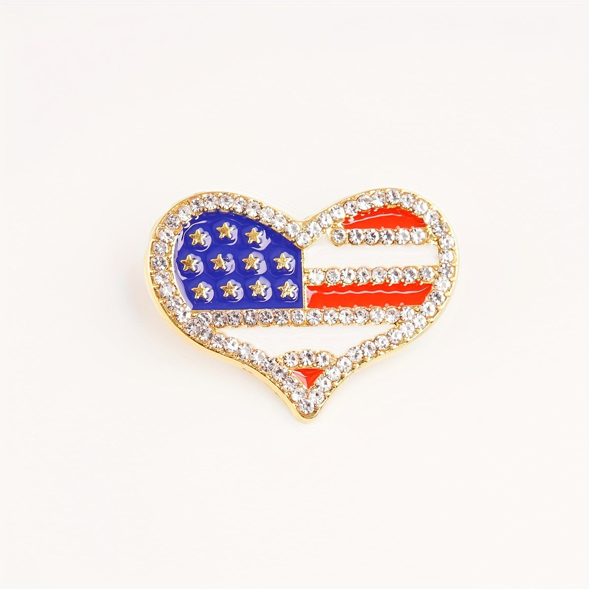 Add a touch of patriotism to your outfit with this heart-shaped zinc alloy brooch pin featuring an American flag pattern. Perfect for showing love for your country!