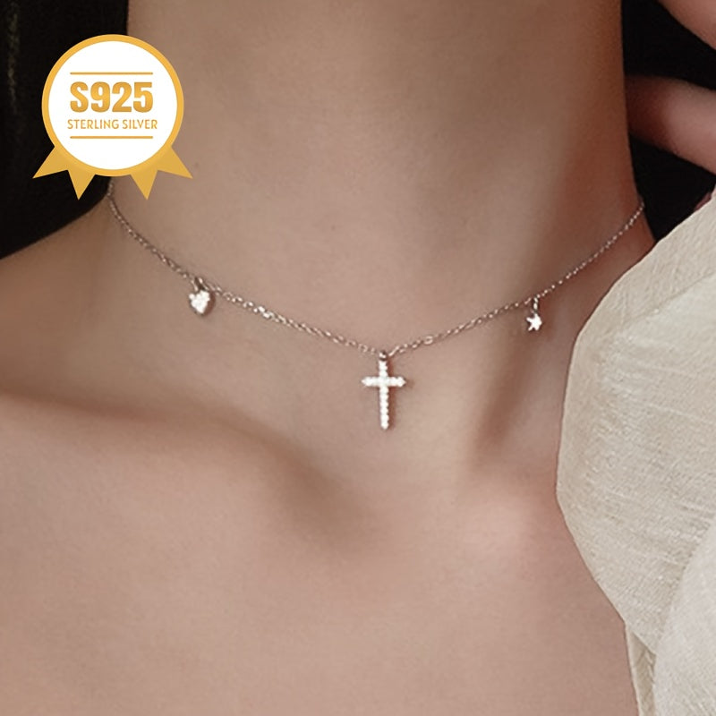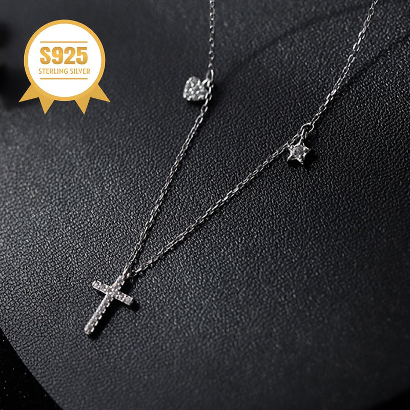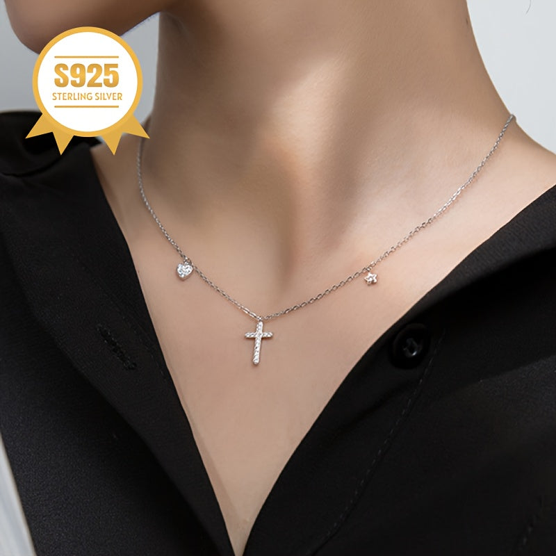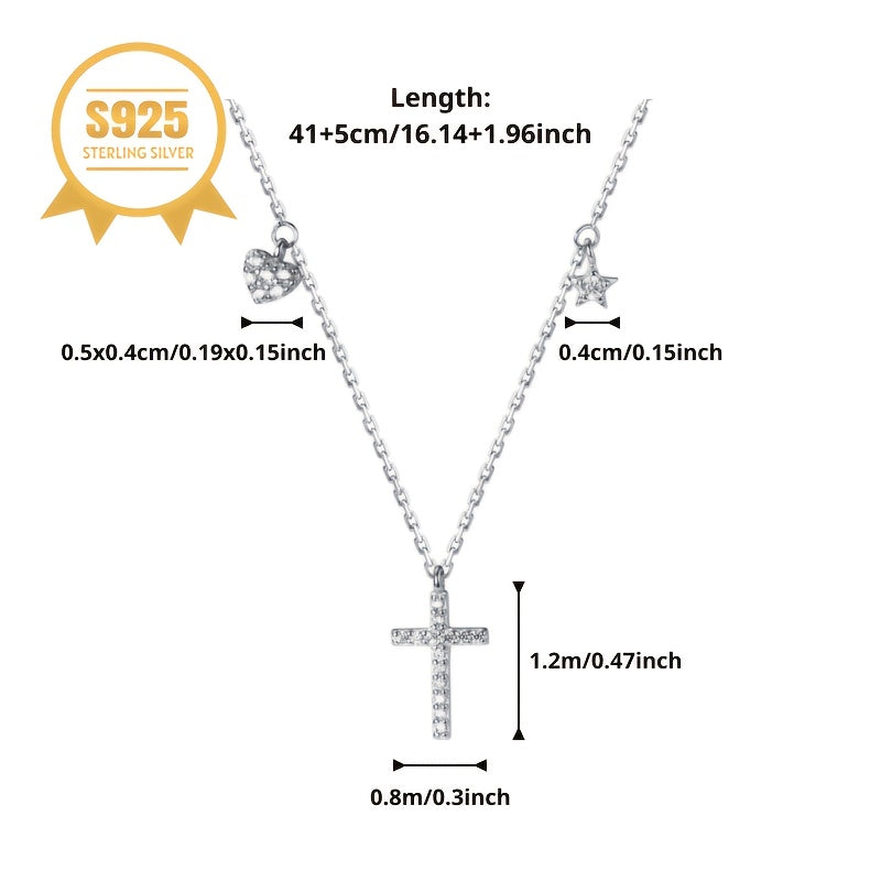 This delicate necklace is designed for those with sensitive skin, featuring a low allergy design. The light cross and love star pendant add a touch of elegance. It makes a perfect gift for mothers.
