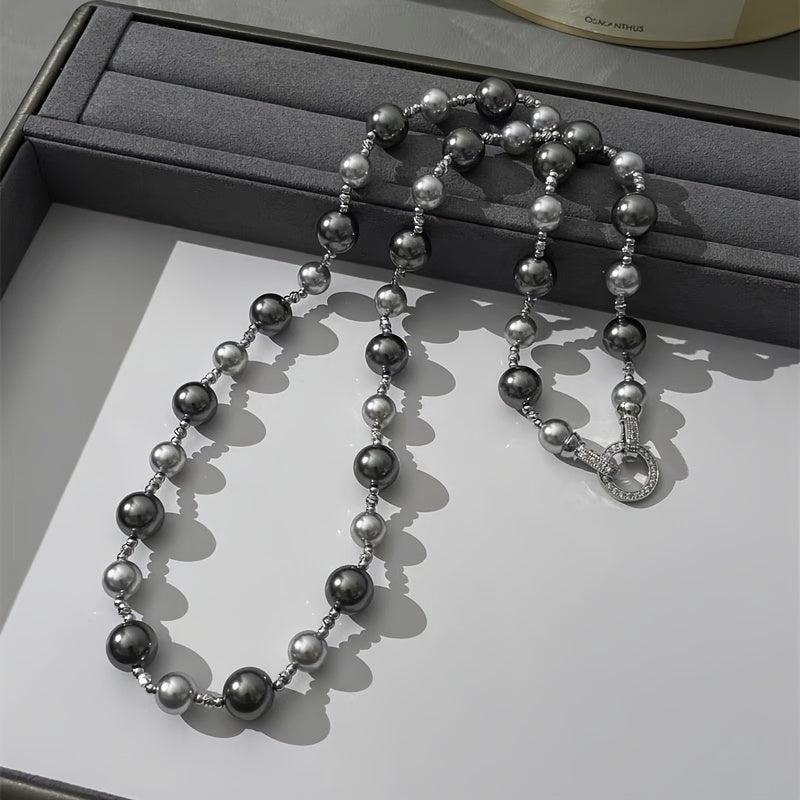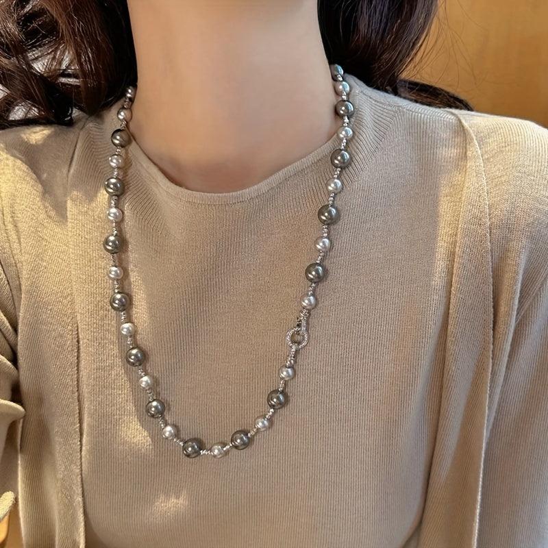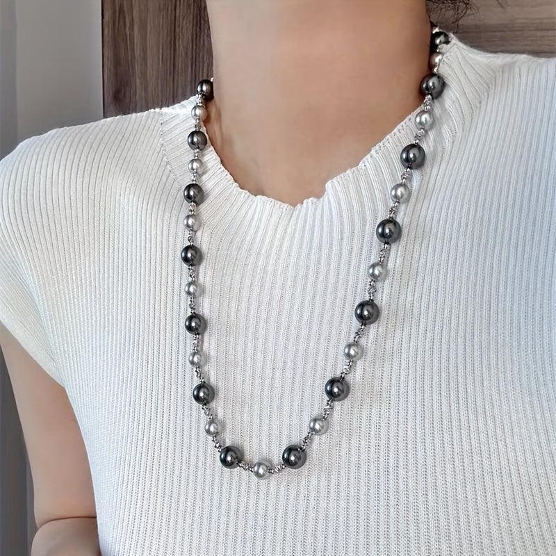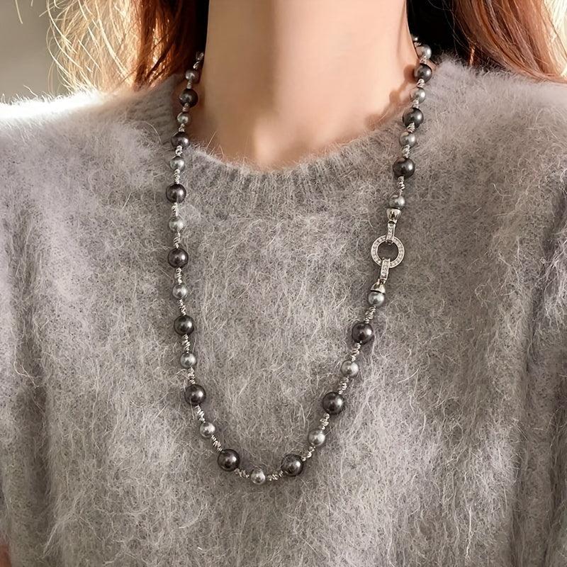 Stylish mixed mysterious and bead pearl necklace designed for women to match casual autumn and winter outfits.