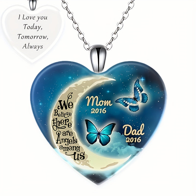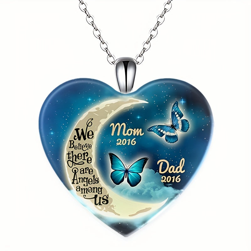 This beautiful necklace features a moon and butterfly pattern with a heart-shaped crystal pendant, making it a perfect gift for women, girls, or family members.