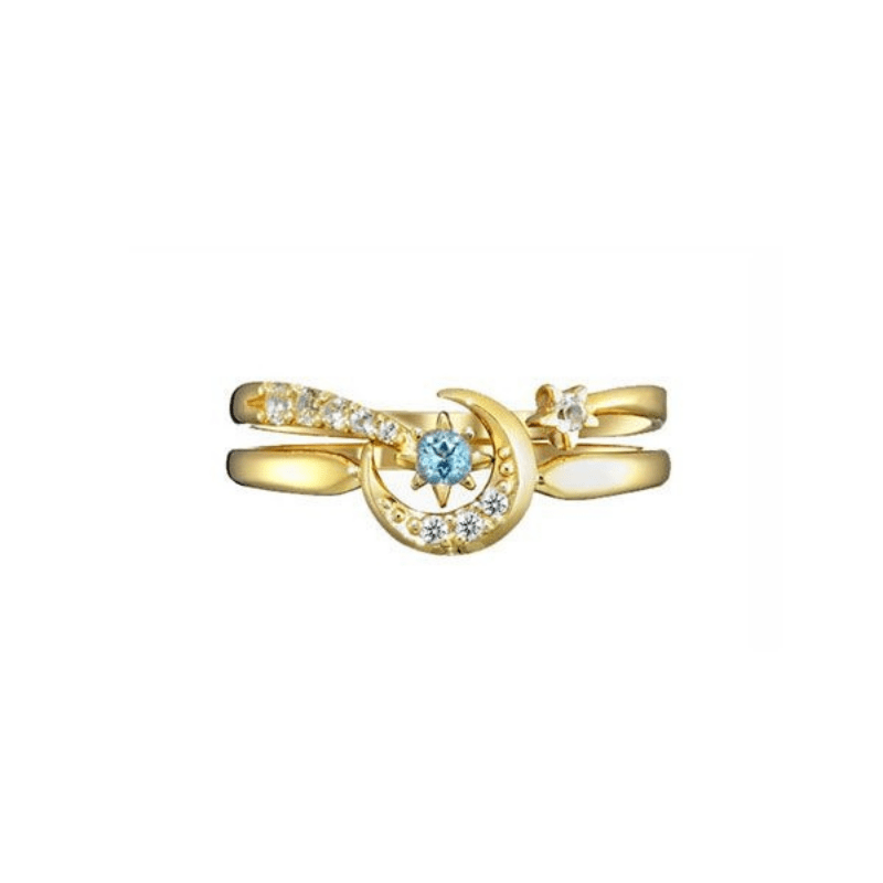 Moon & Sun Ring 14k Plated Zircon Double Layer Dainty Accessory