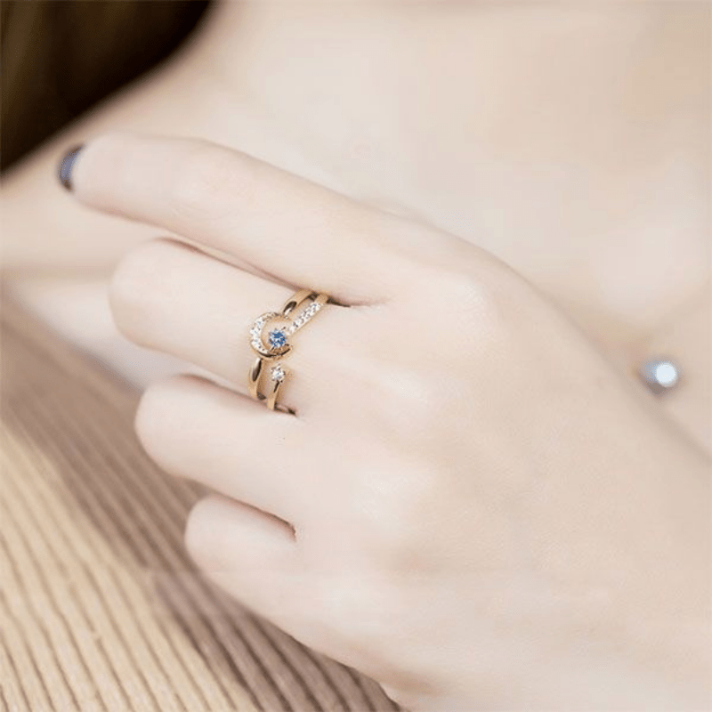 Add a touch of celestial charm to your daily outfits with this stunning ring. The double layer design features inlaid zircon for added sparkle, making it a perfect accessory for both casual and party looks.